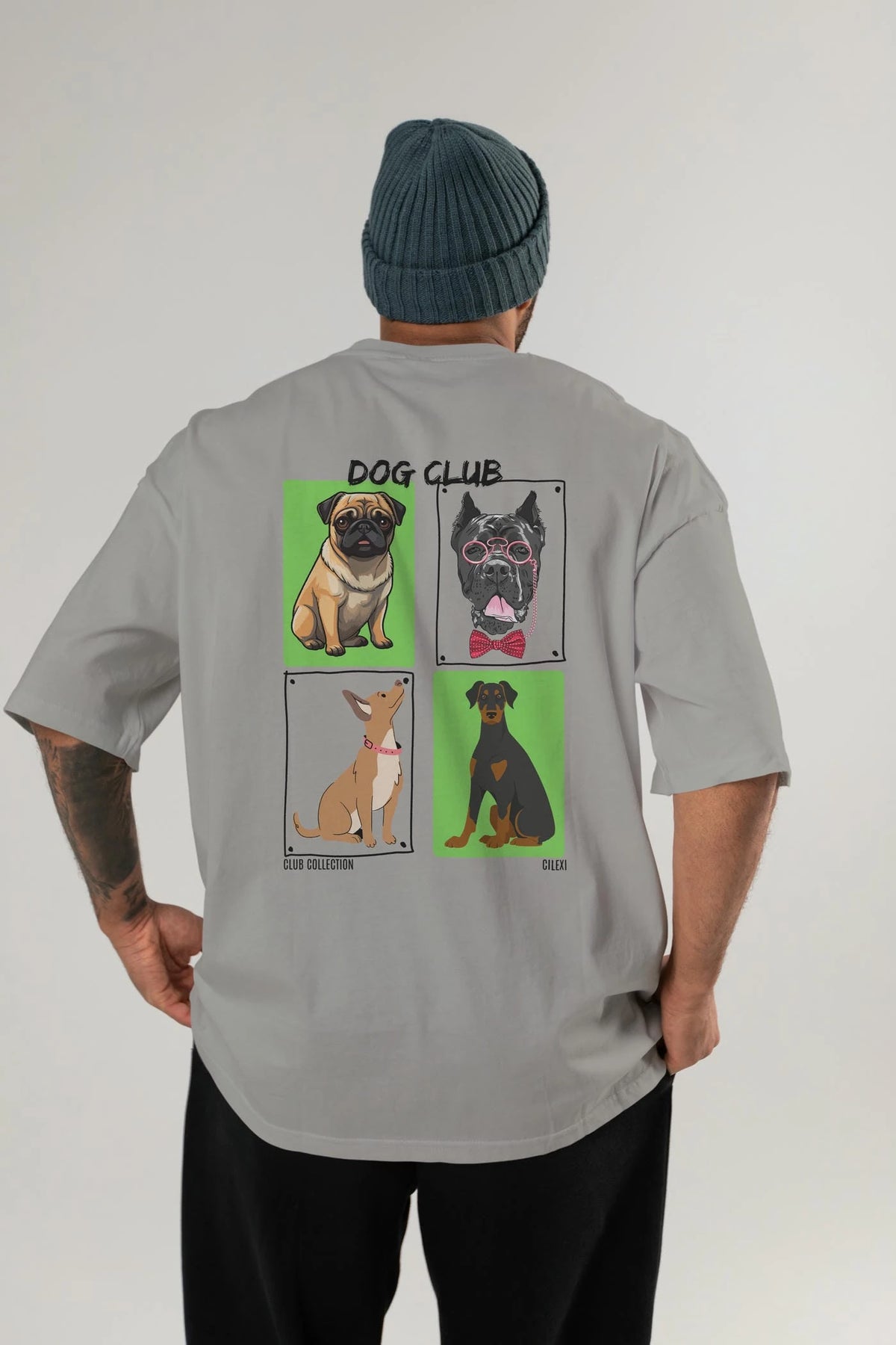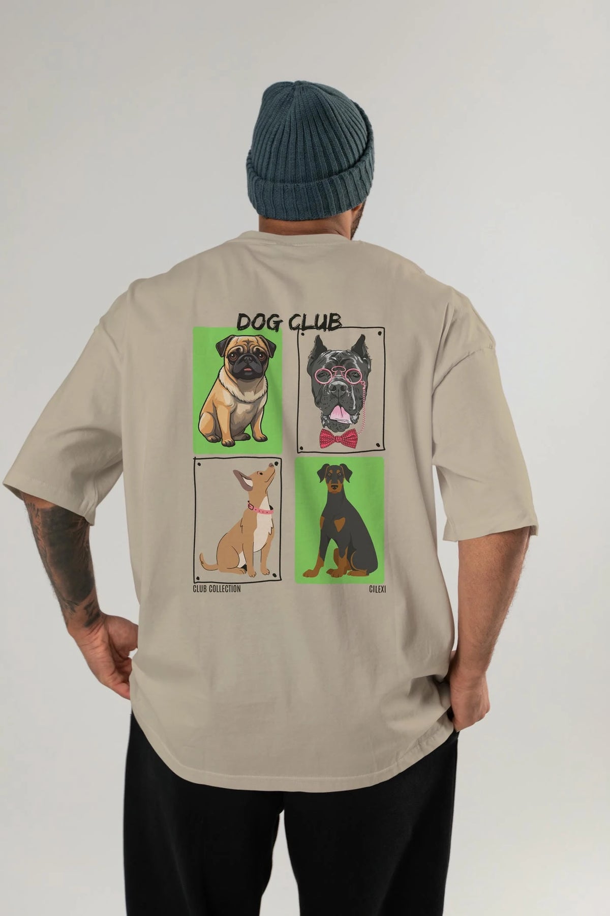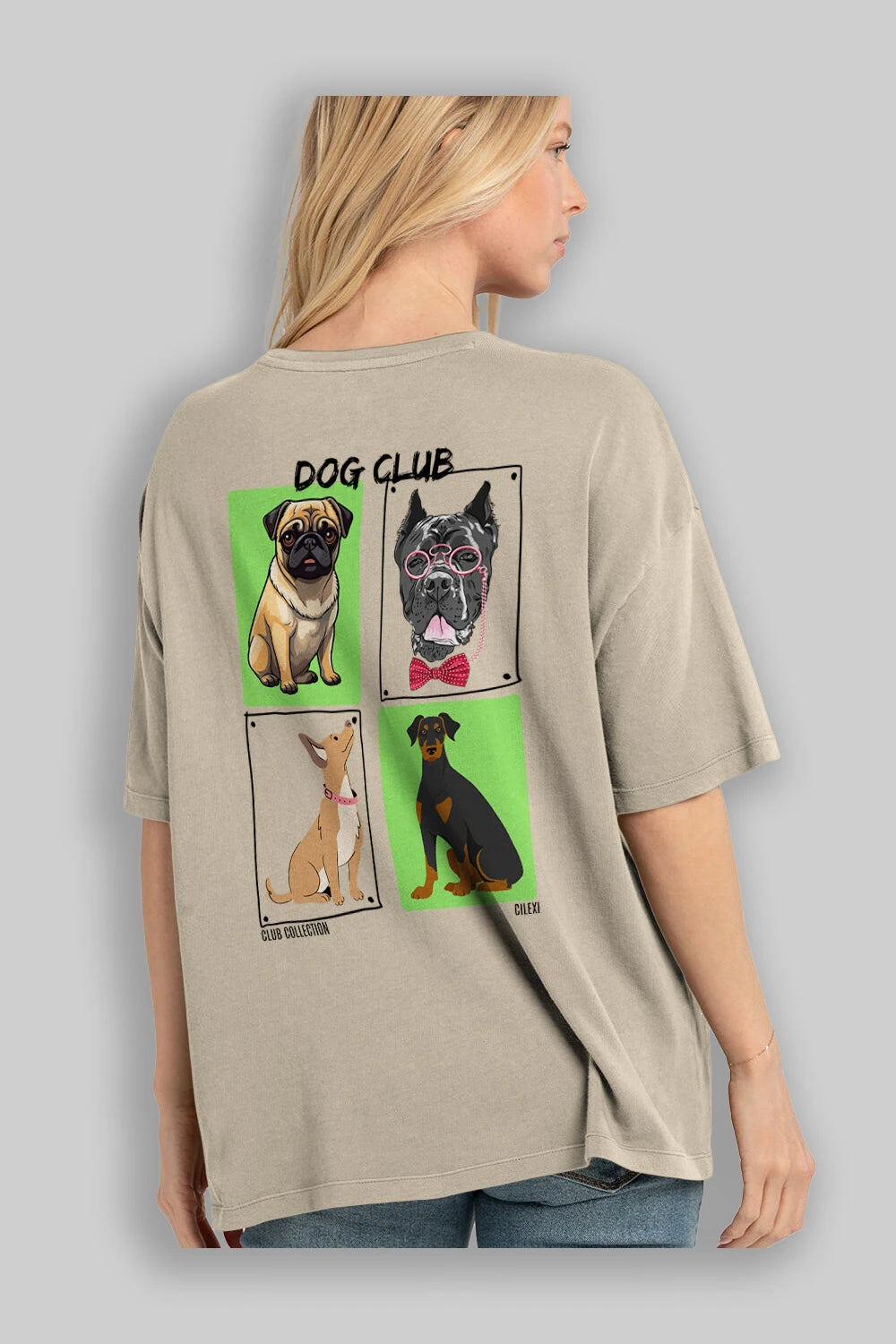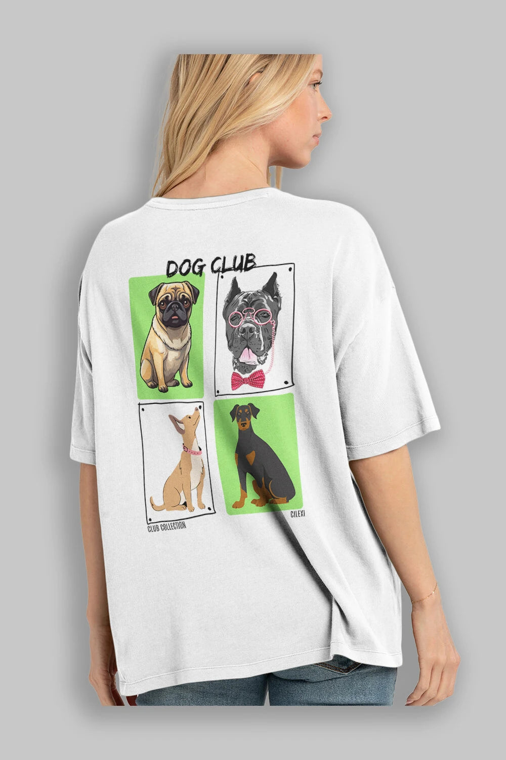 Dog Club Arka Baskılı Oversize t-shirt Erkek Kadın %100 Pamuk Bisiklet Yaka tişort