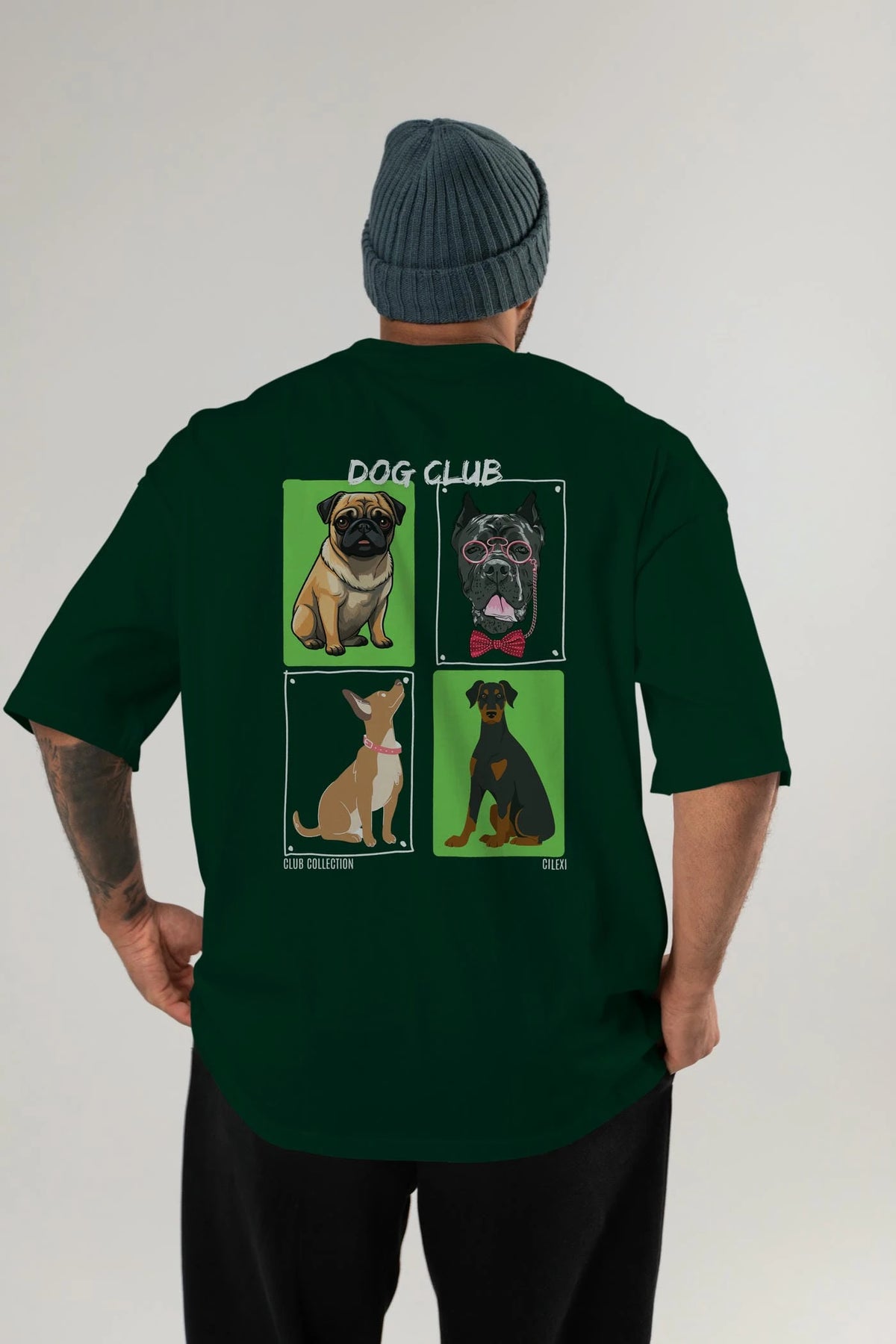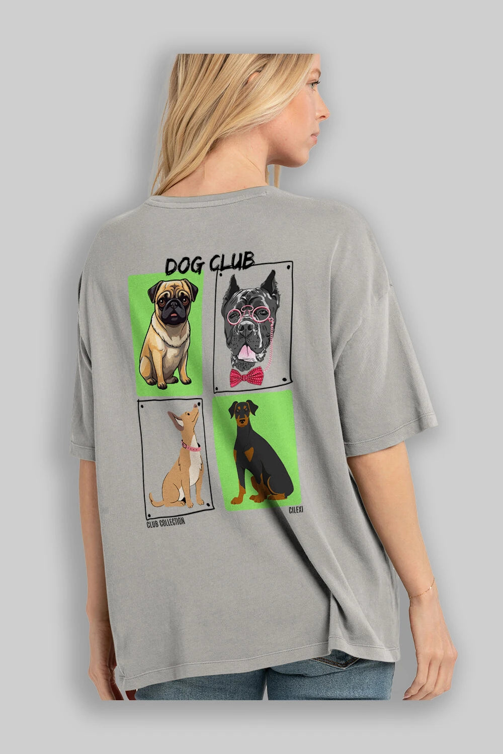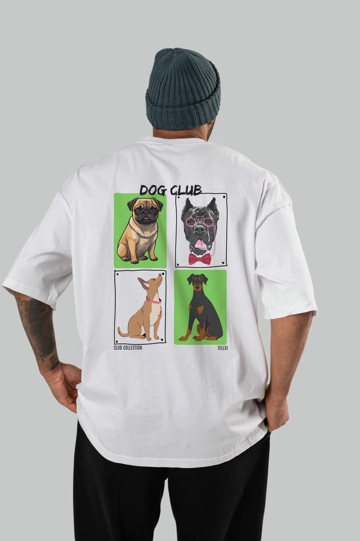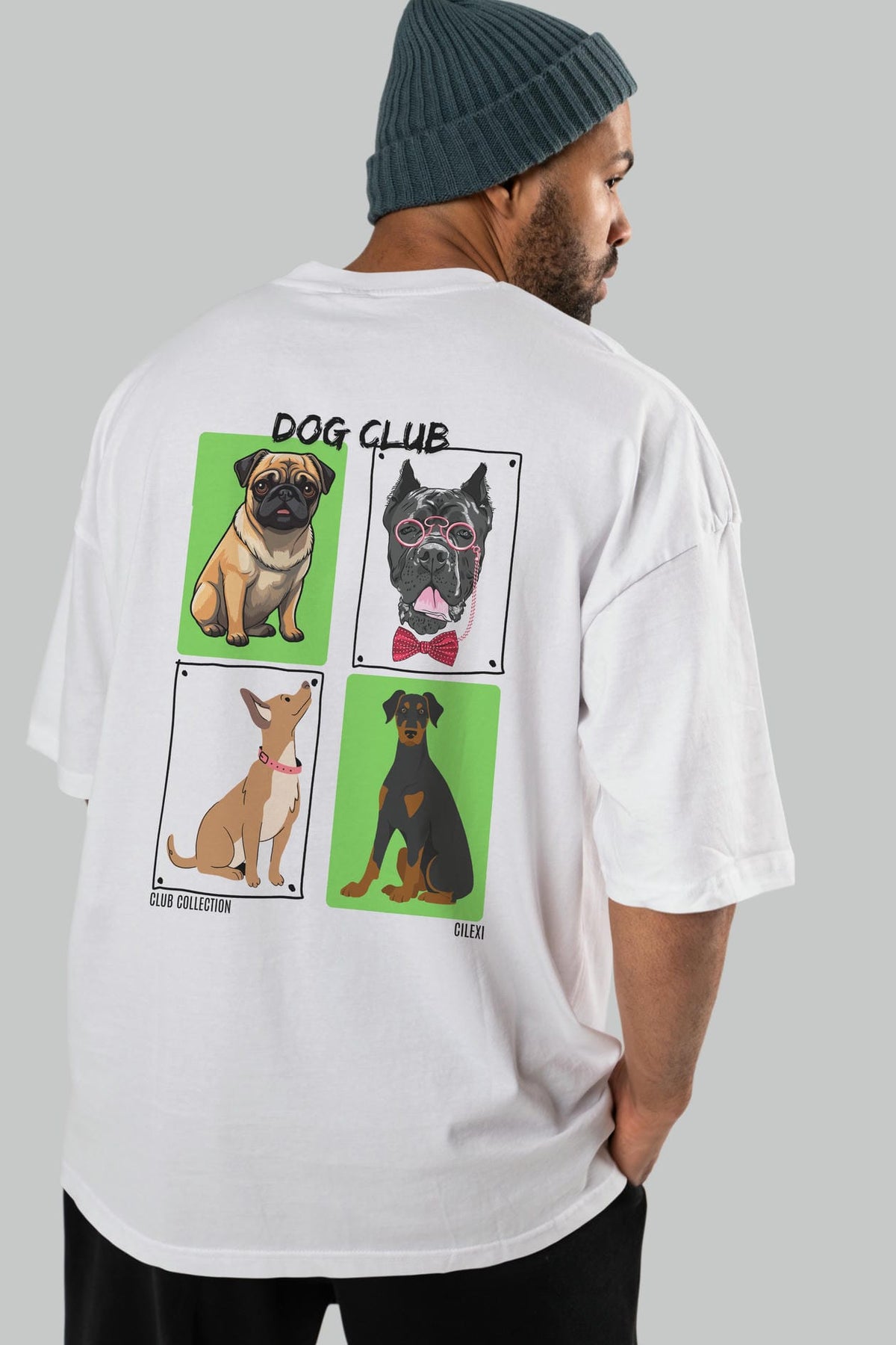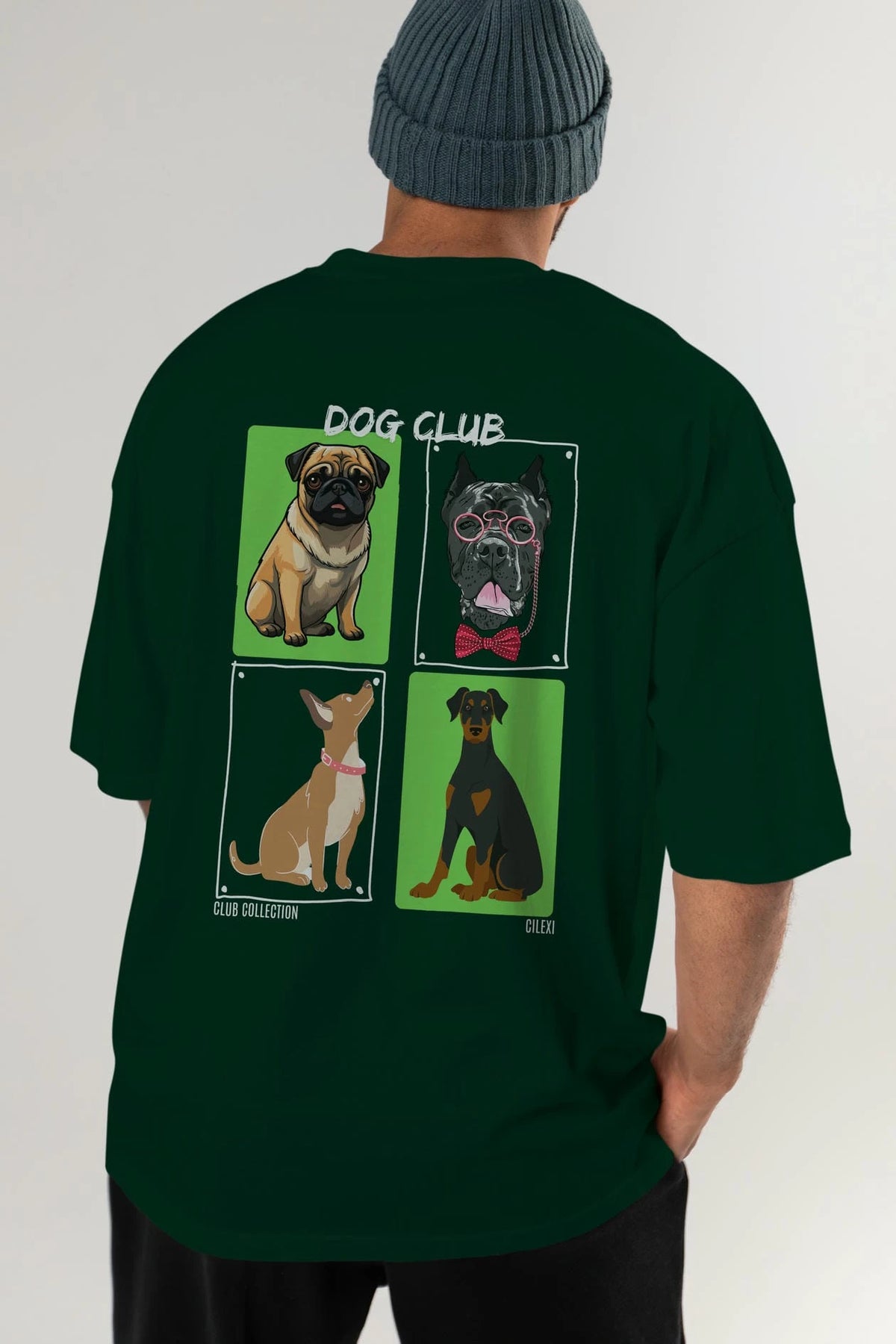 Dog Club Arka Baskılı Oversize t-shirt Erkek Kadın %100 Pamuk Bisiklet Yaka tişort