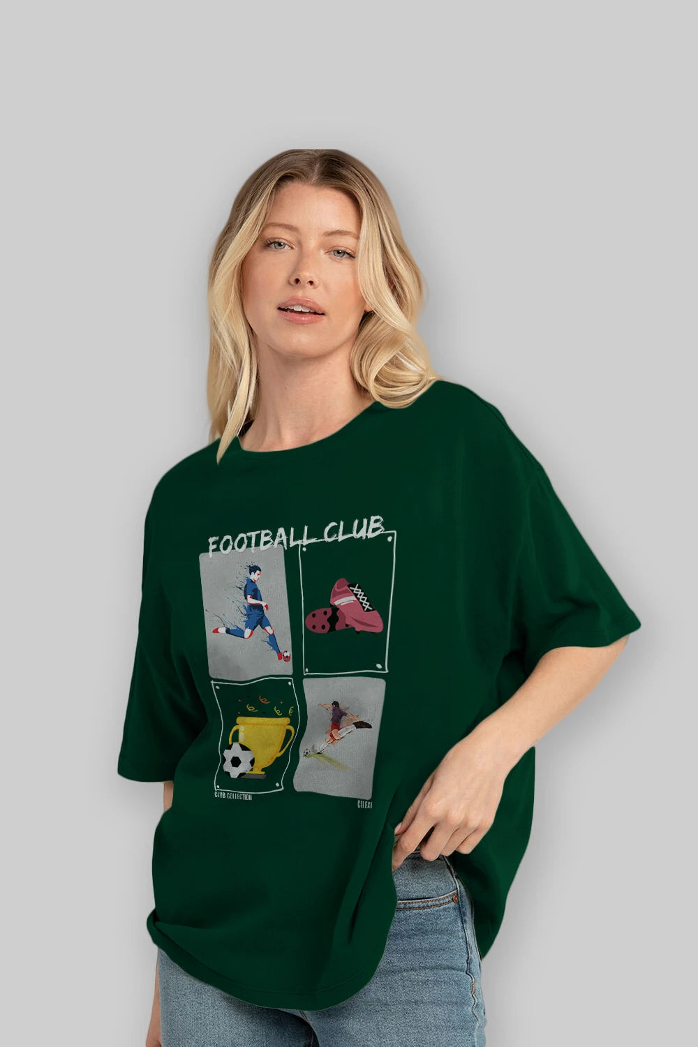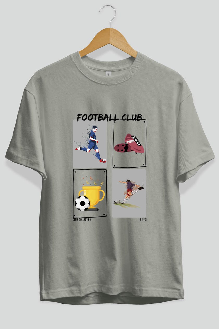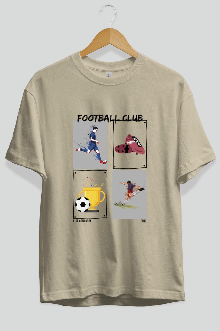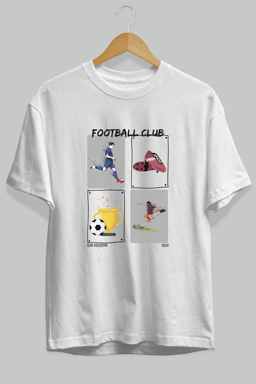 Football Club ön Baskılı Oversize t-shirt Erkek Kadın %100 Pamuk Bisiklet Yaka tişort