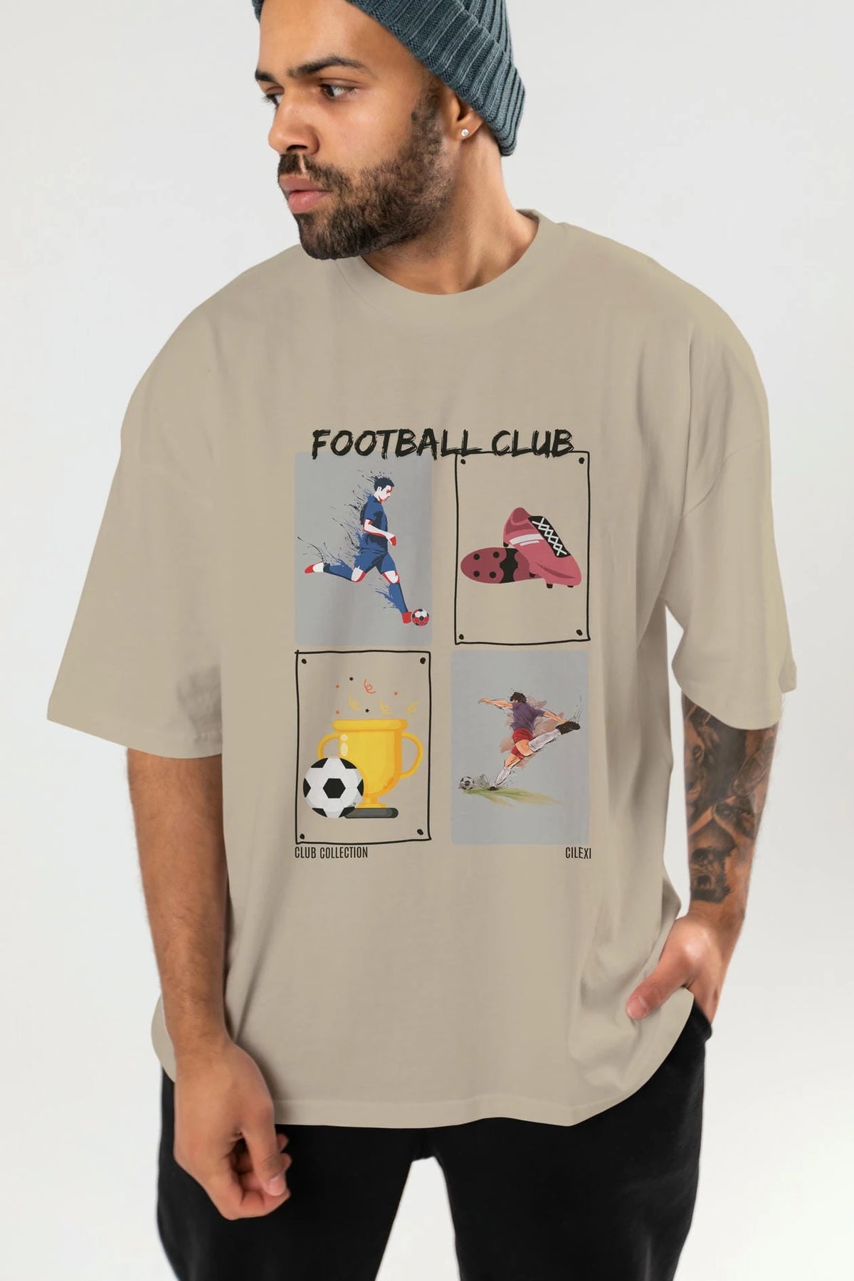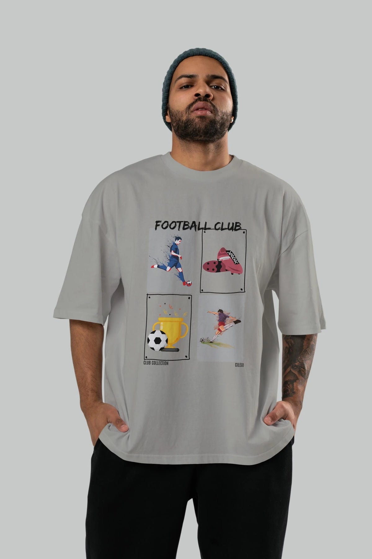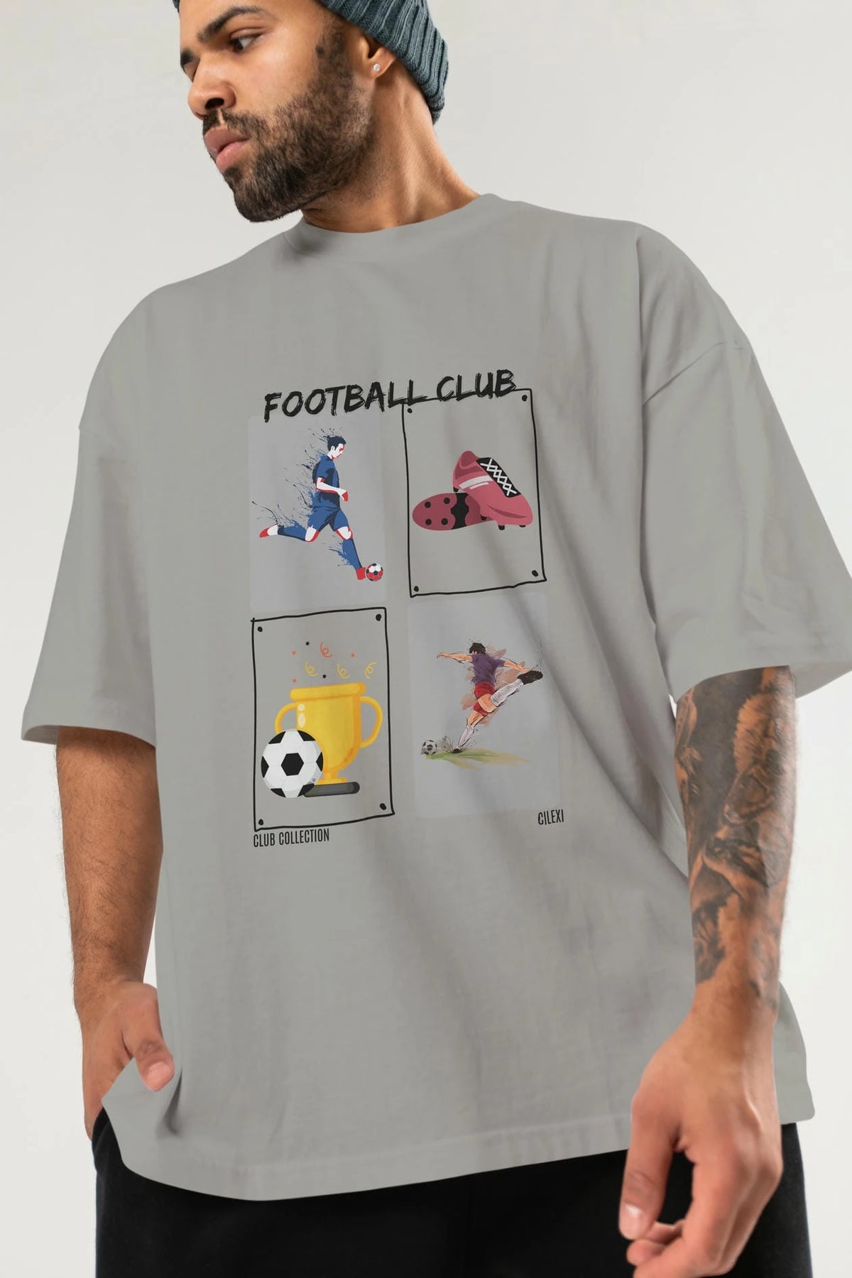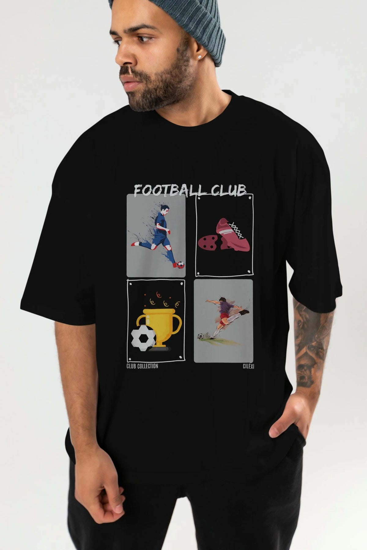 Football Club ön Baskılı Oversize t-shirt Erkek Kadın %100 Pamuk Bisiklet Yaka tişort