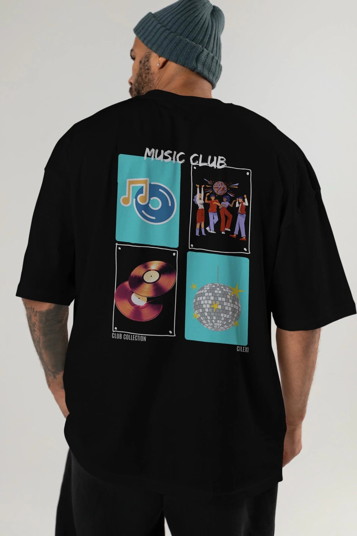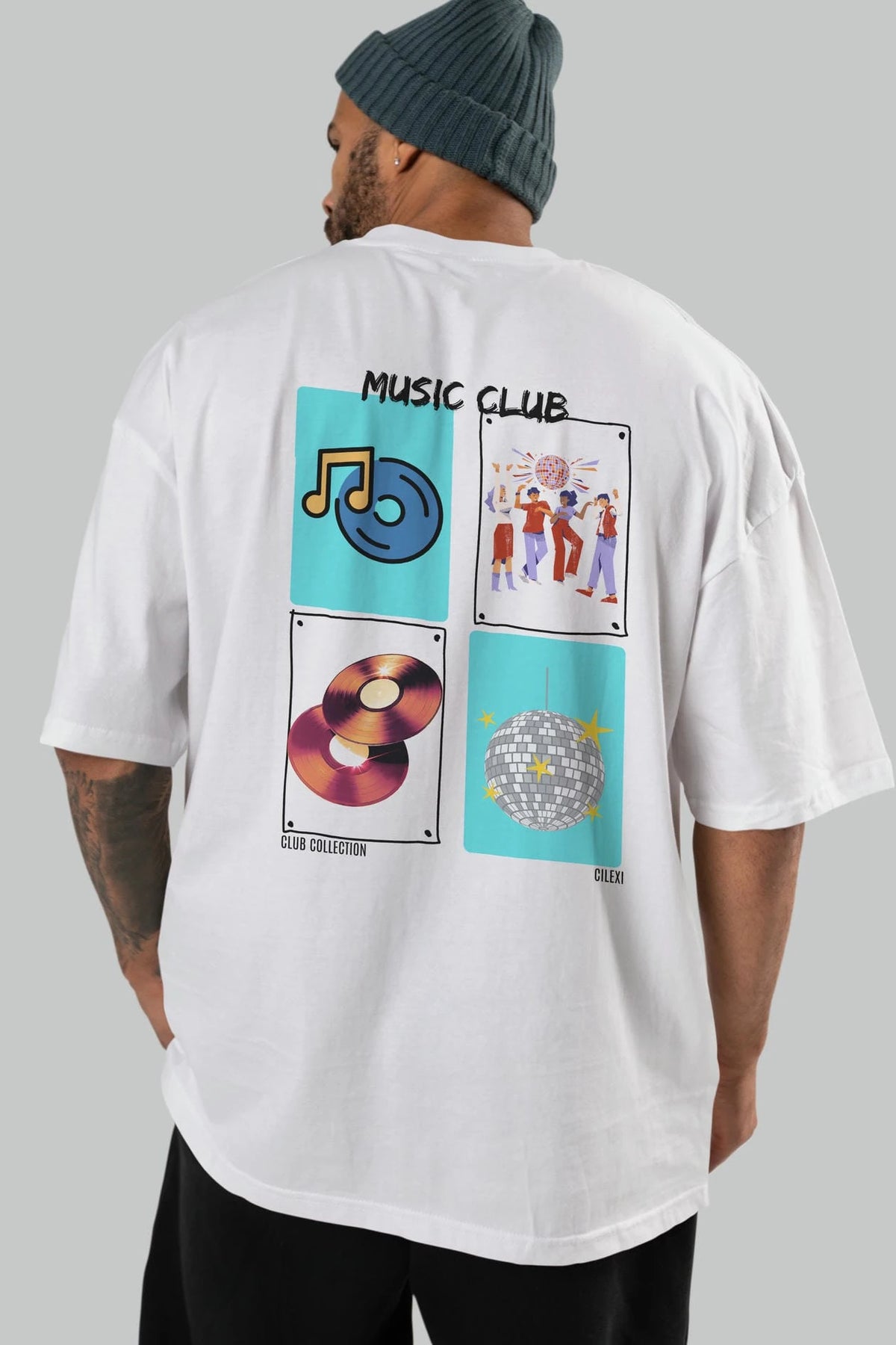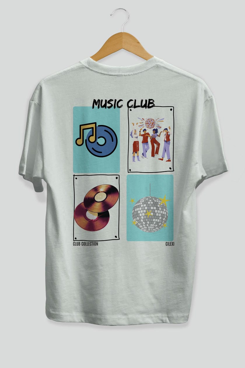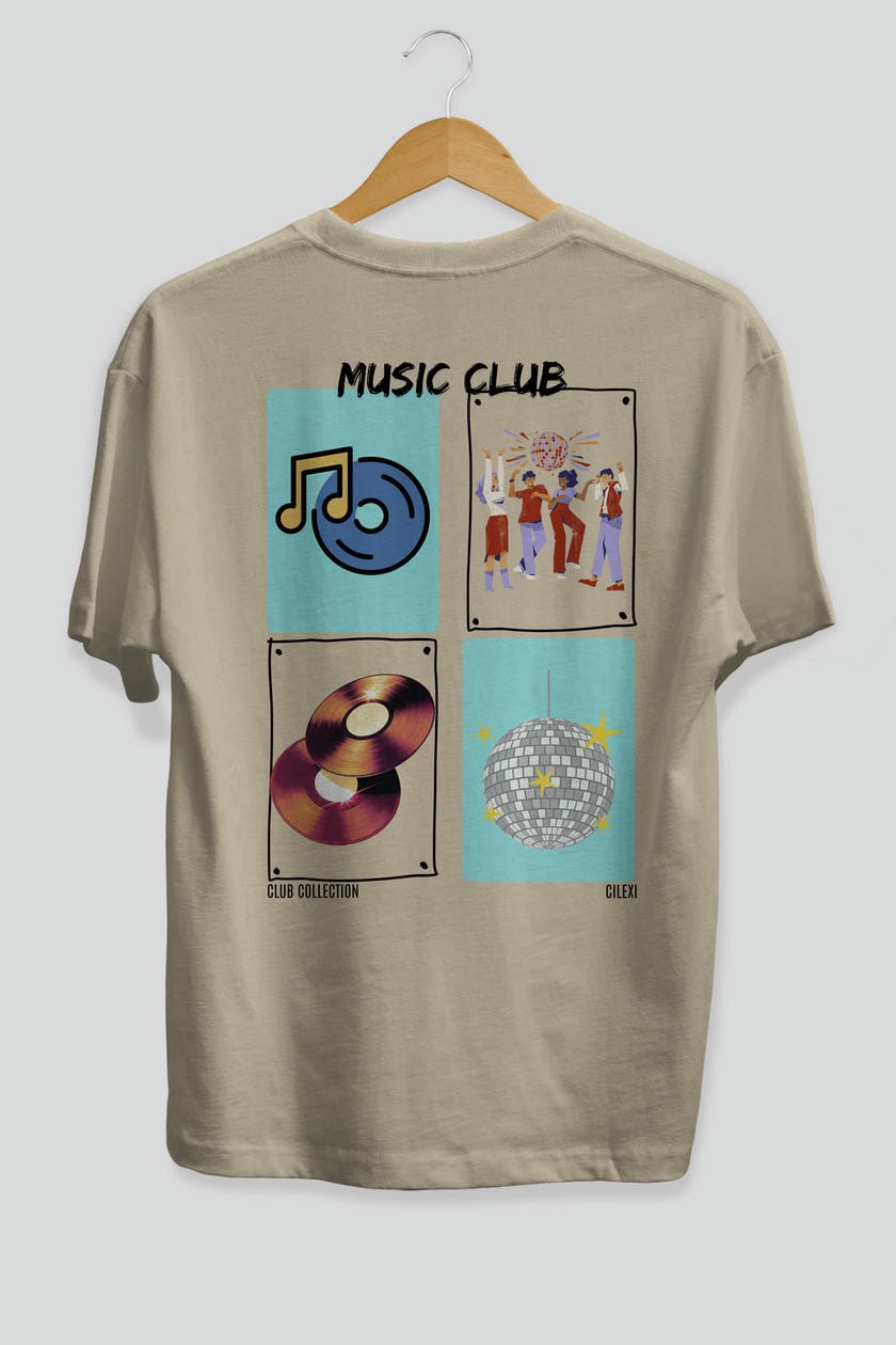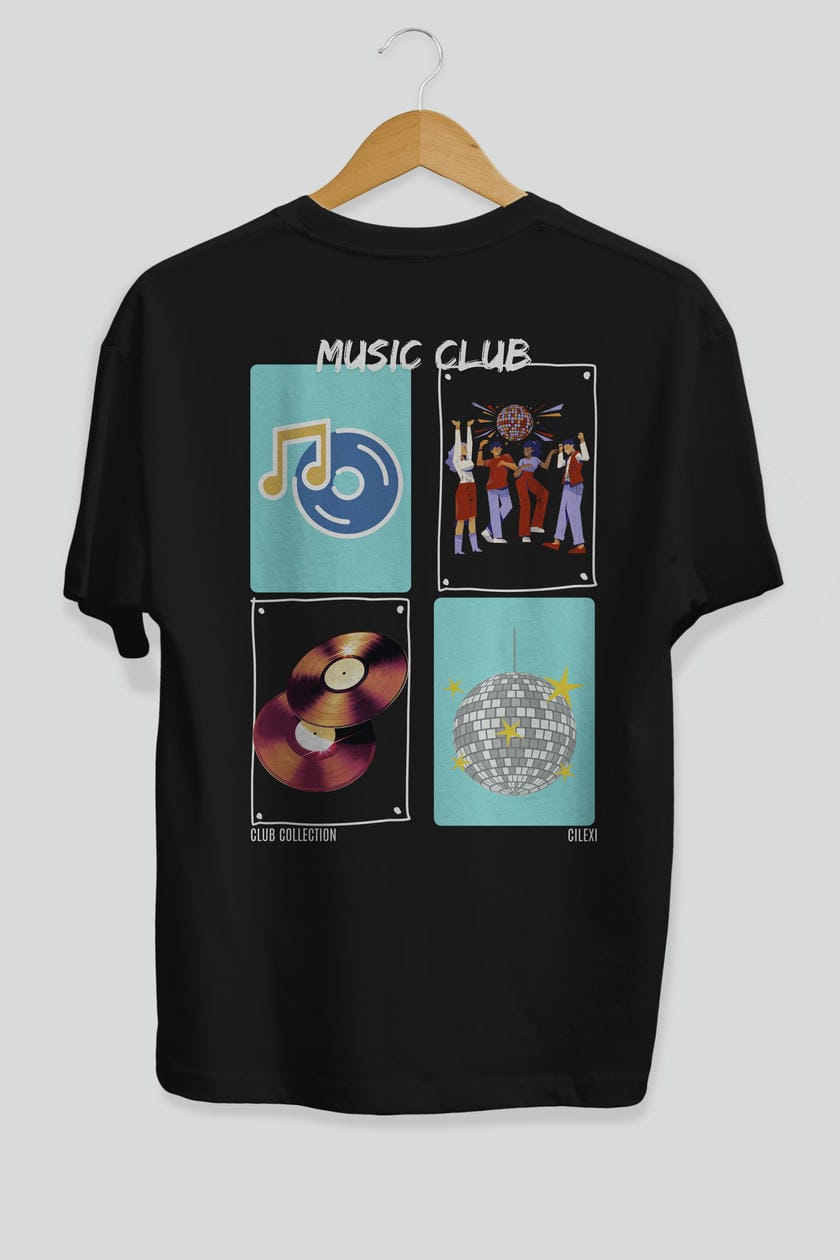 Music Club Arka Baskılı Oversize t-shirt Erkek Kadın %100 Pamuk Bisiklet Yaka tişort