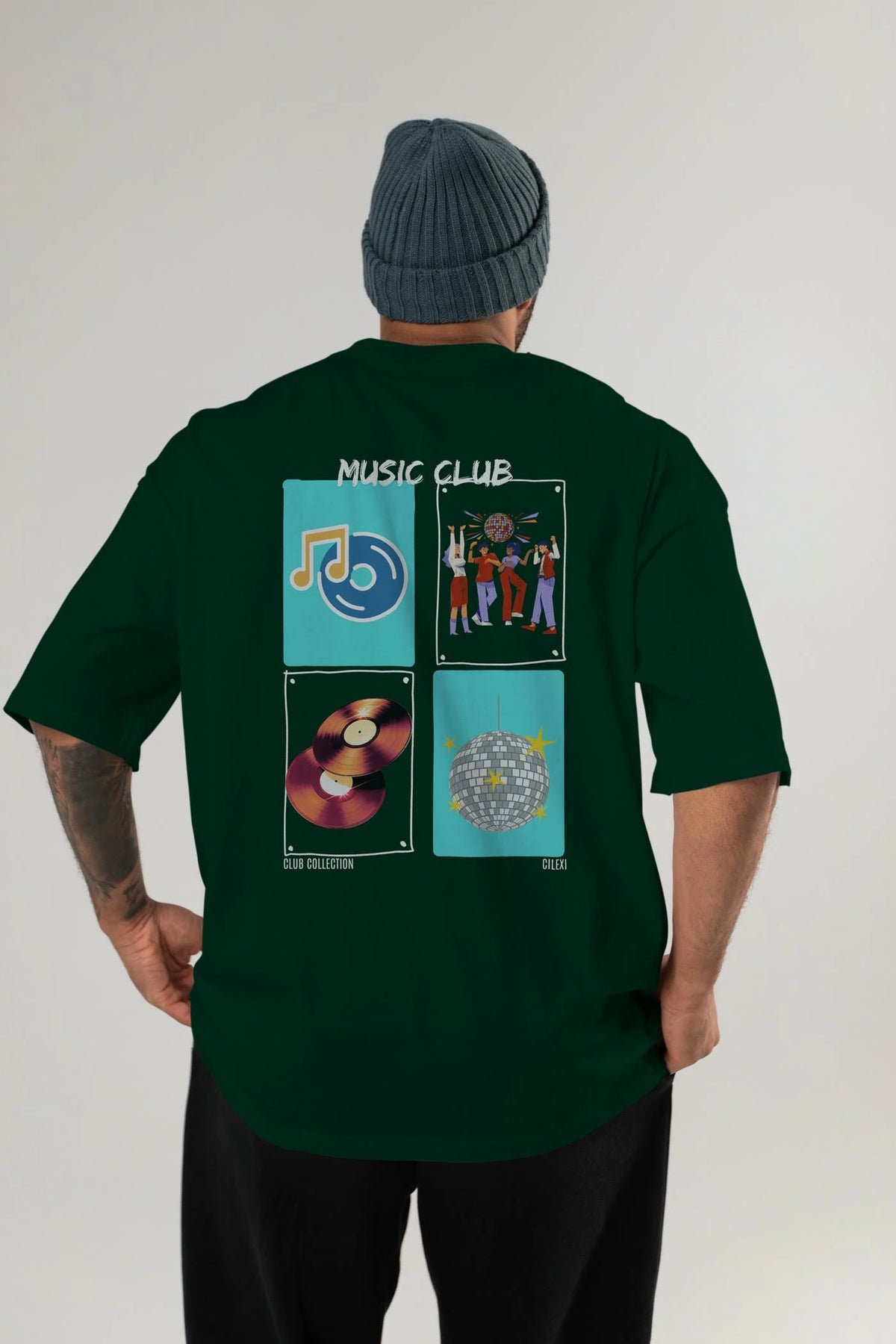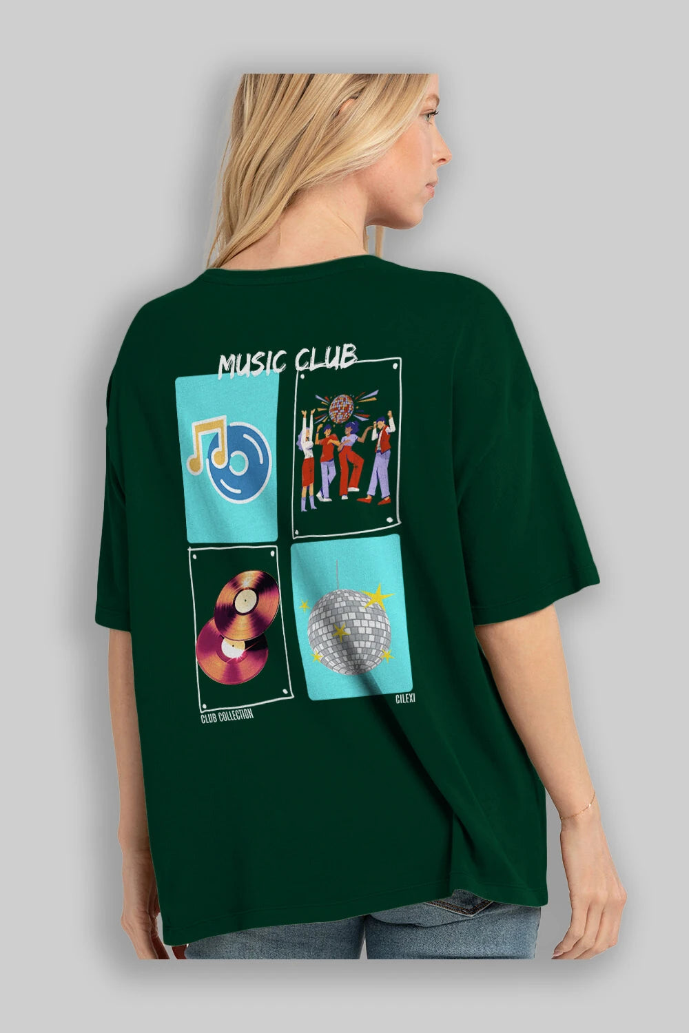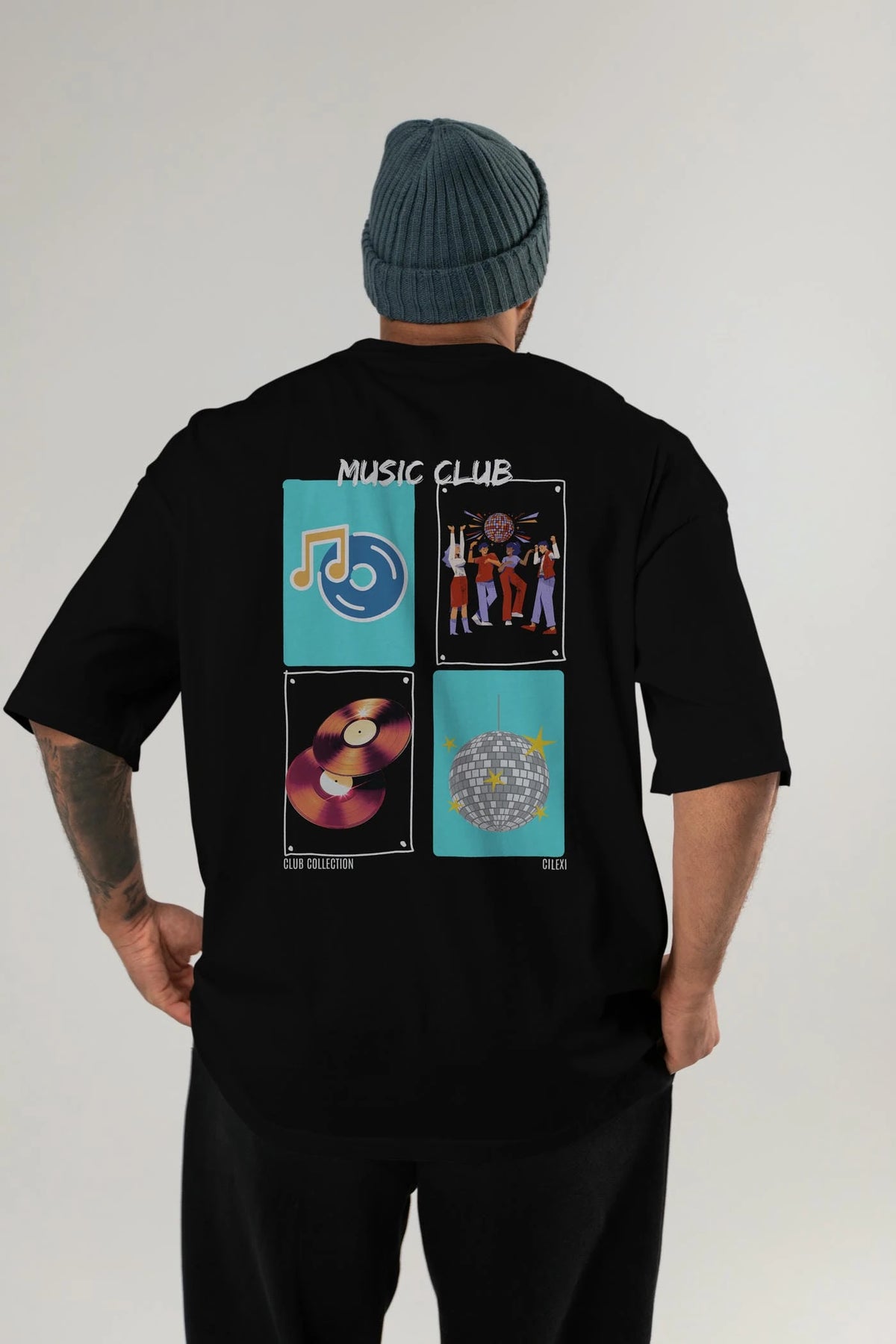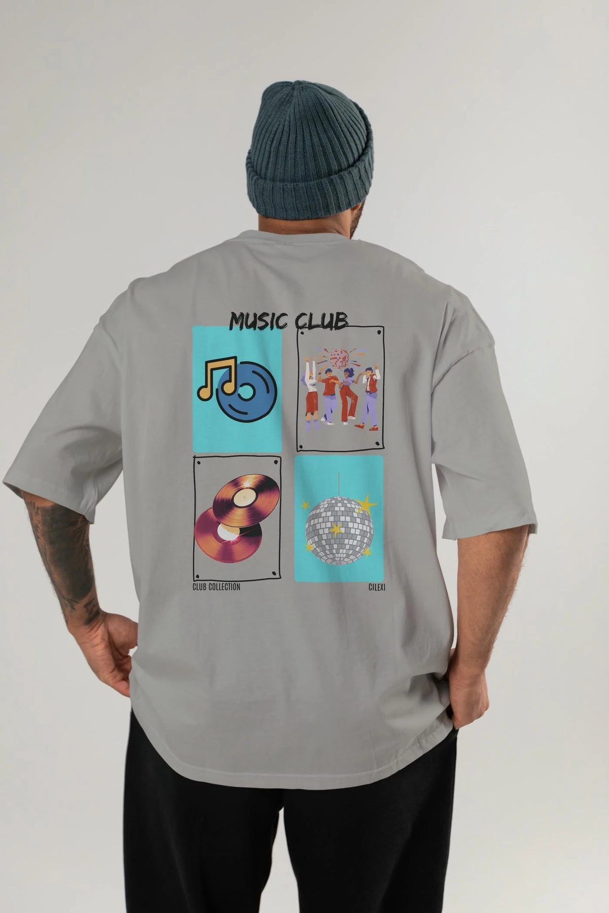 Music Club Arka Baskılı Oversize t-shirt Erkek Kadın %100 Pamuk Bisiklet Yaka tişort
