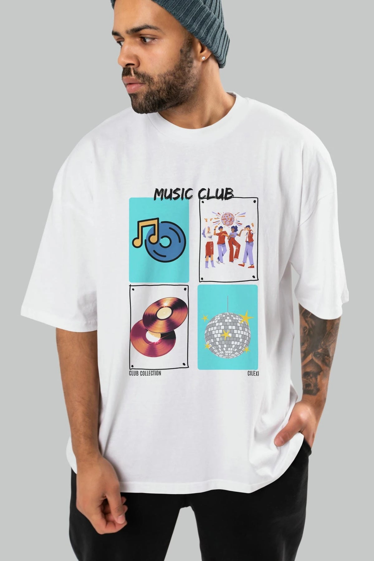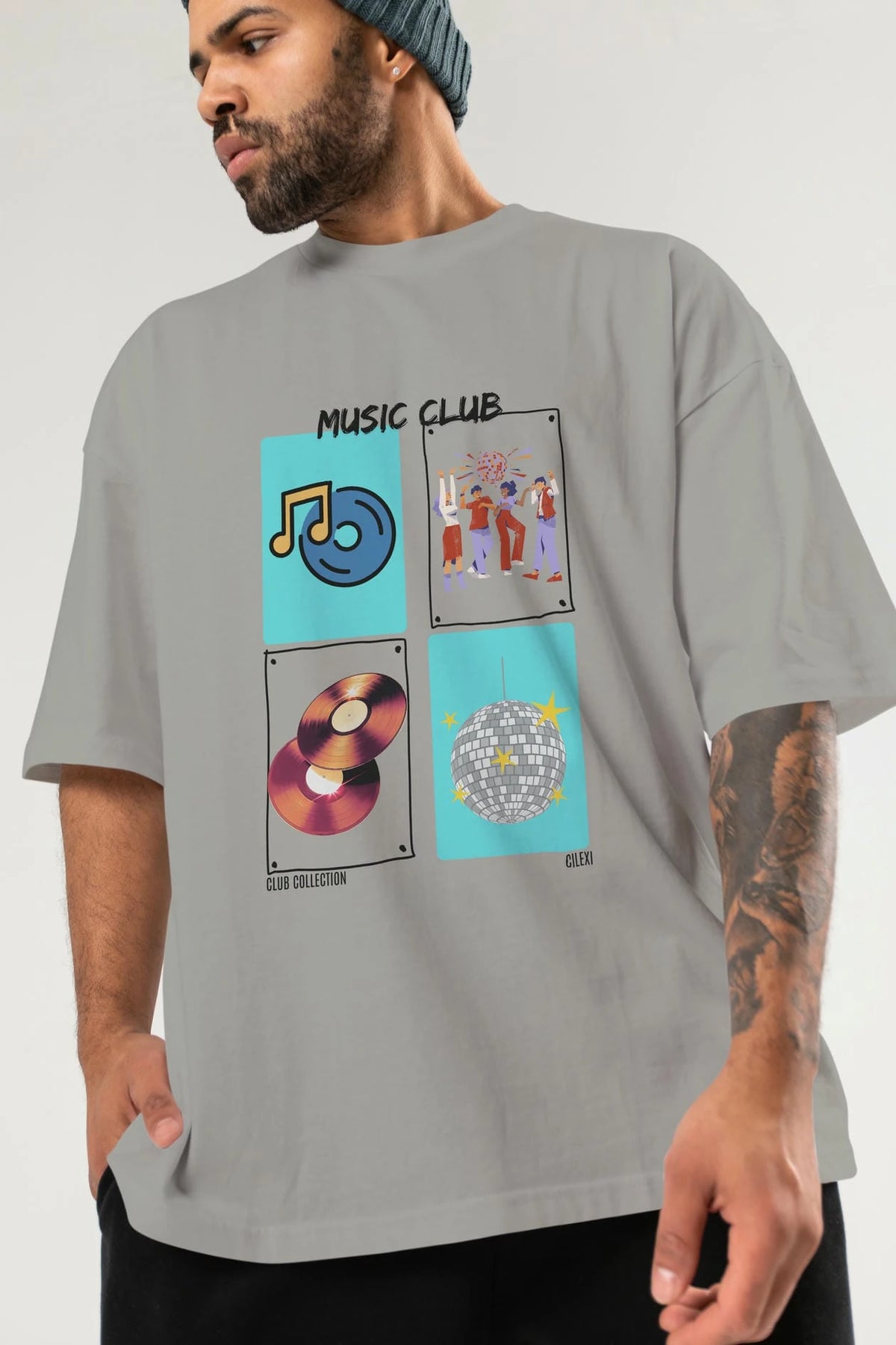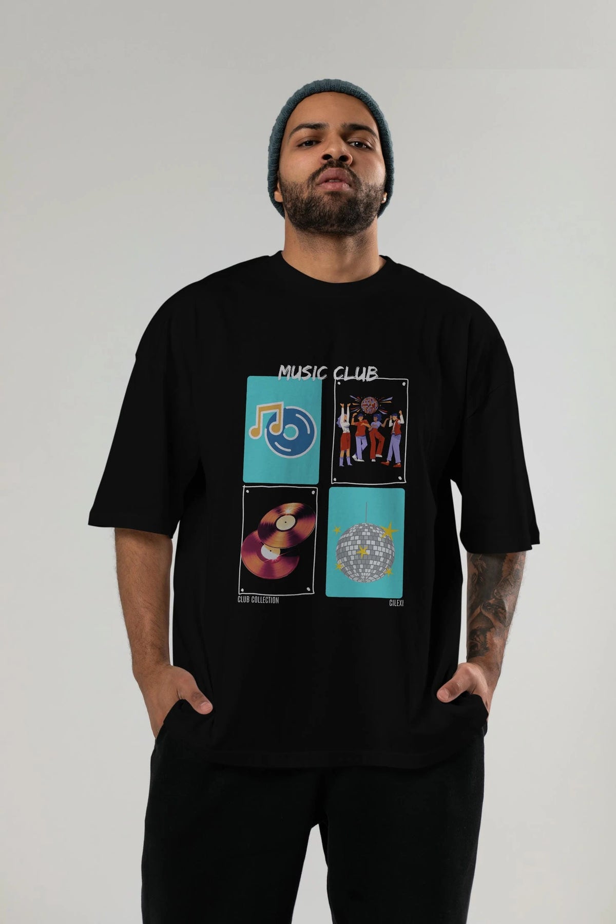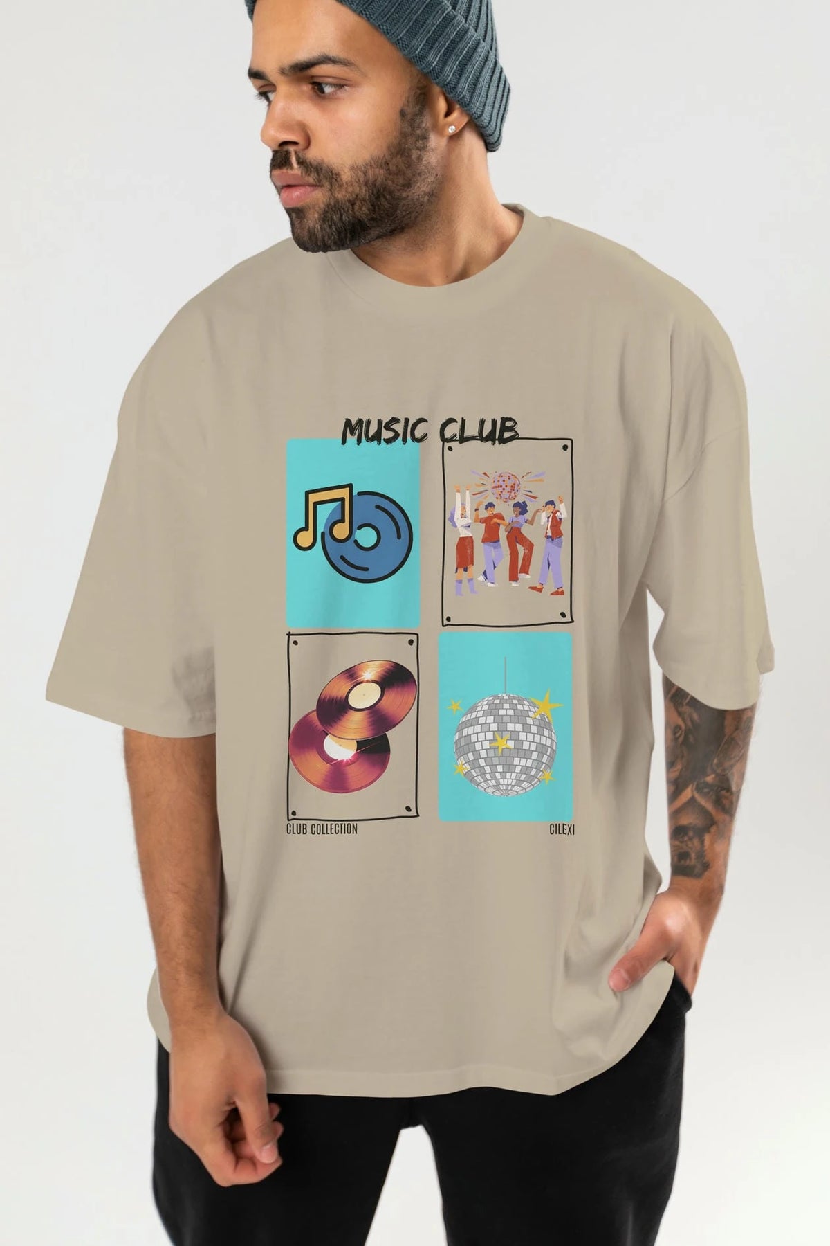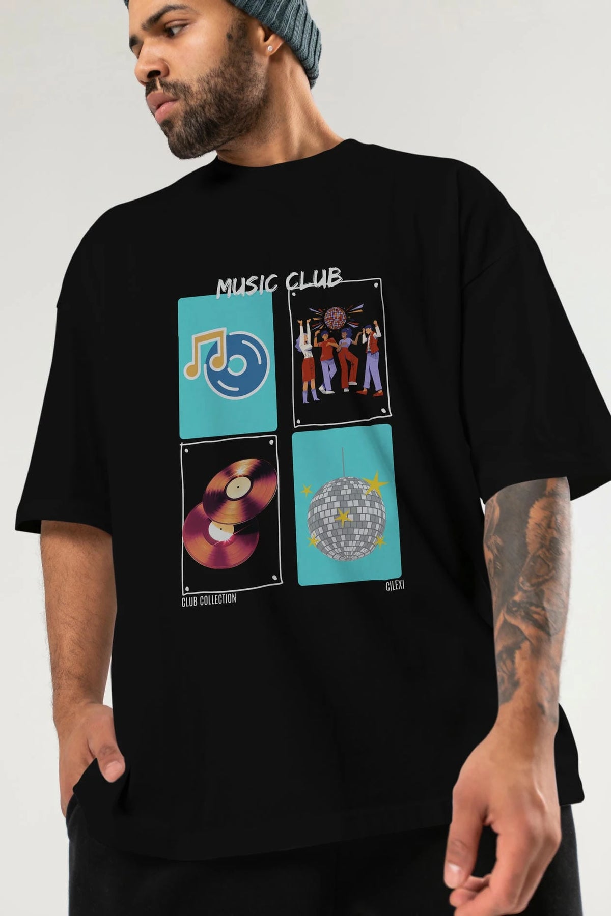 Music Club ön Baskılı Oversize t-shirt Erkek Kadın %100 Pamuk Bisiklet Yaka tişort