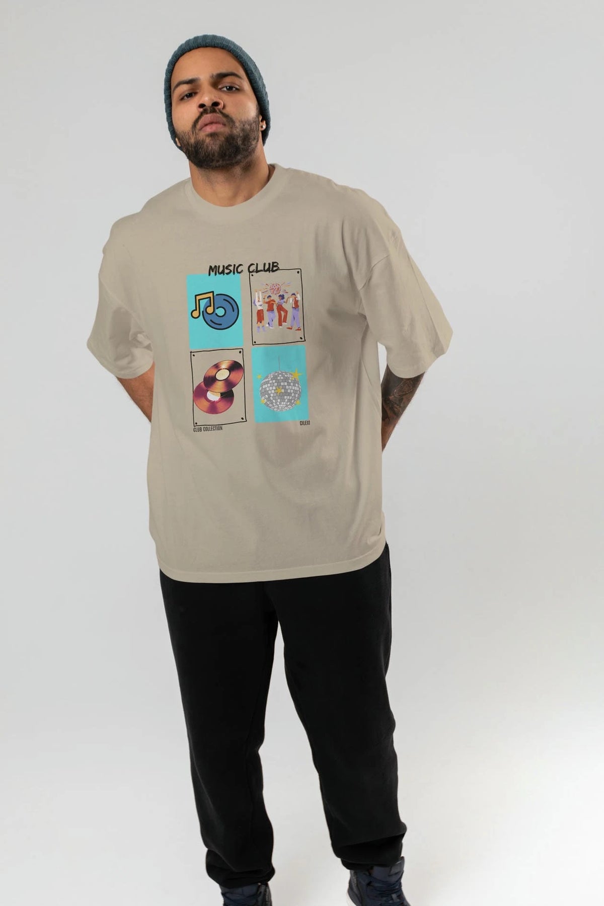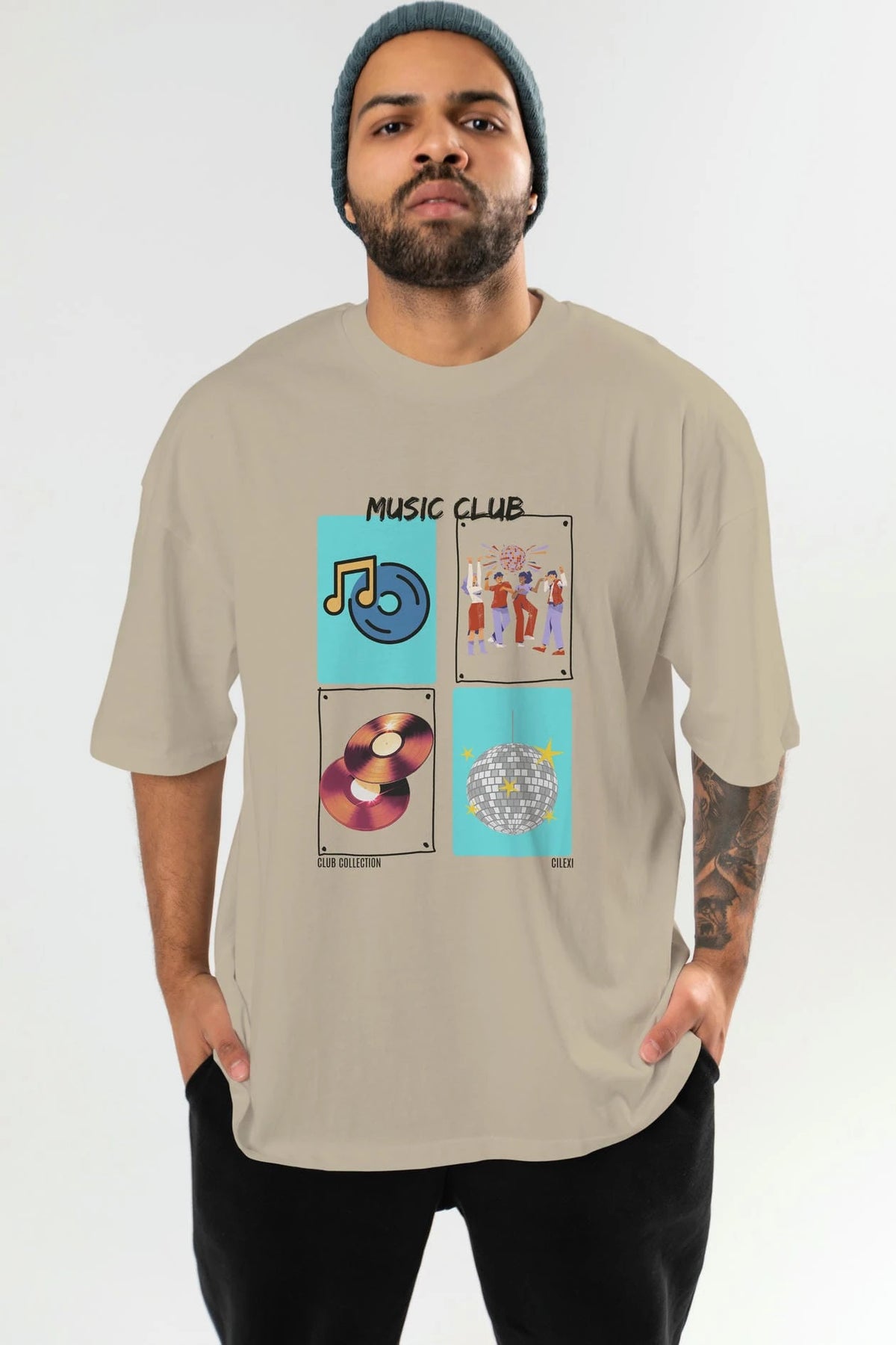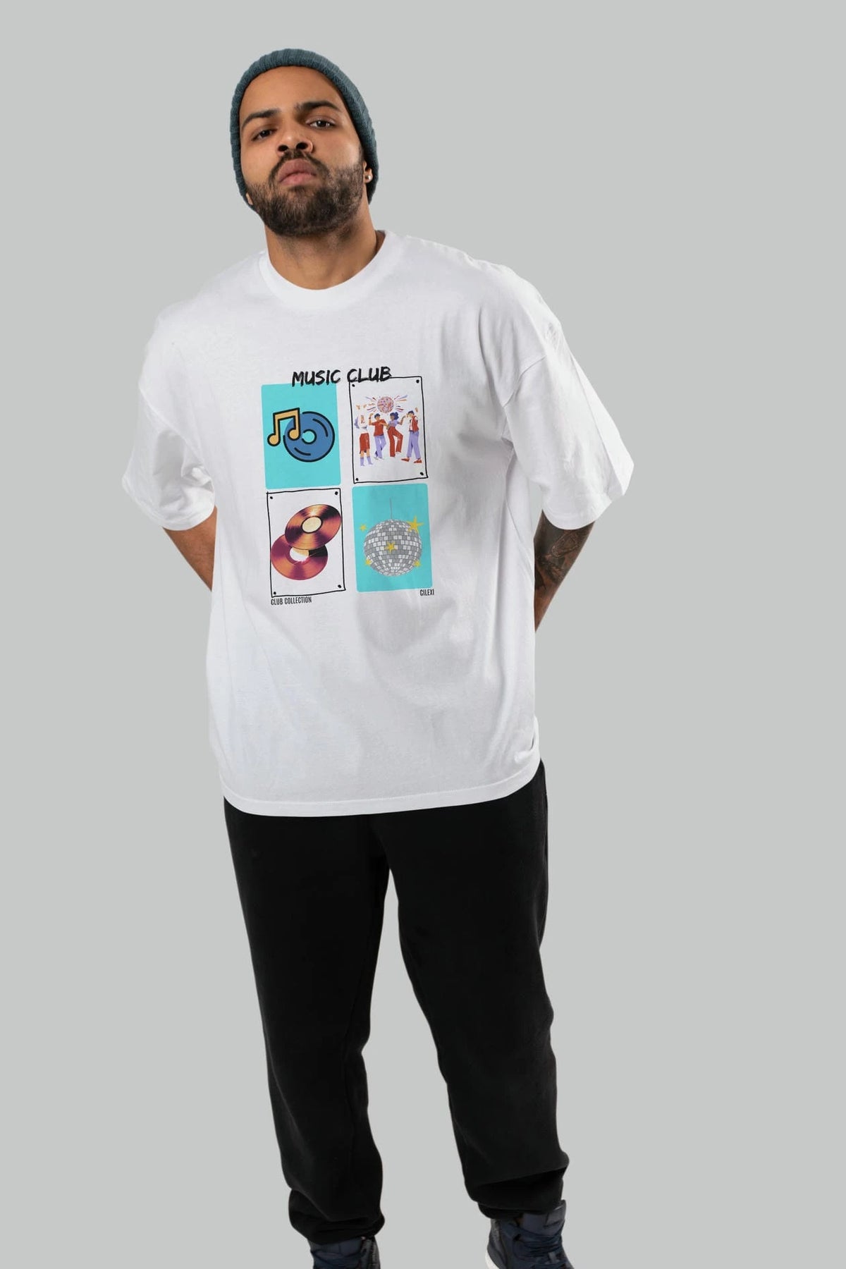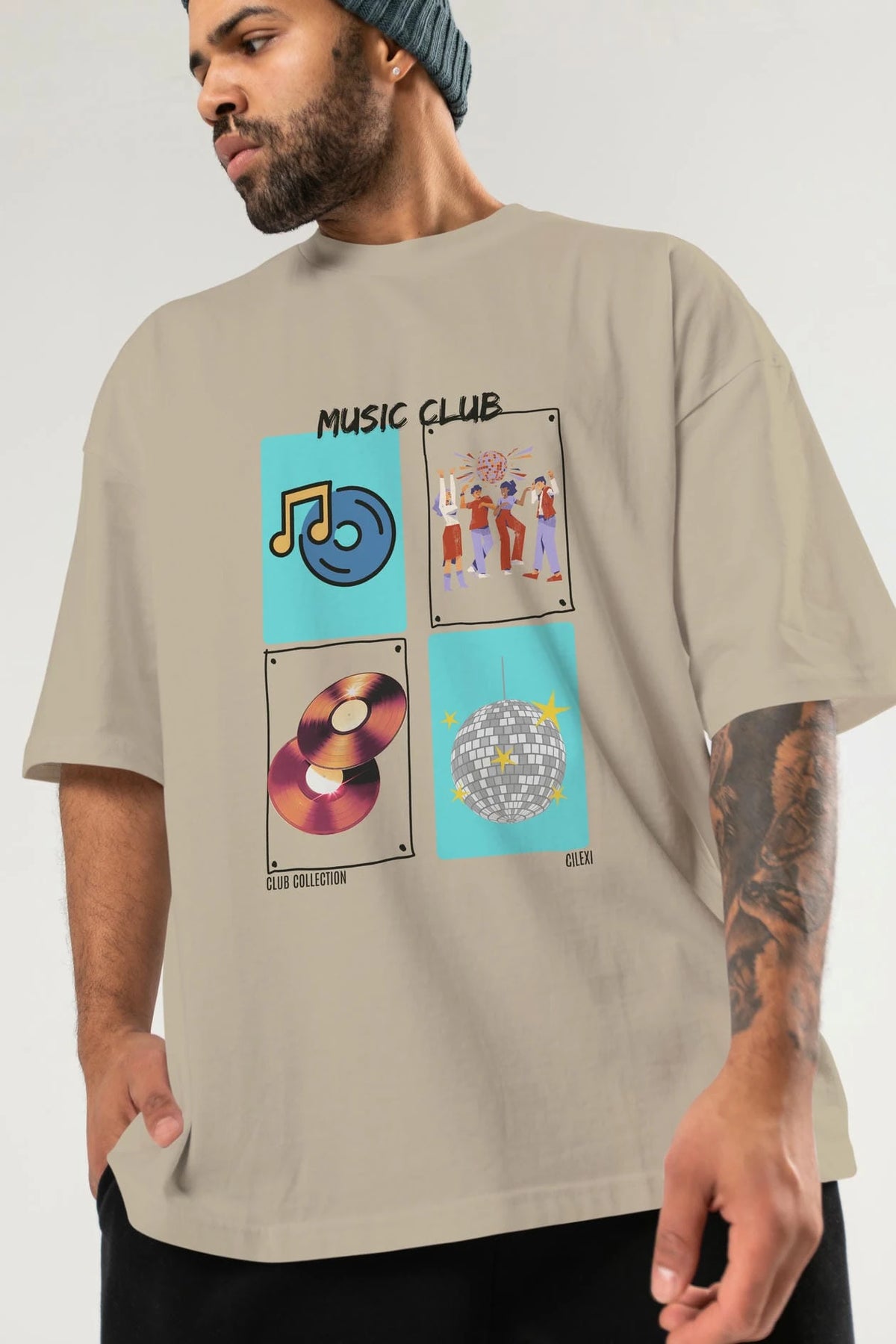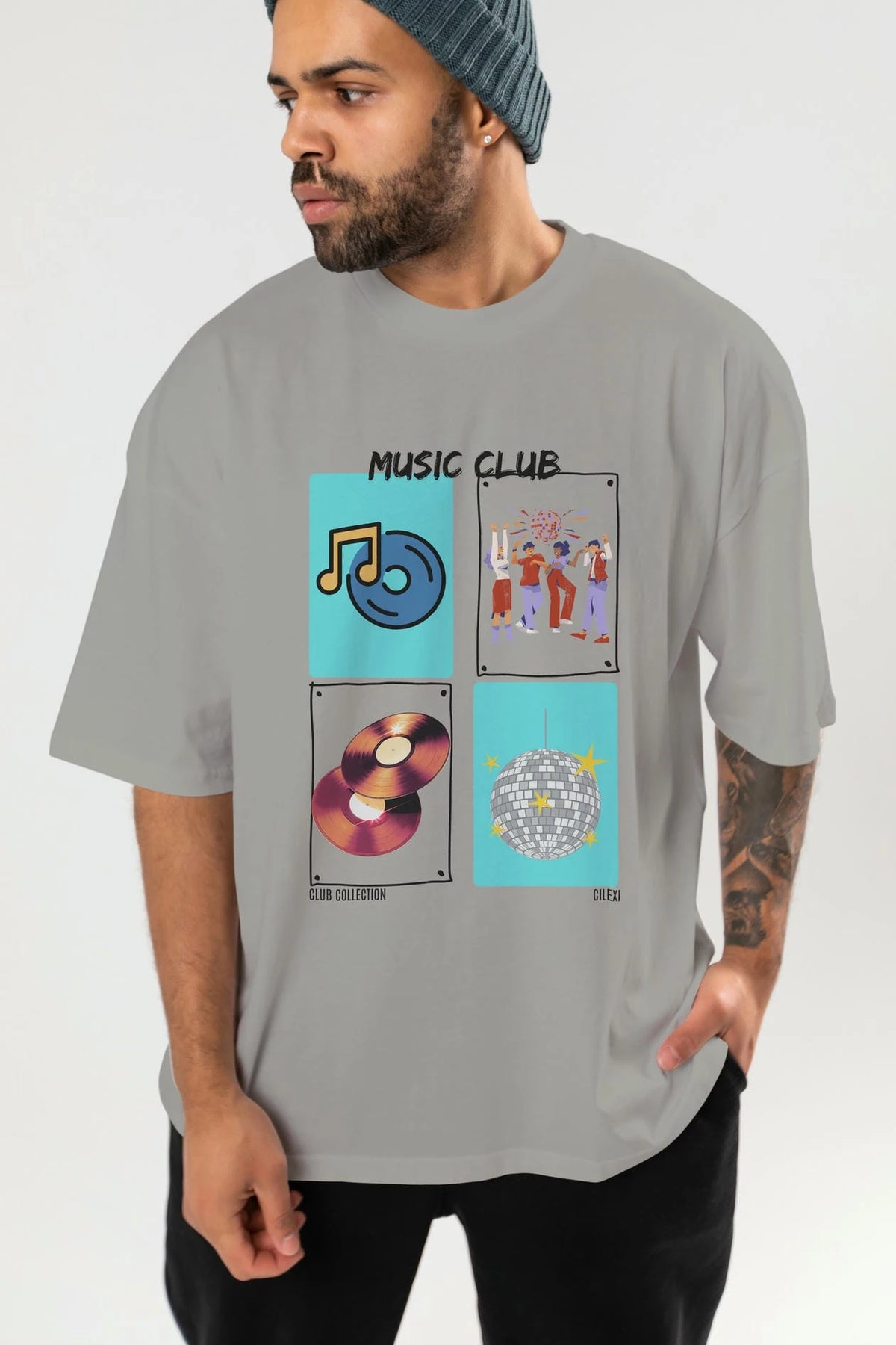 Music Club ön Baskılı Oversize t-shirt Erkek Kadın %100 Pamuk Bisiklet Yaka tişort
