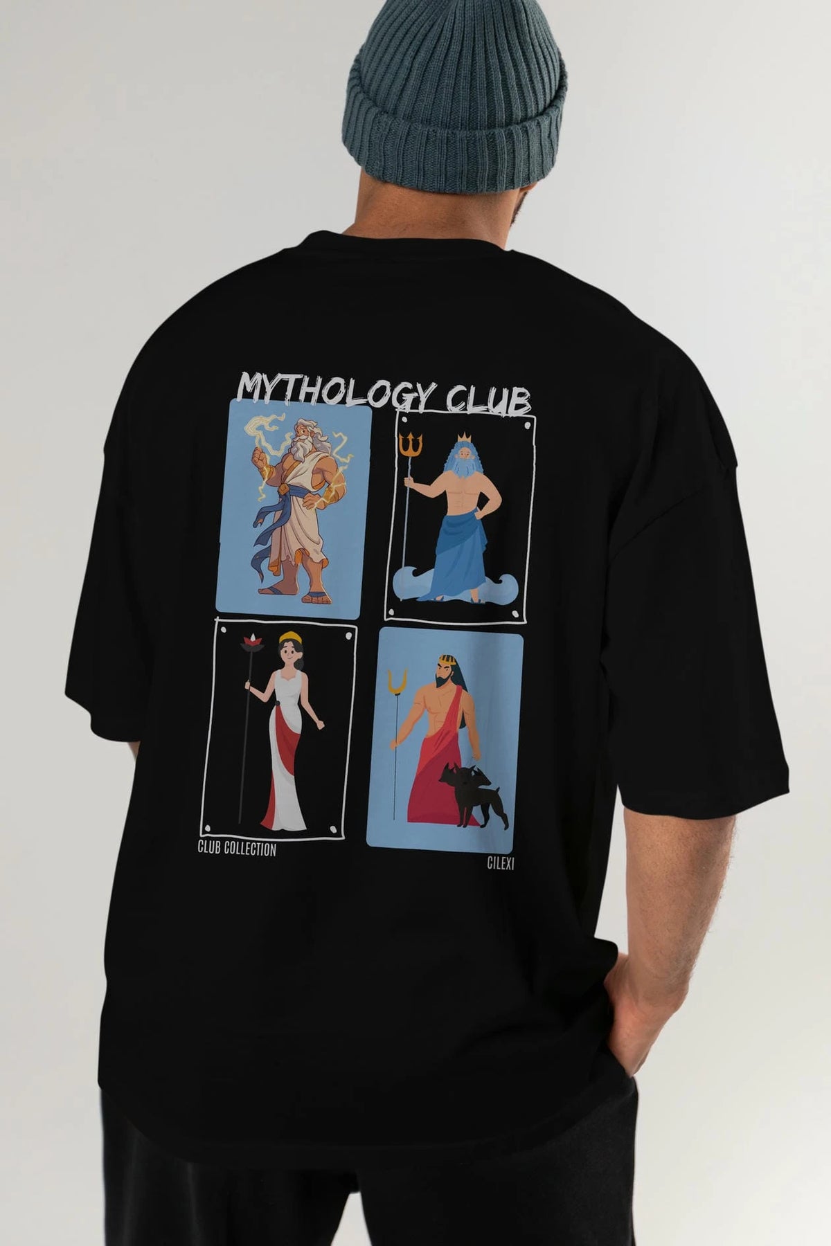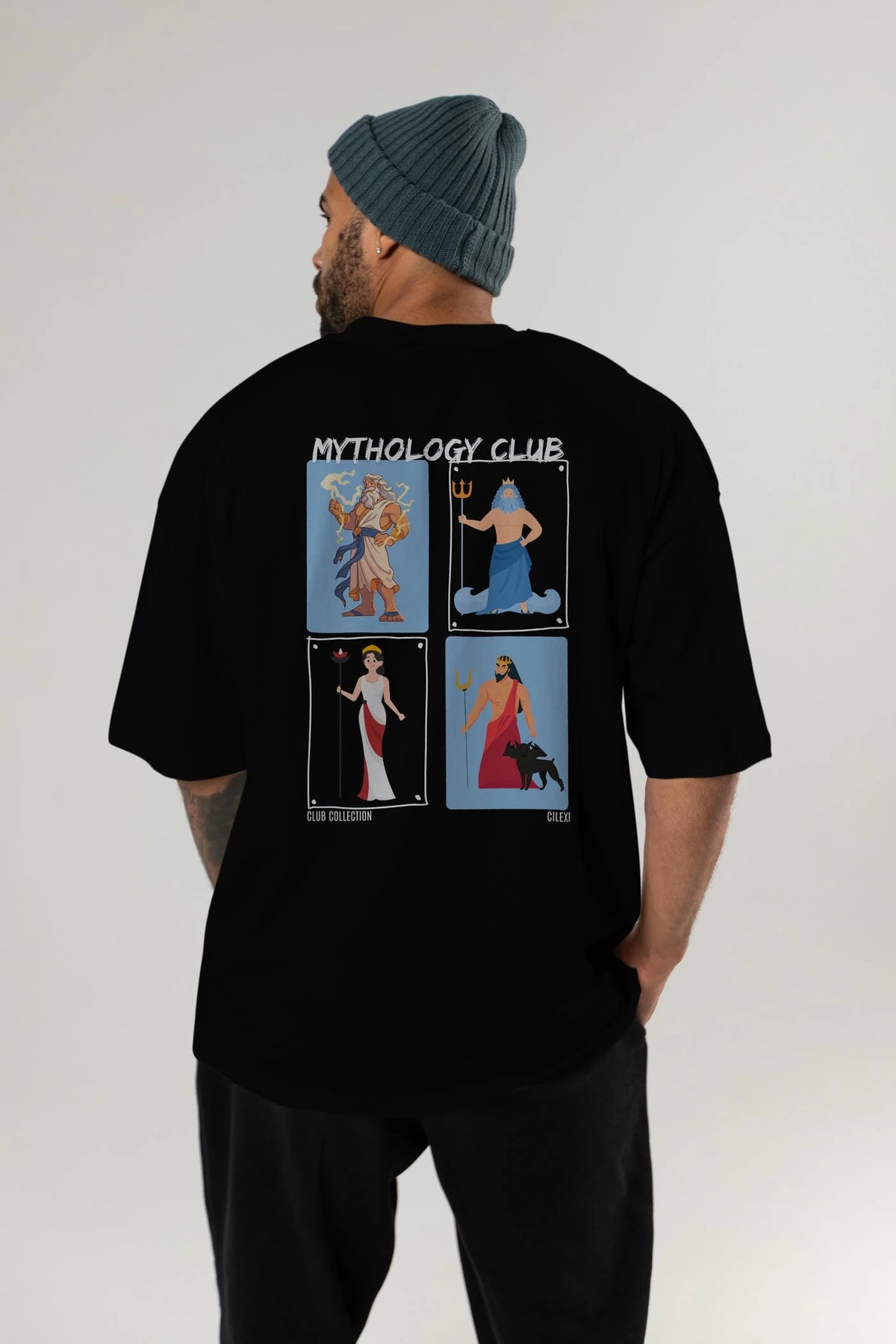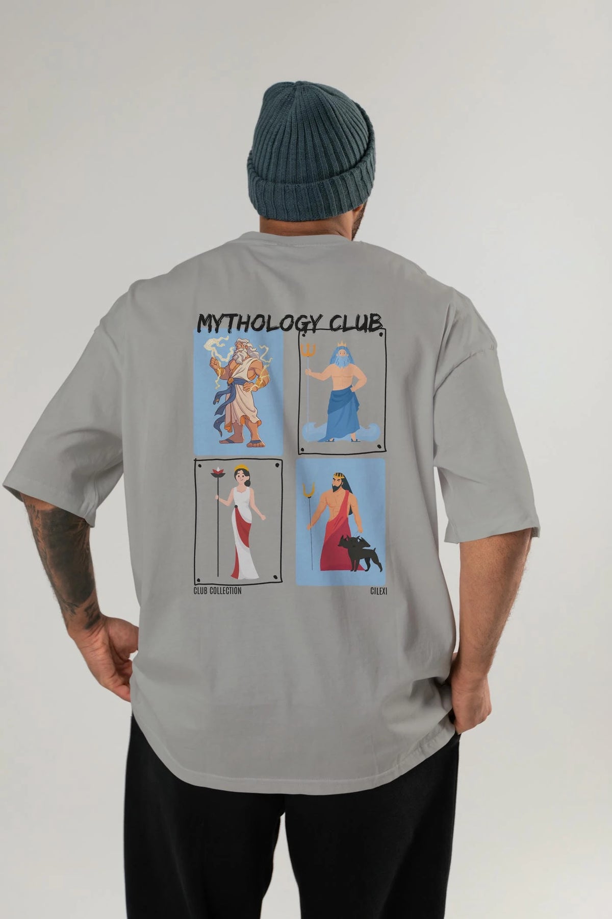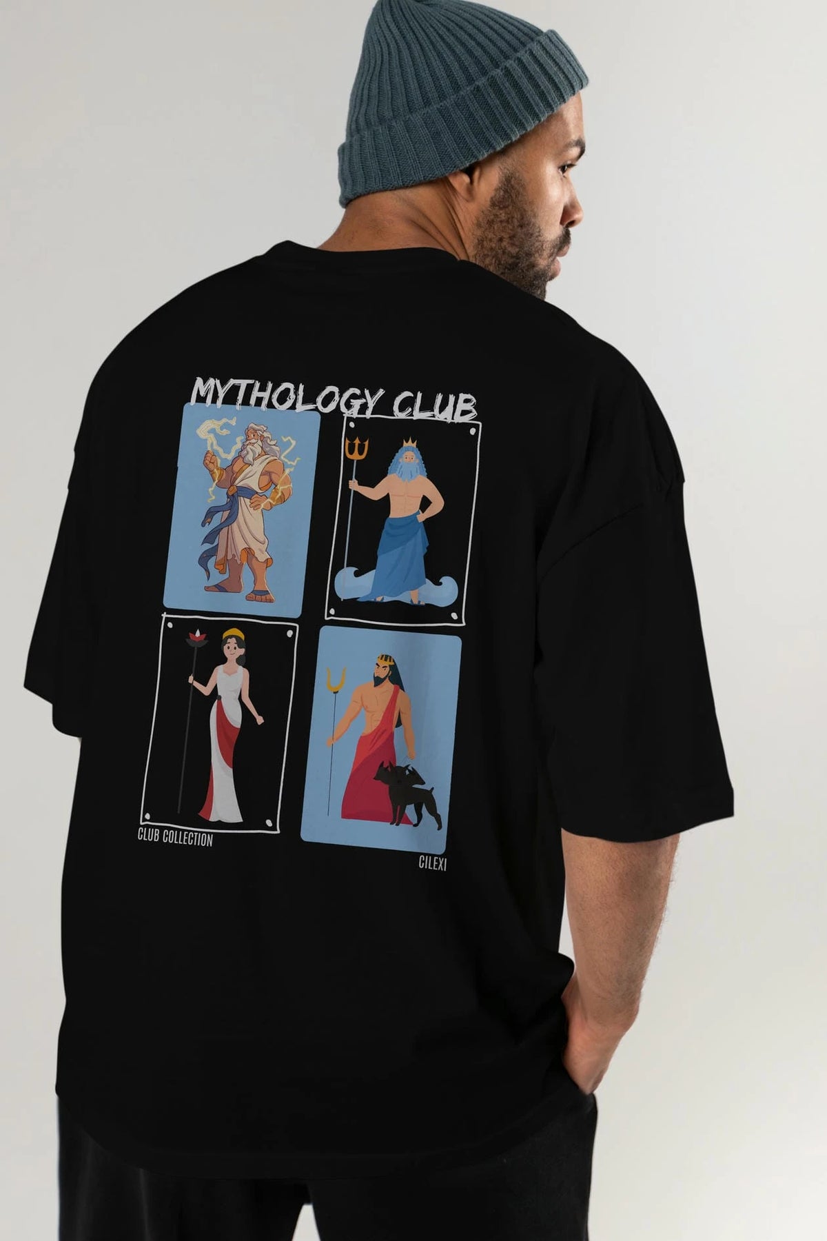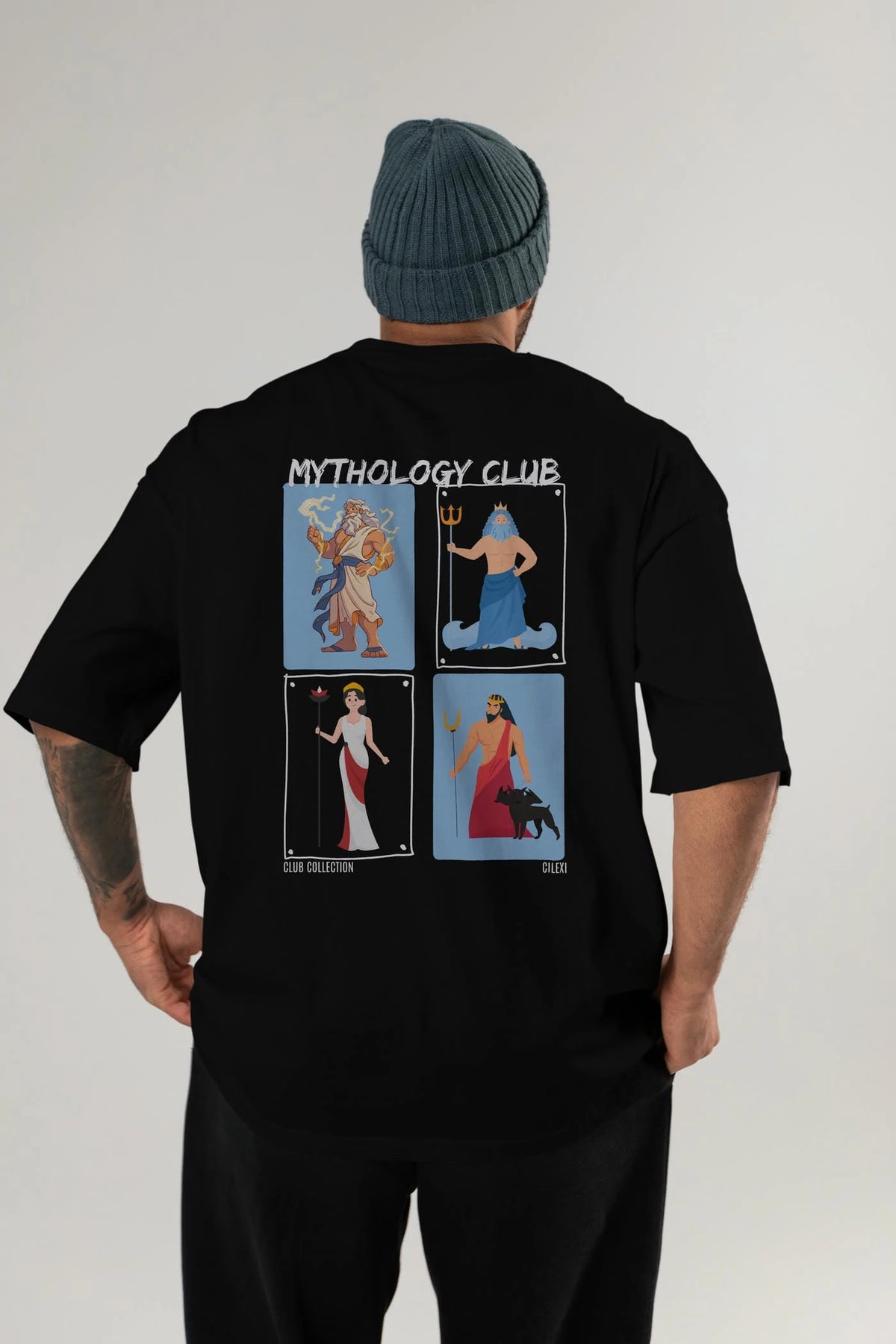 Mythology Club 2 Arka Baskılı Oversize t-shirt Erkek Kadın %100 Pamuk Bisiklet Yaka tişort