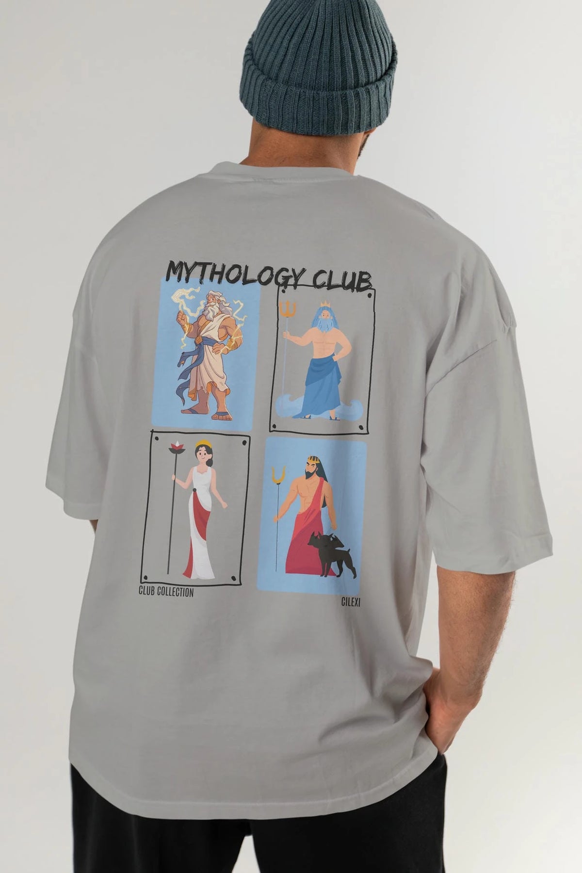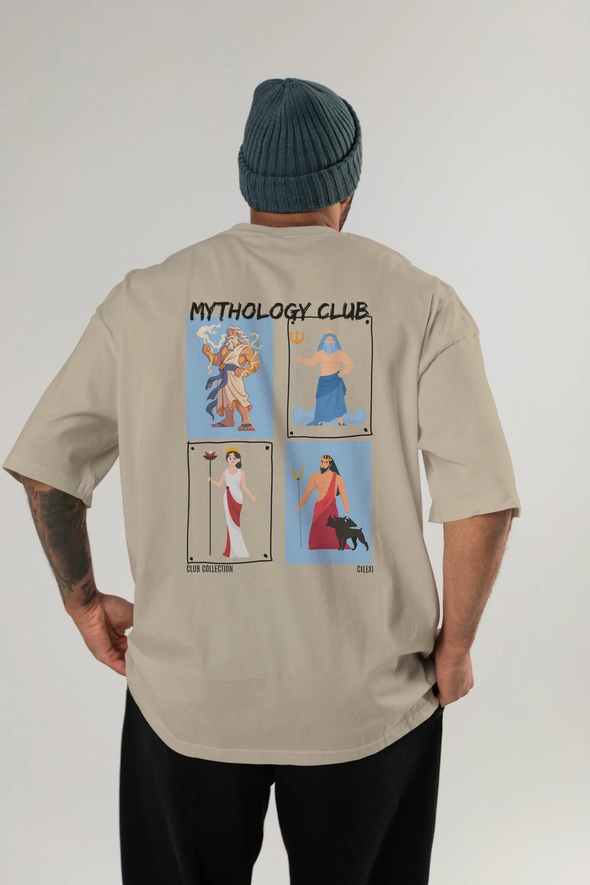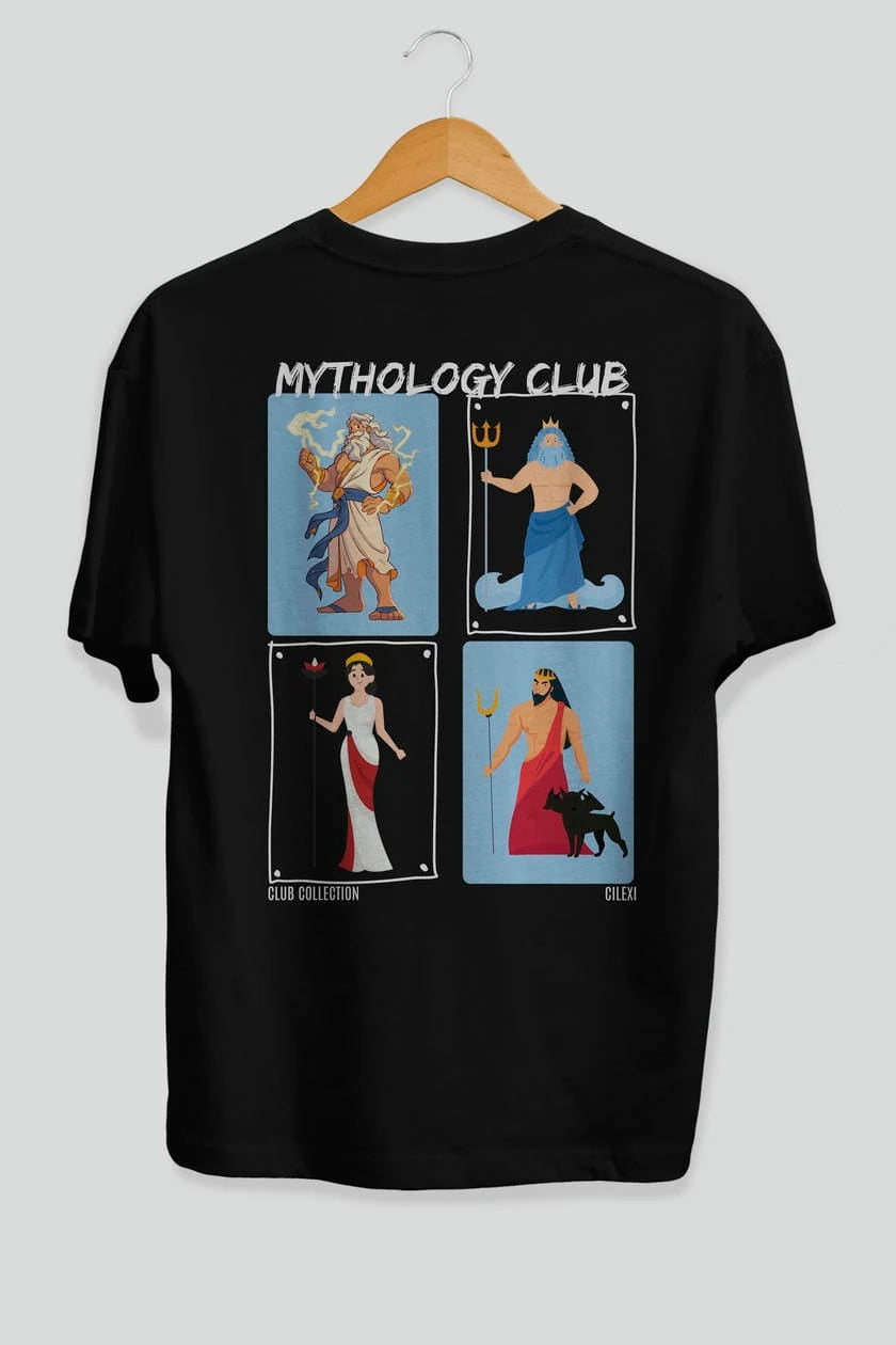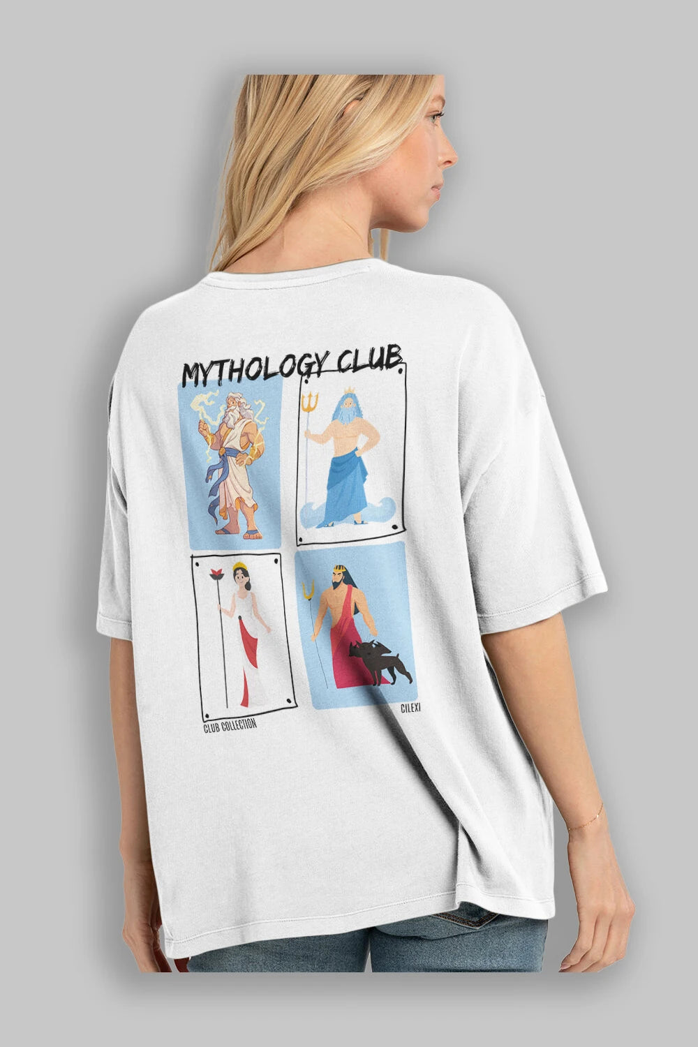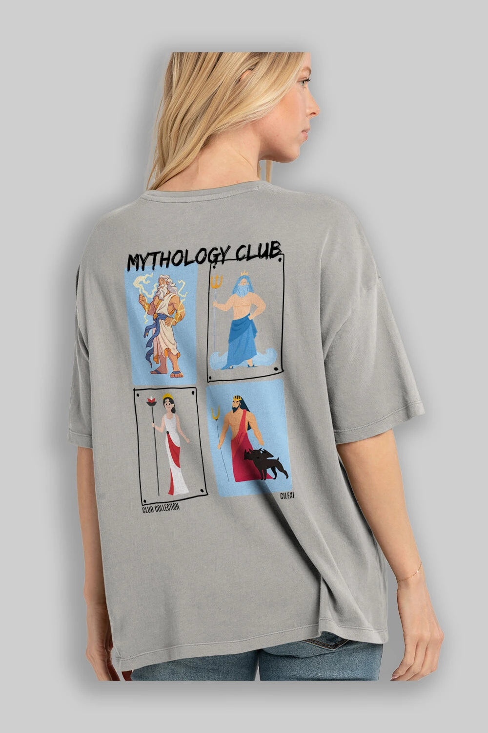 Mythology Club 2 Arka Baskılı Oversize t-shirt Erkek Kadın %100 Pamuk Bisiklet Yaka tişort