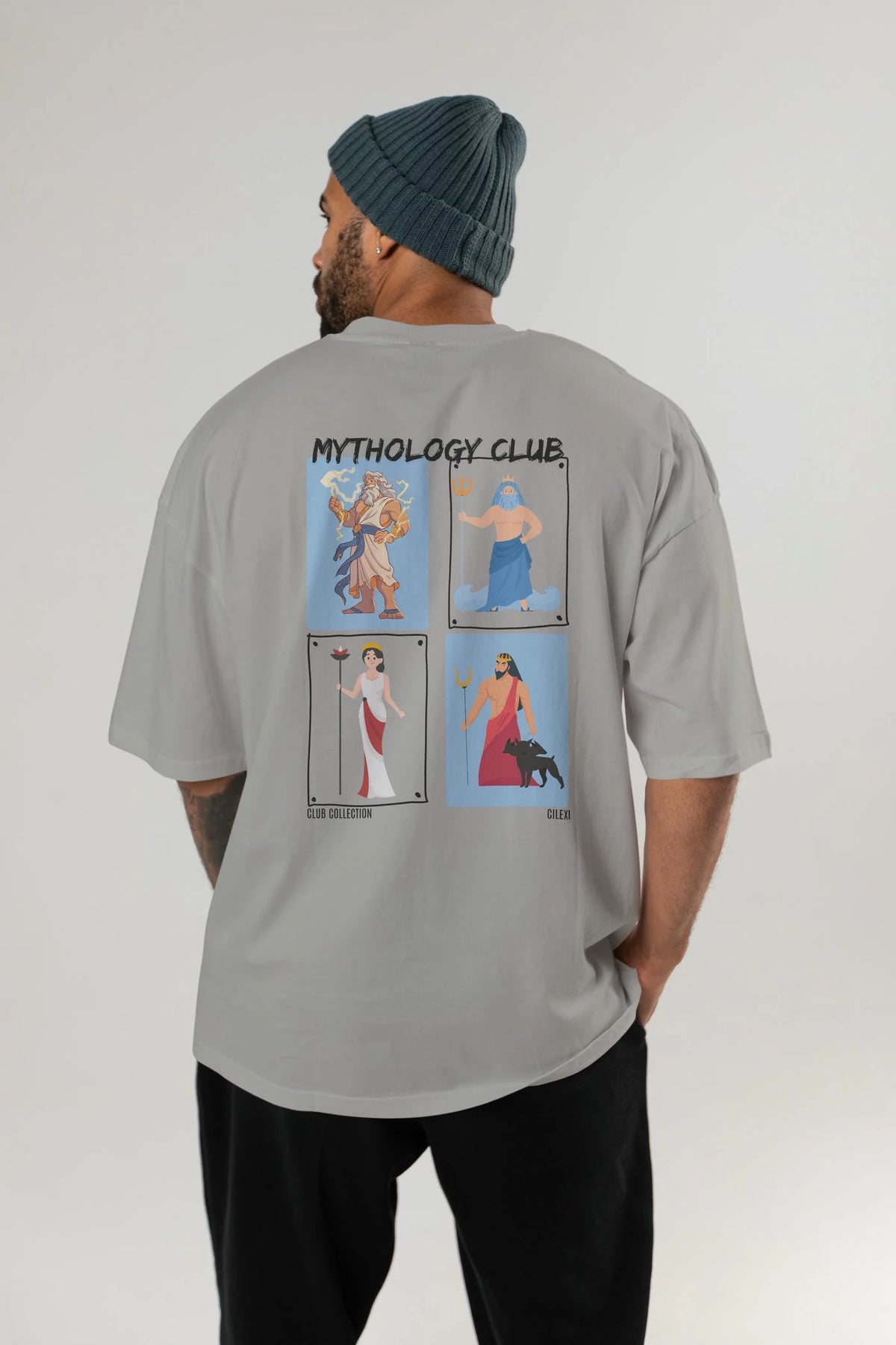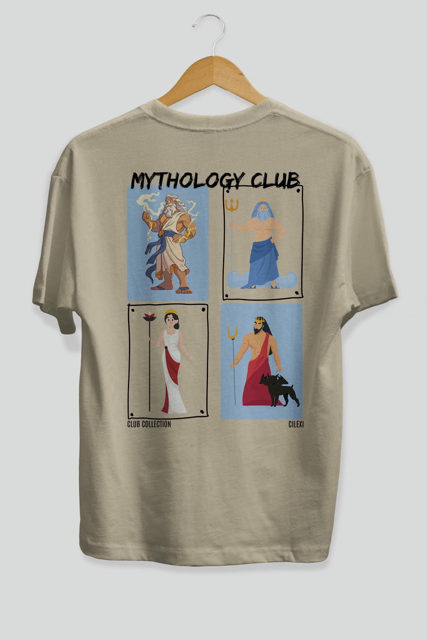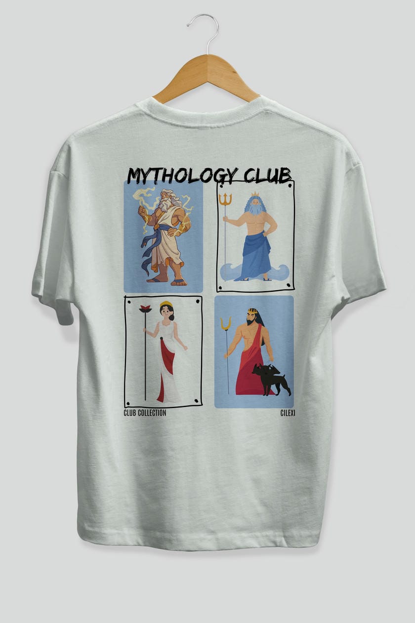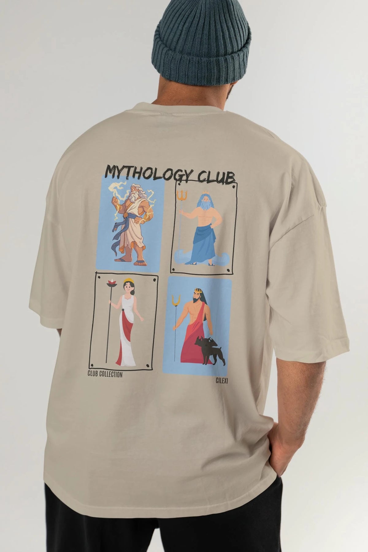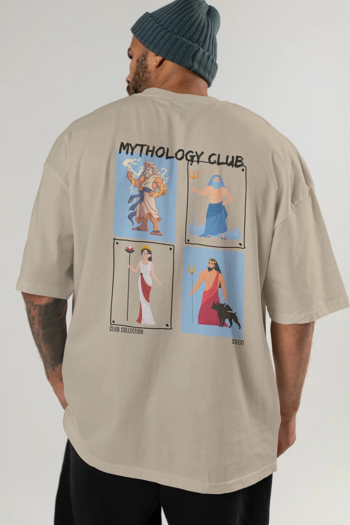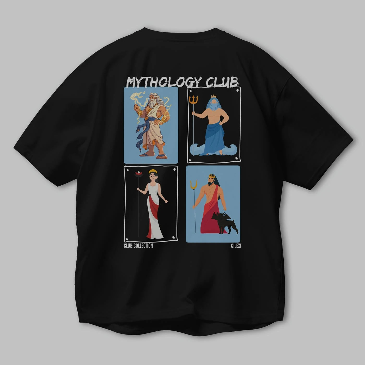 Mythology Club 2 Arka Baskılı Oversize t-shirt Erkek Kadın %100 Pamuk Bisiklet Yaka tişort