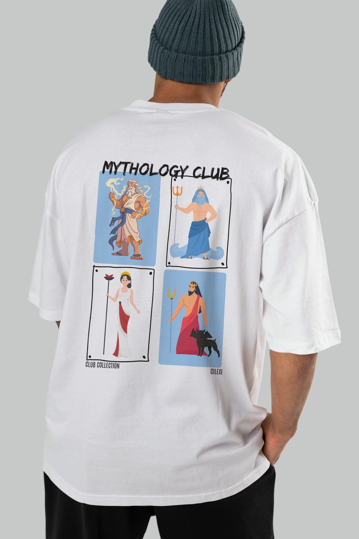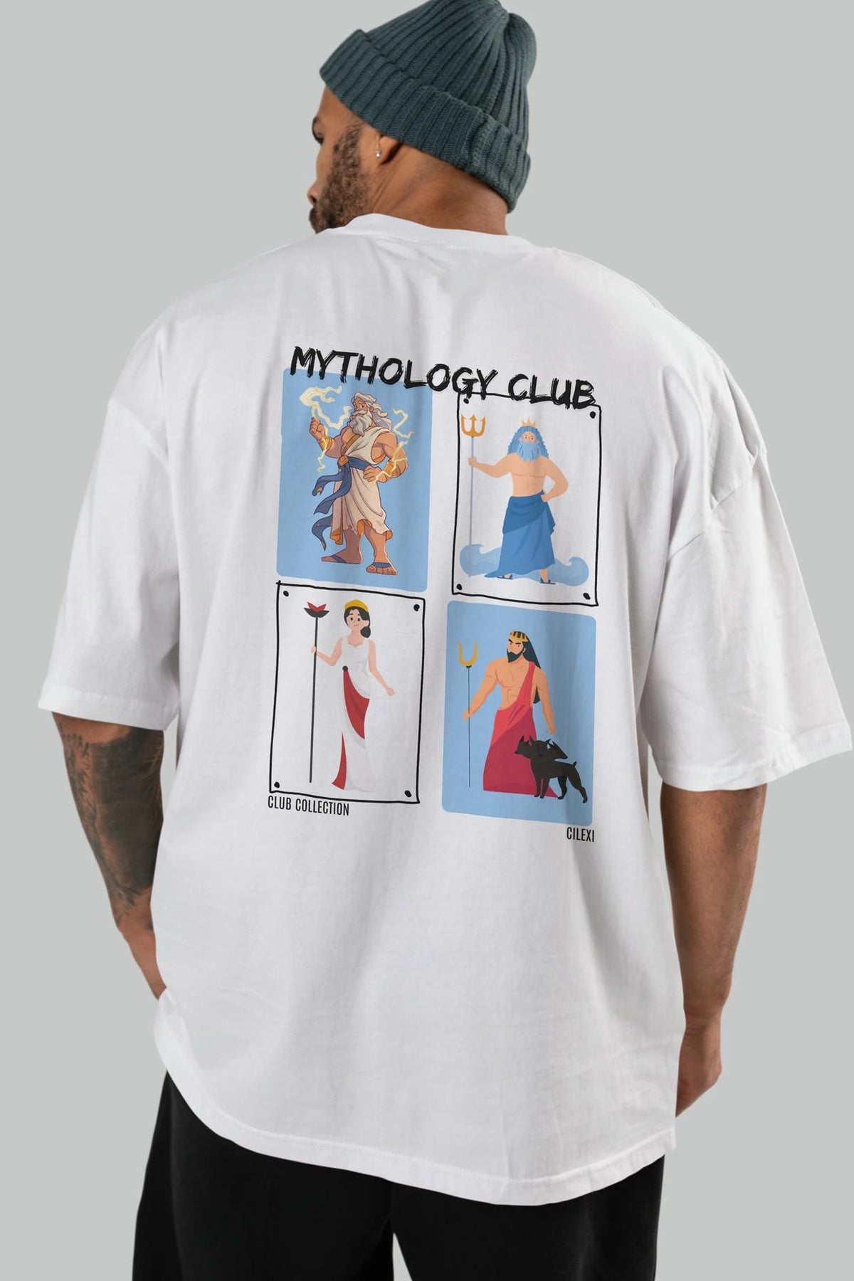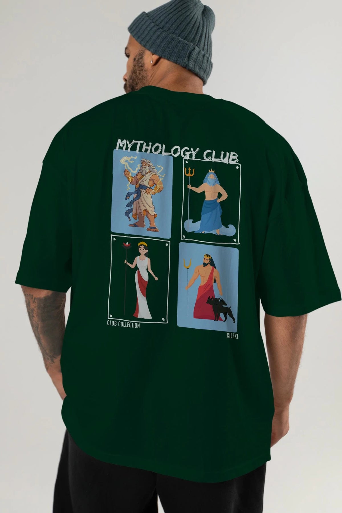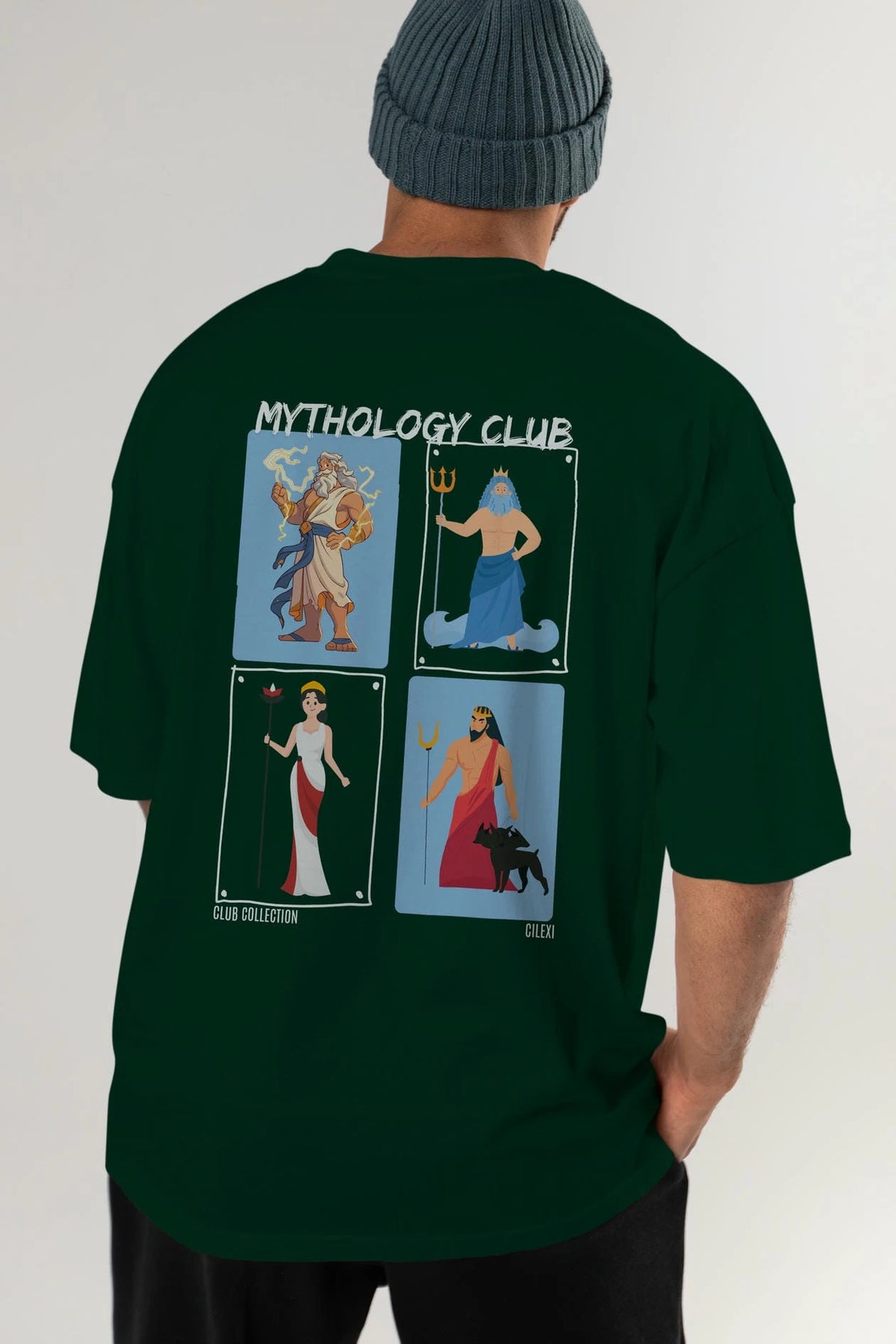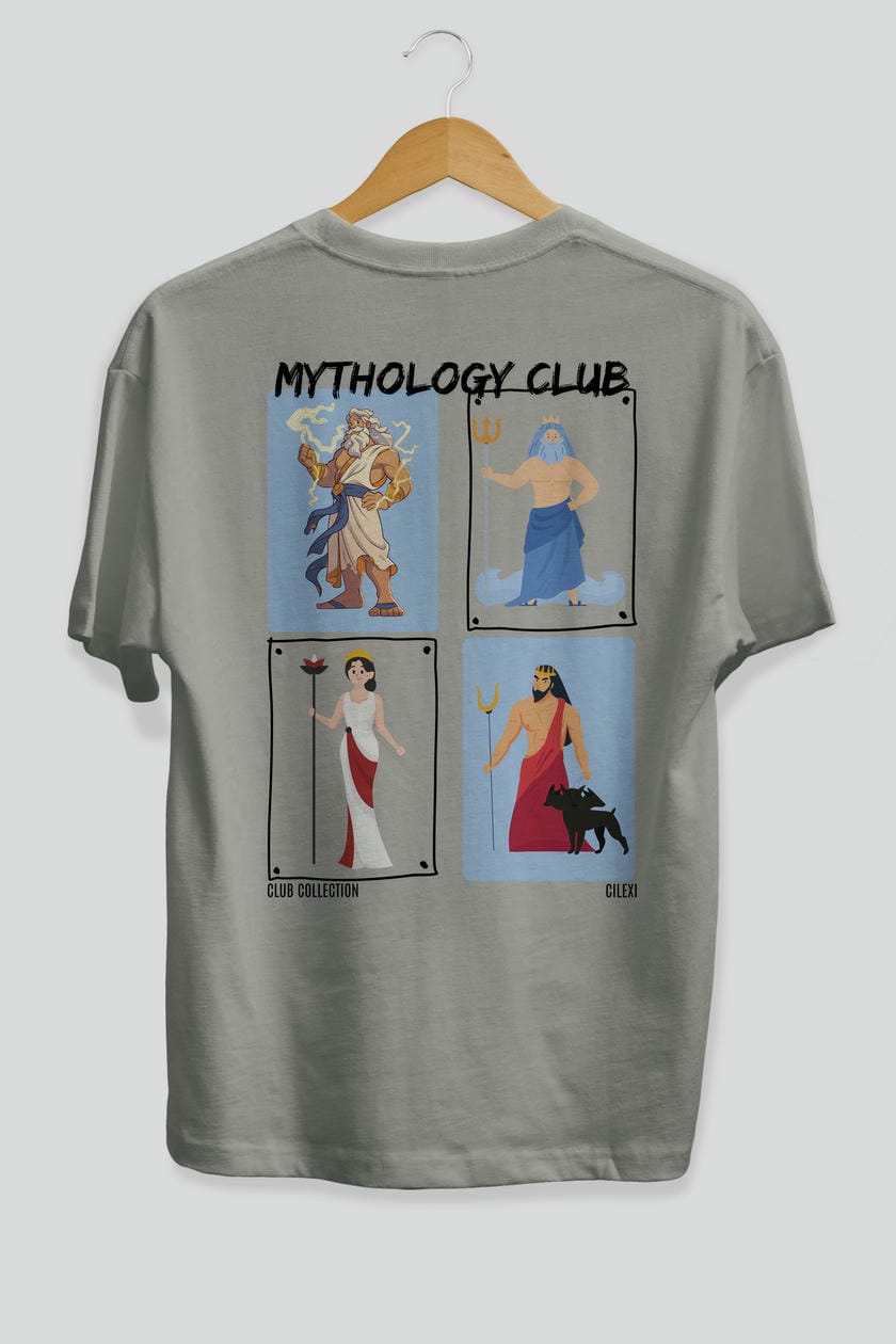 Mythology Club 2 Arka Baskılı Oversize t-shirt Erkek Kadın %100 Pamuk Bisiklet Yaka tişort