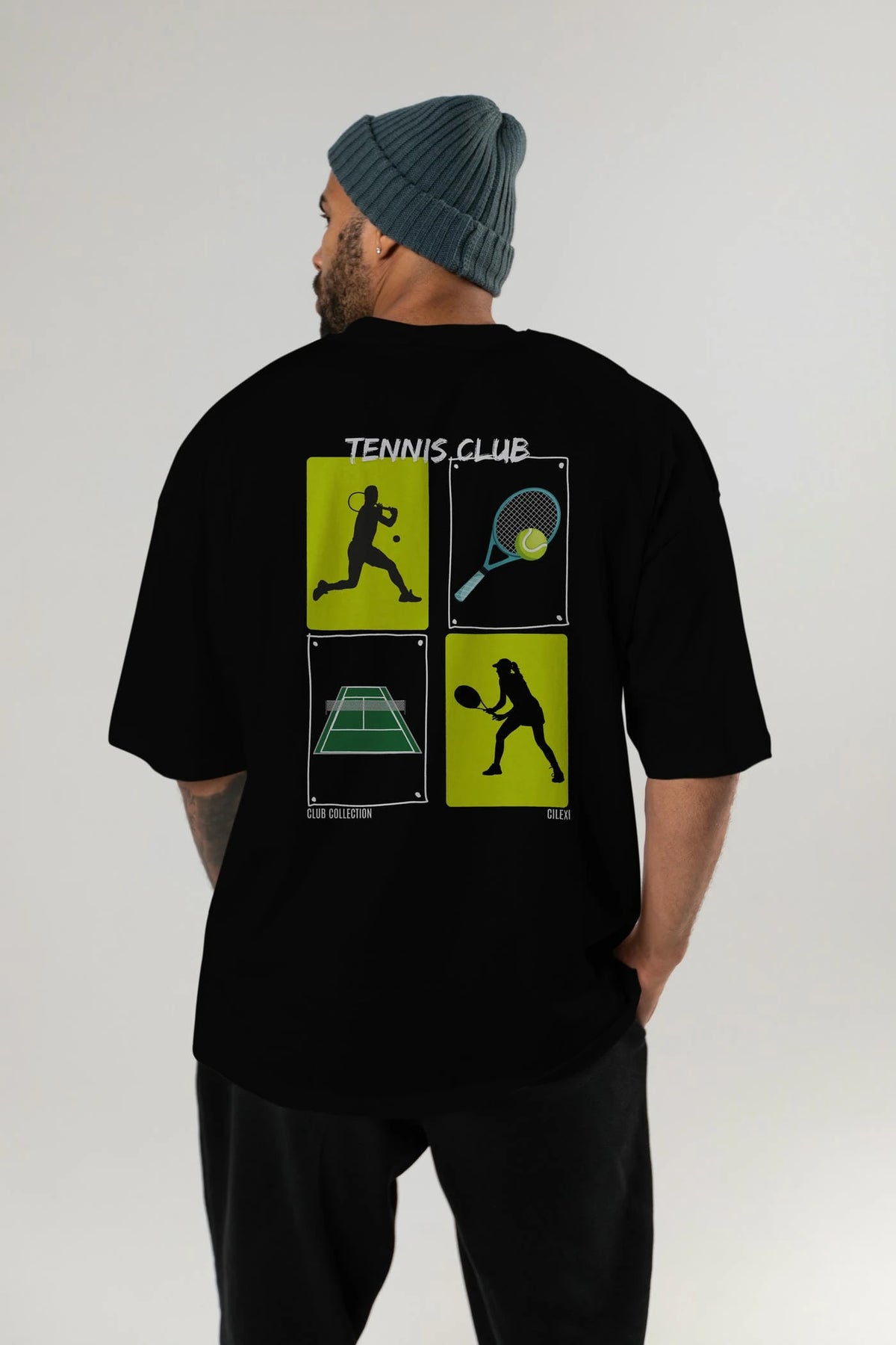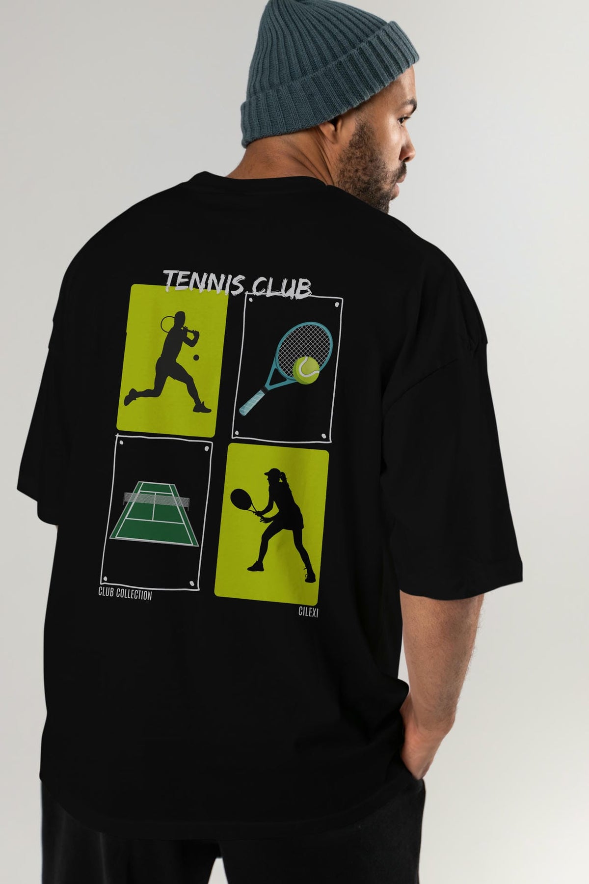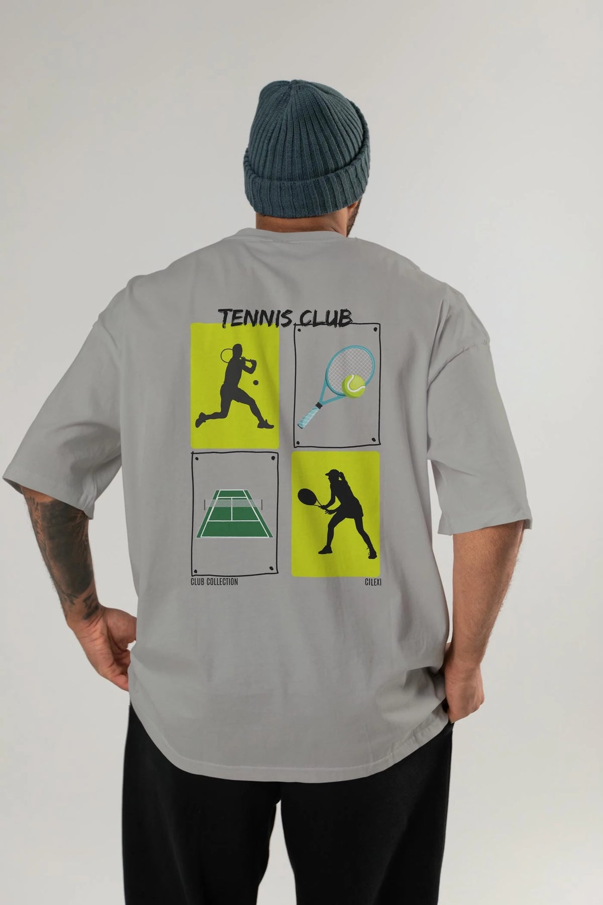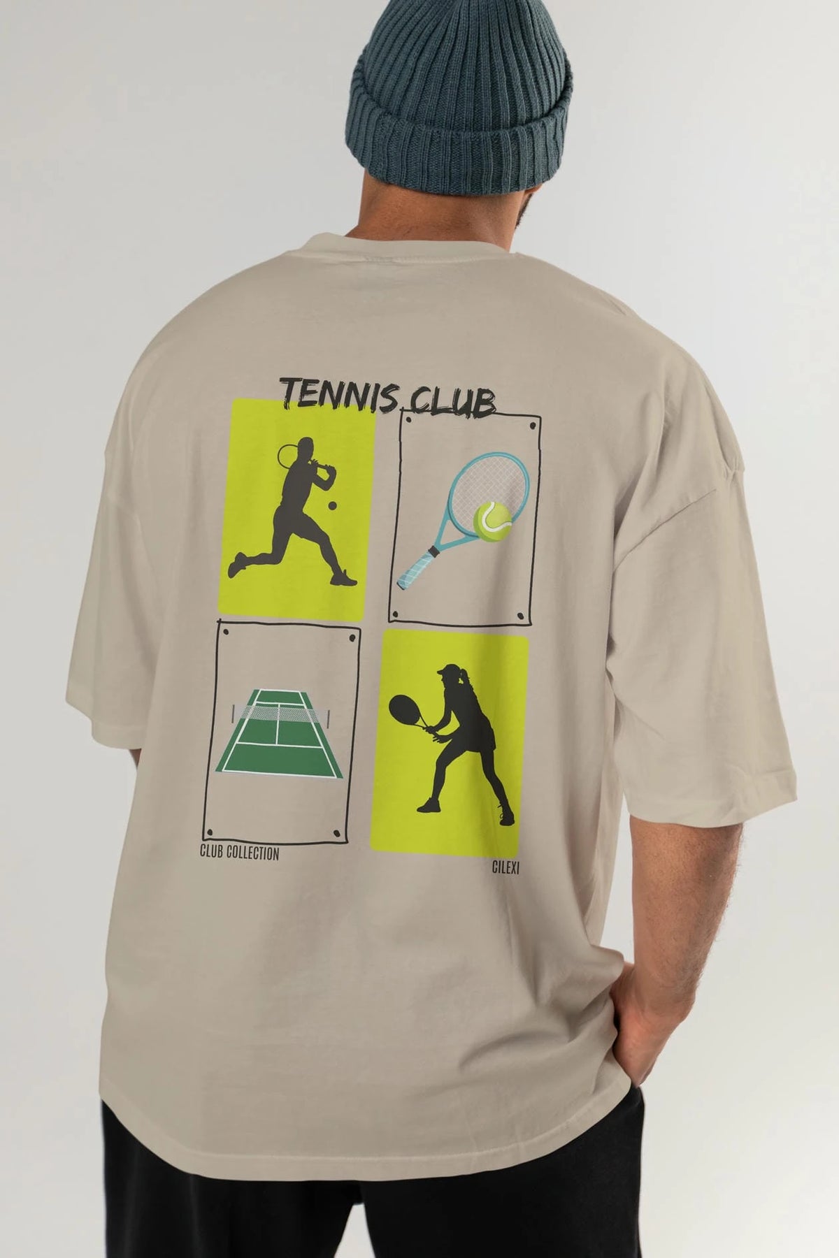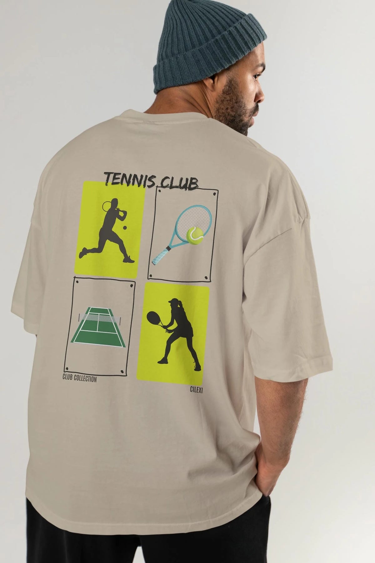 Tennis Club Arka Baskılı Oversize t-shirt Erkek Kadın %100 Pamuk Bisiklet Yaka tişort