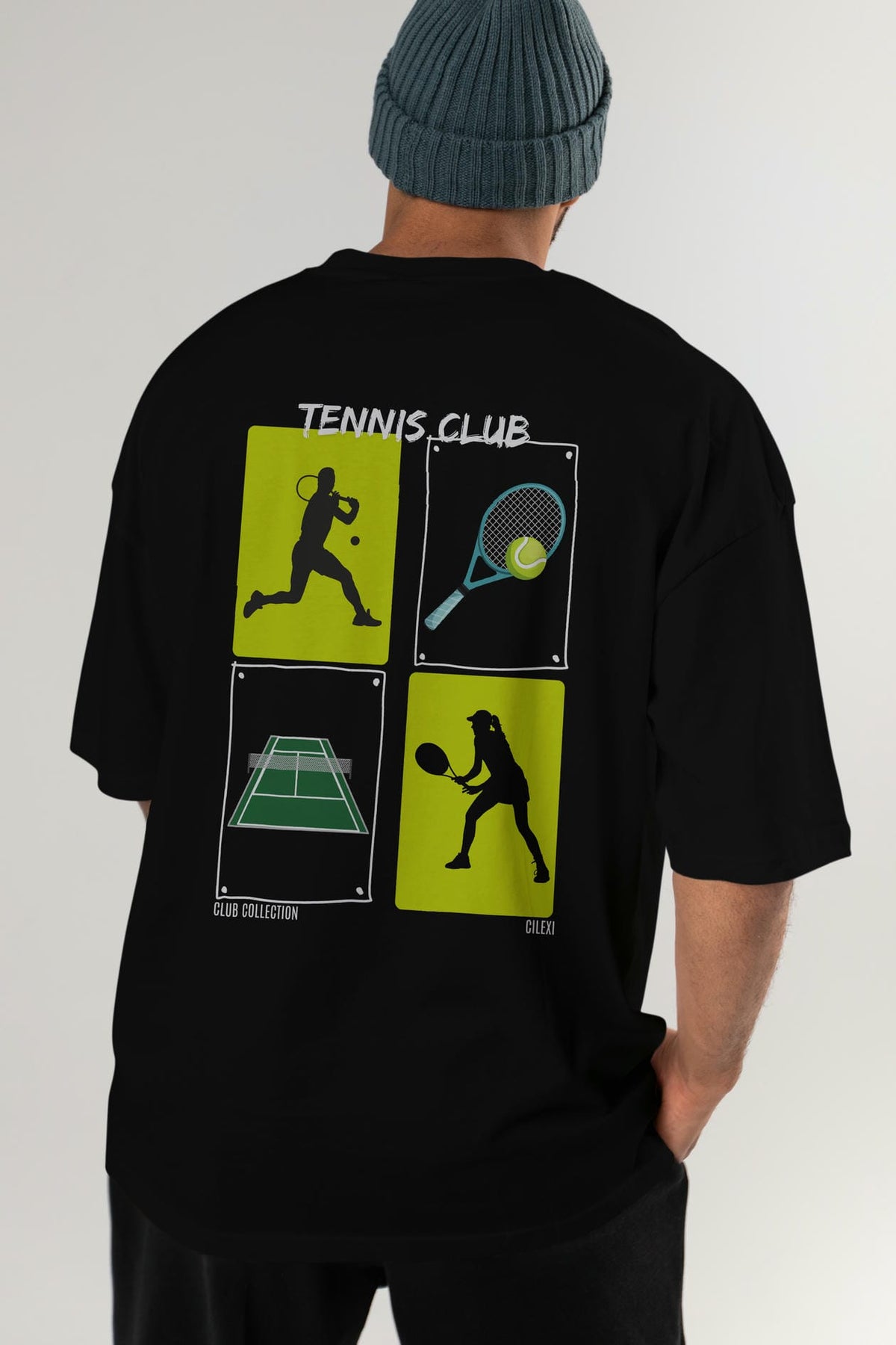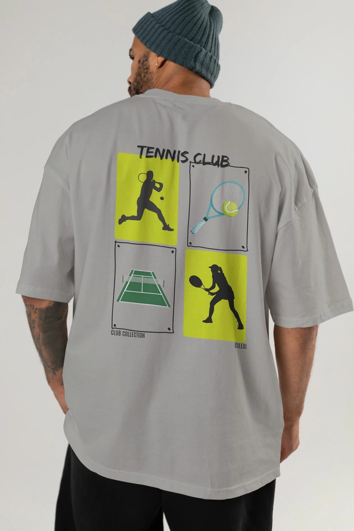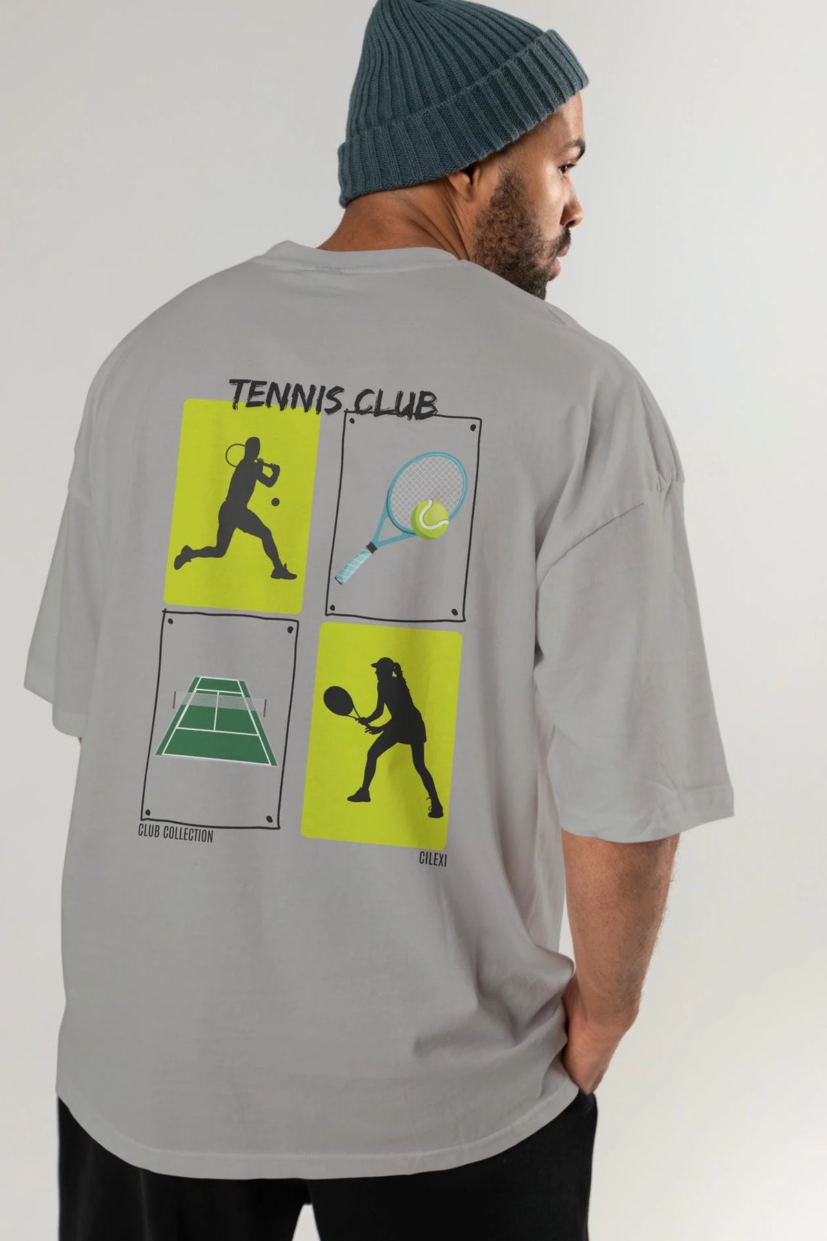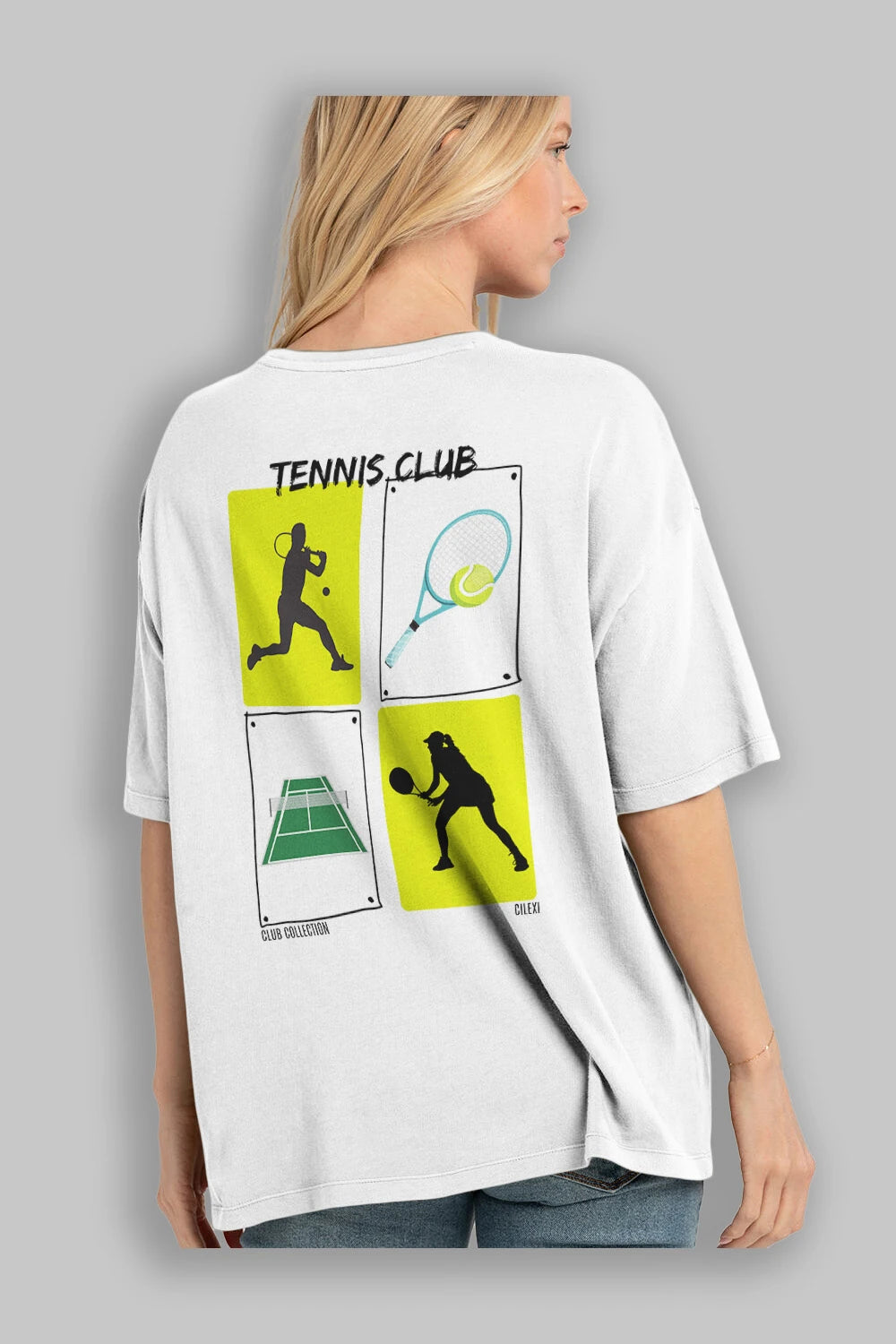 Tennis Club Arka Baskılı Oversize t-shirt Erkek Kadın %100 Pamuk Bisiklet Yaka tişort