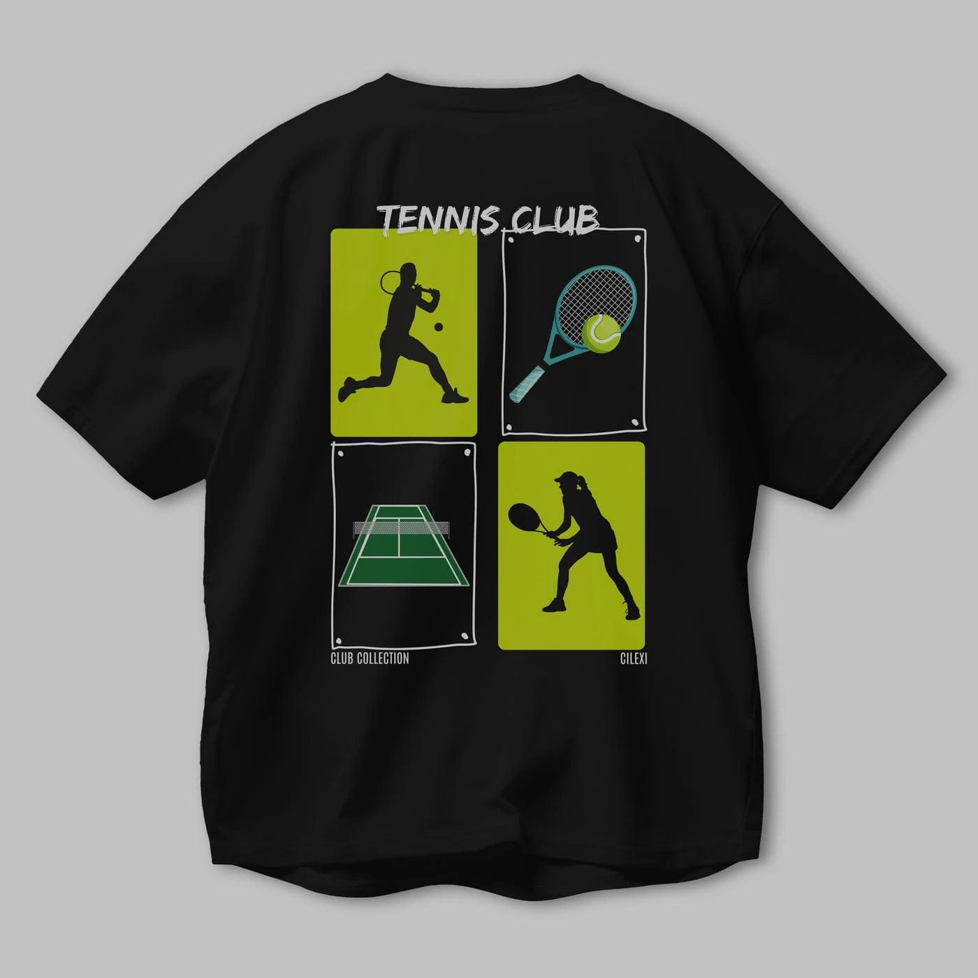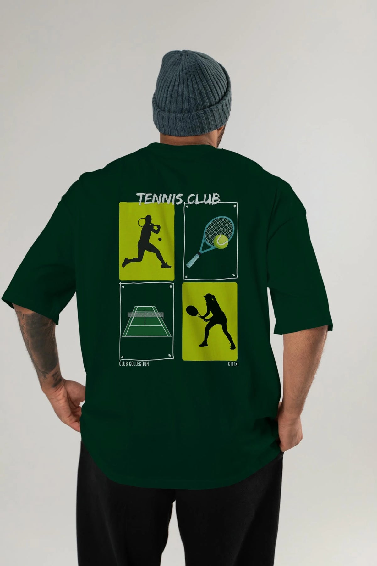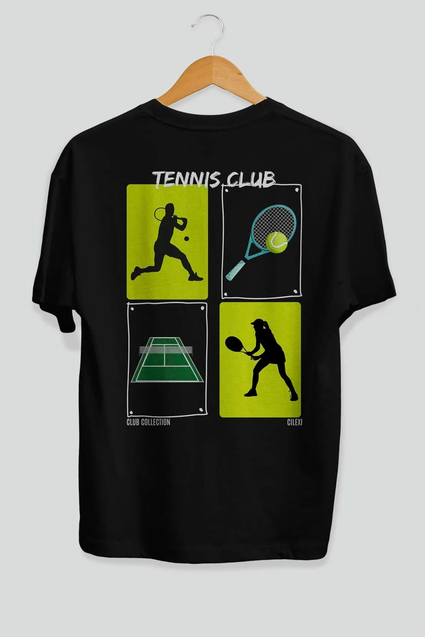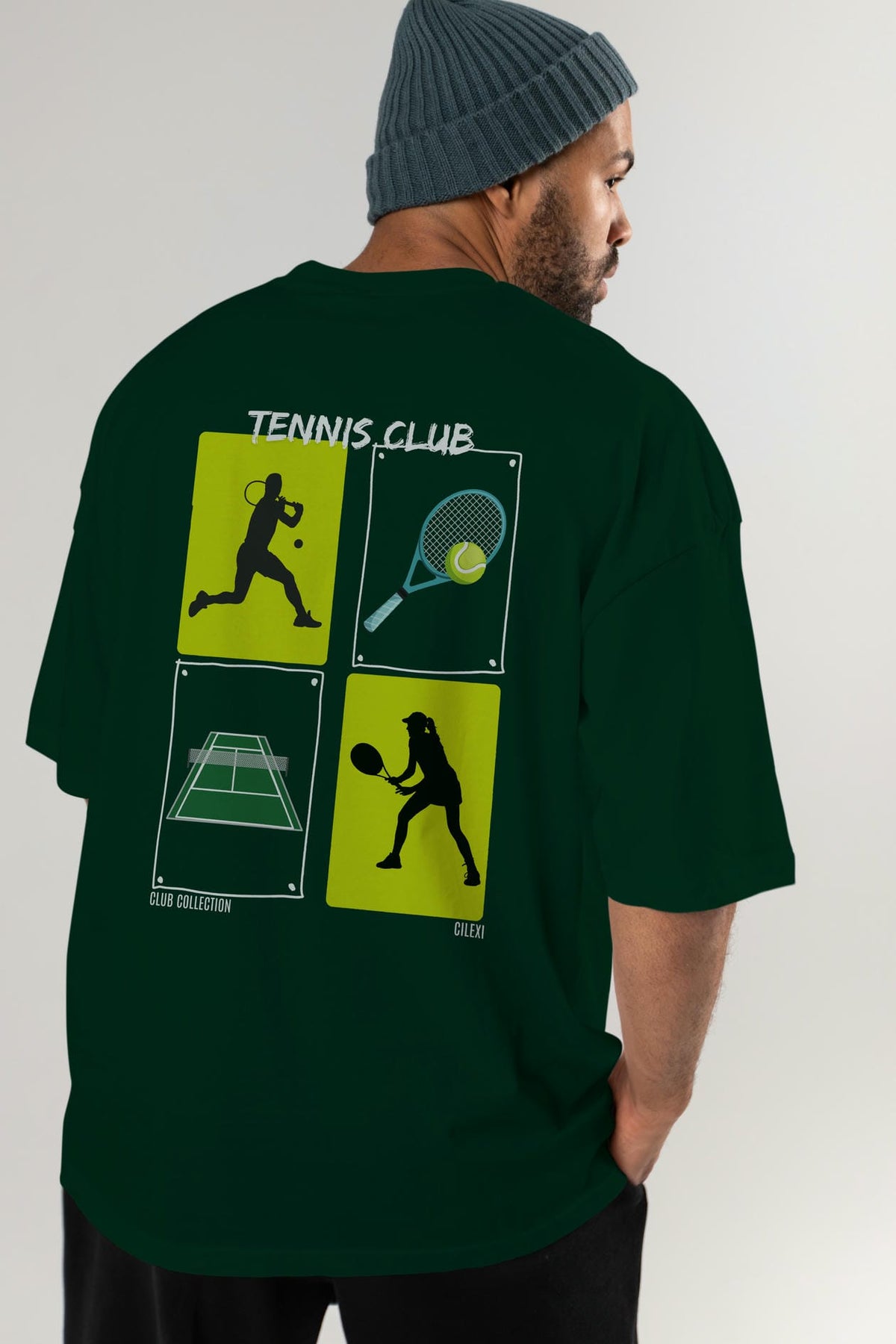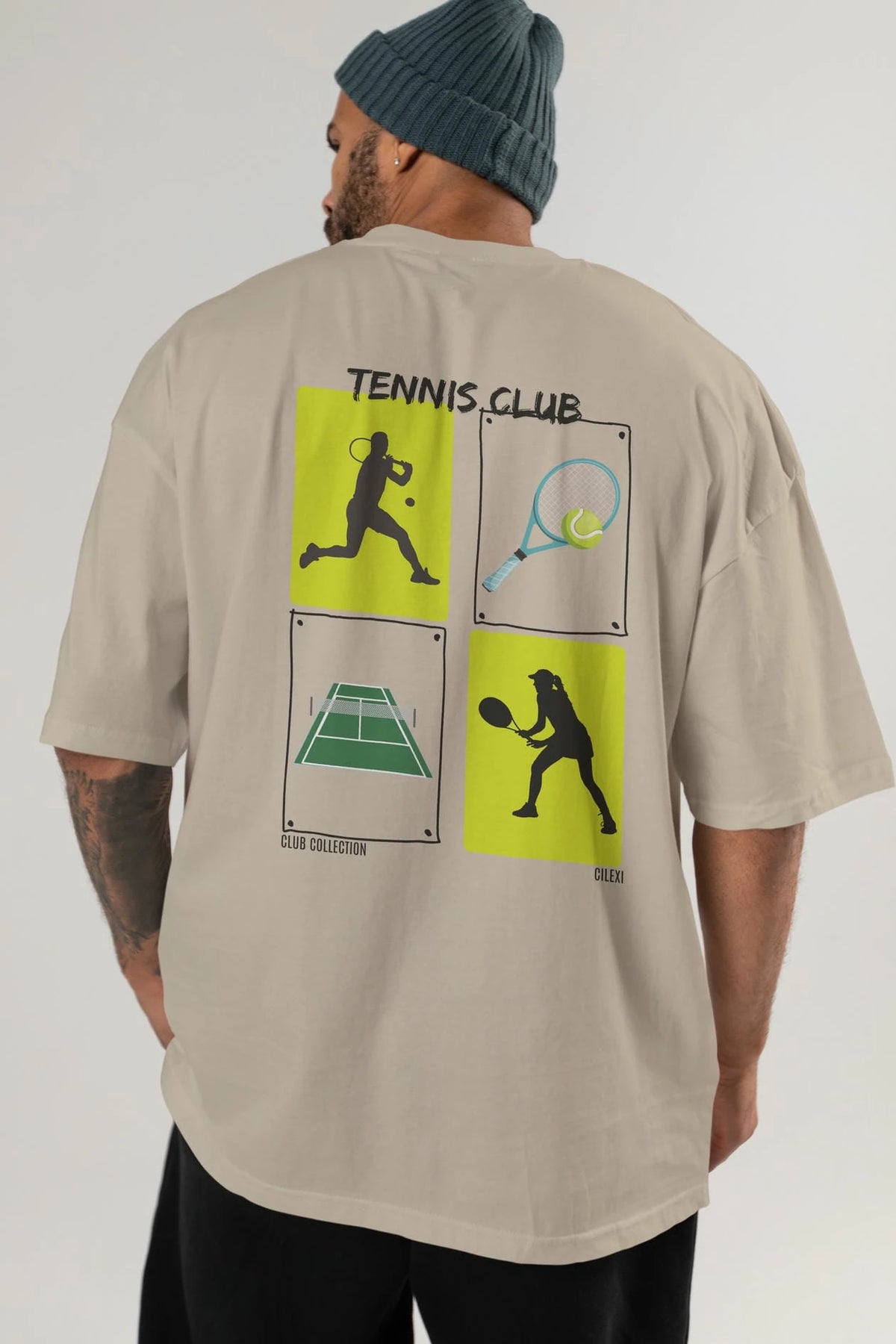 Tennis Club Arka Baskılı Oversize t-shirt Erkek Kadın %100 Pamuk Bisiklet Yaka tişort