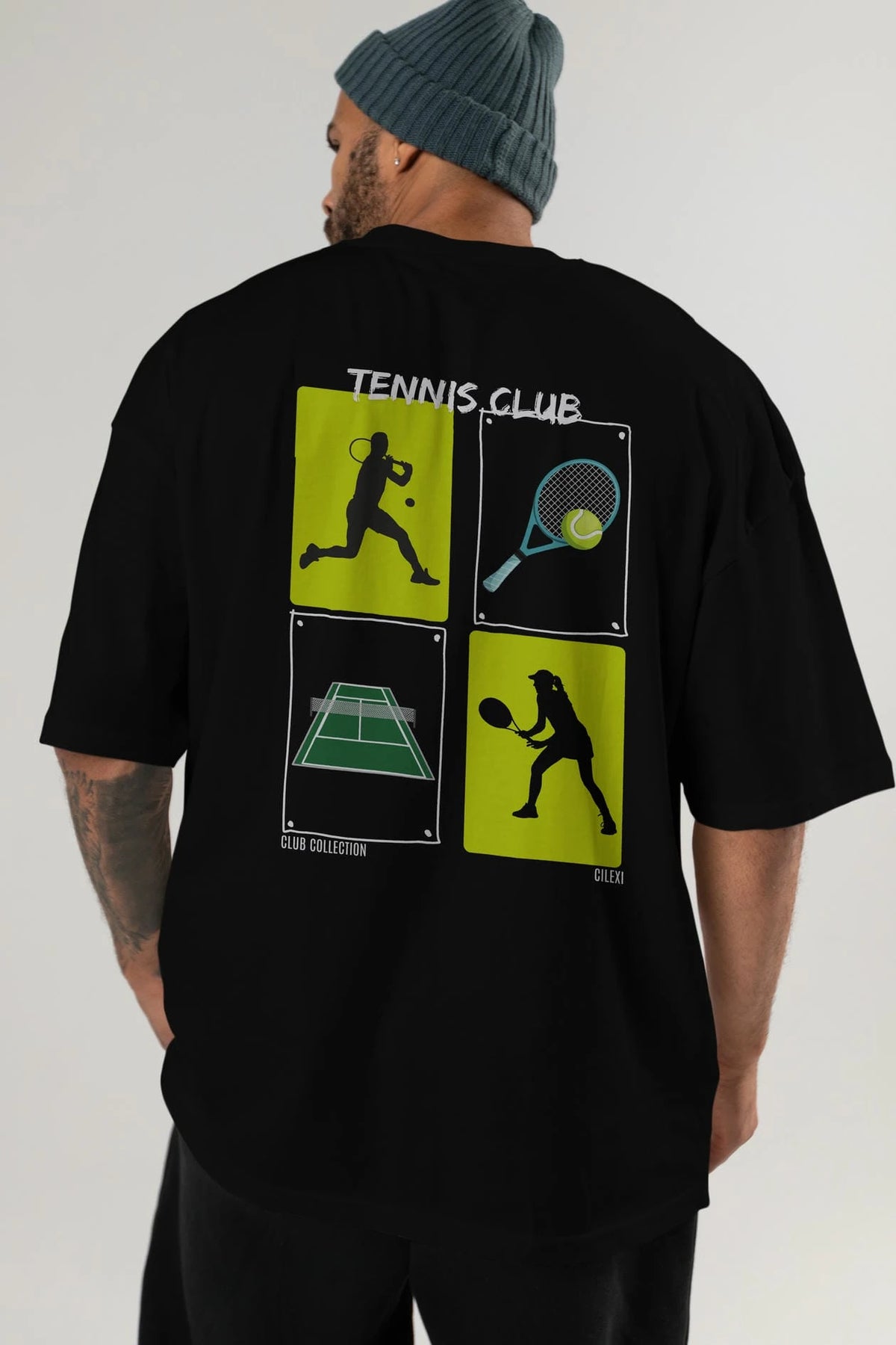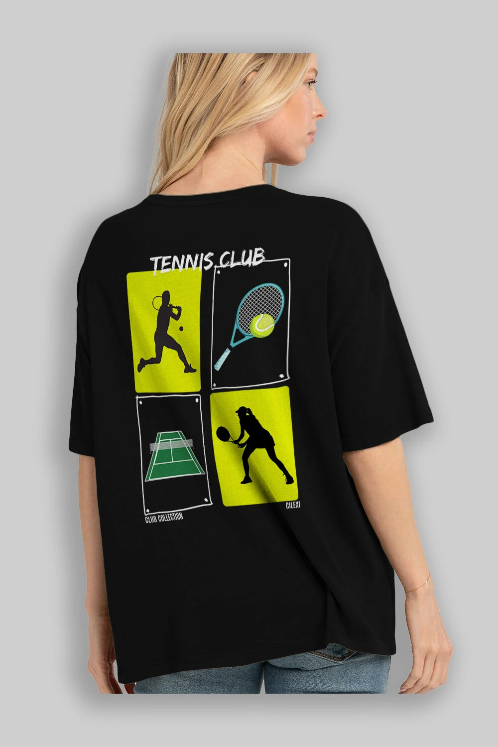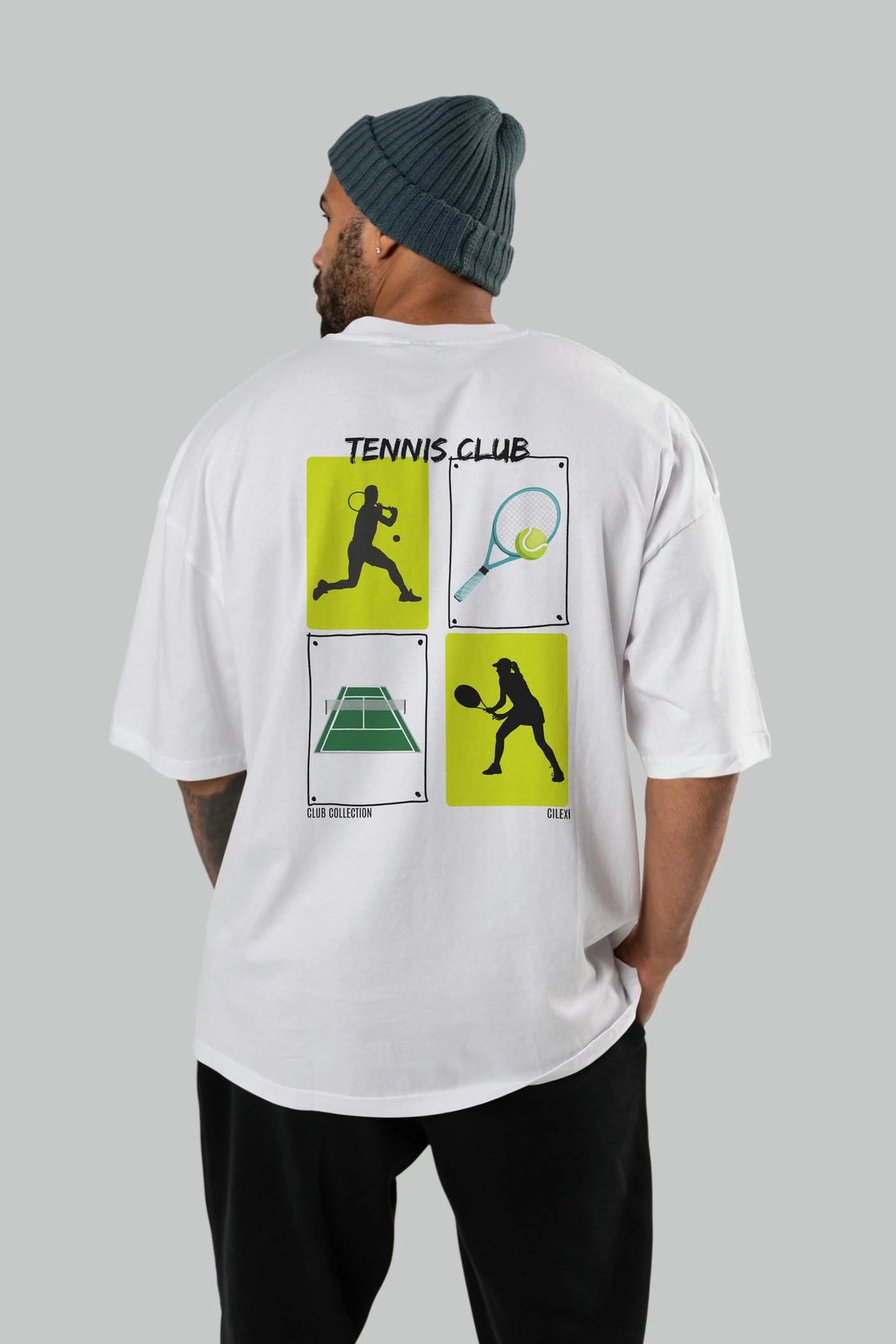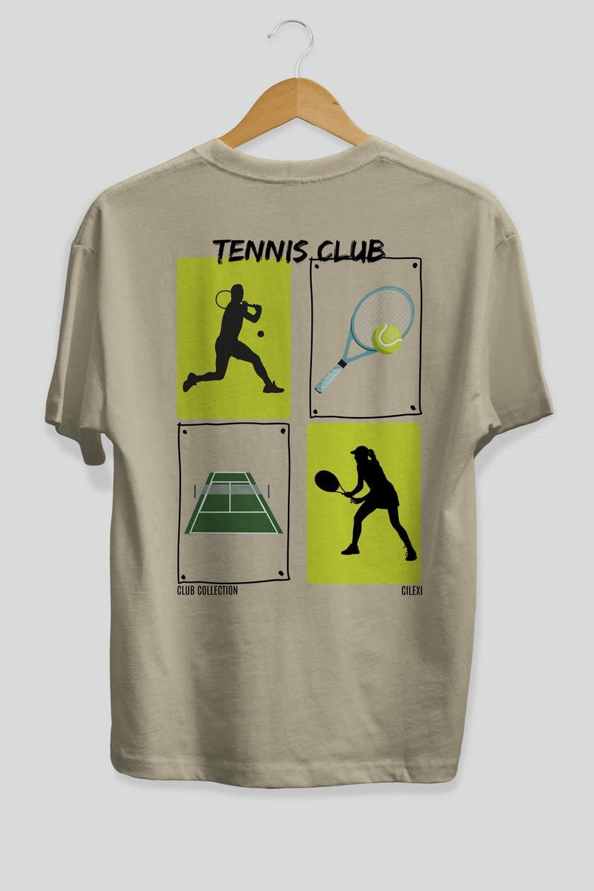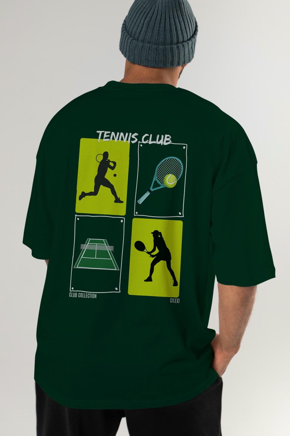 Tennis Club Arka Baskılı Oversize t-shirt Erkek Kadın %100 Pamuk Bisiklet Yaka tişort