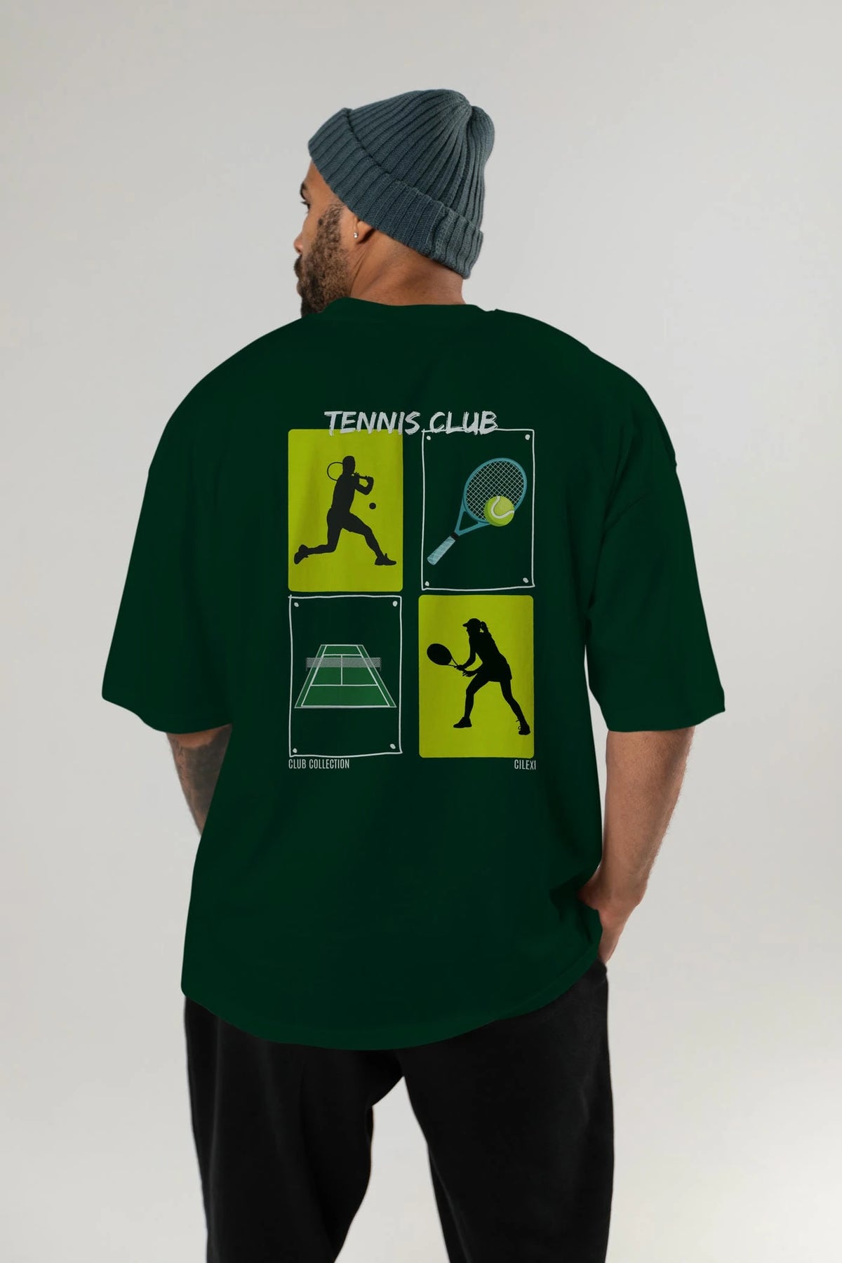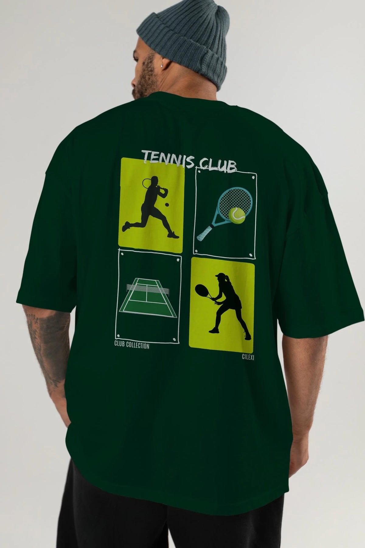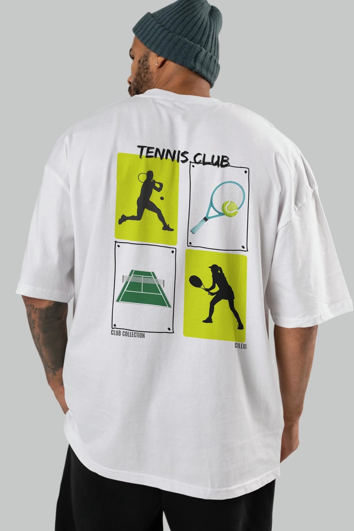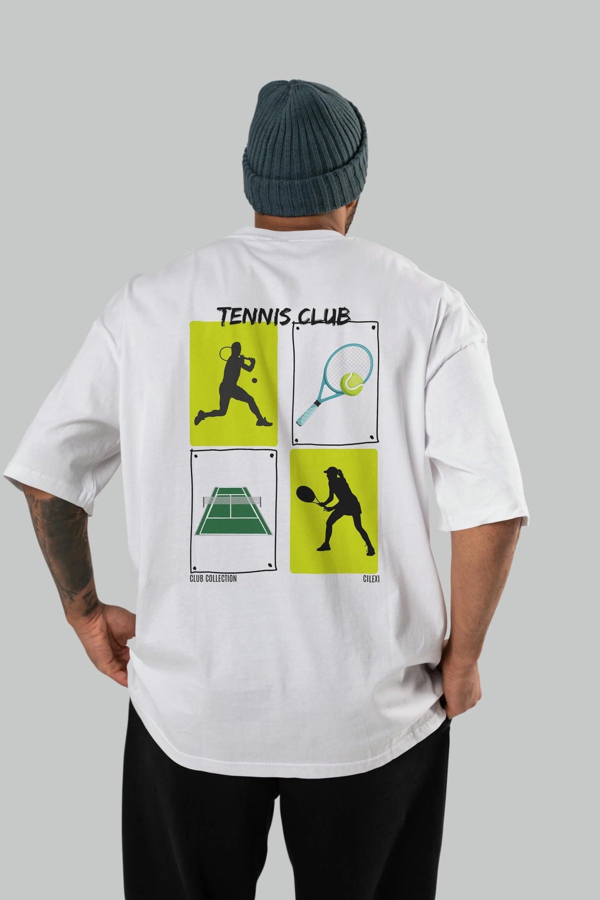 Tennis Club Arka Baskılı Oversize t-shirt Erkek Kadın %100 Pamuk Bisiklet Yaka tişort