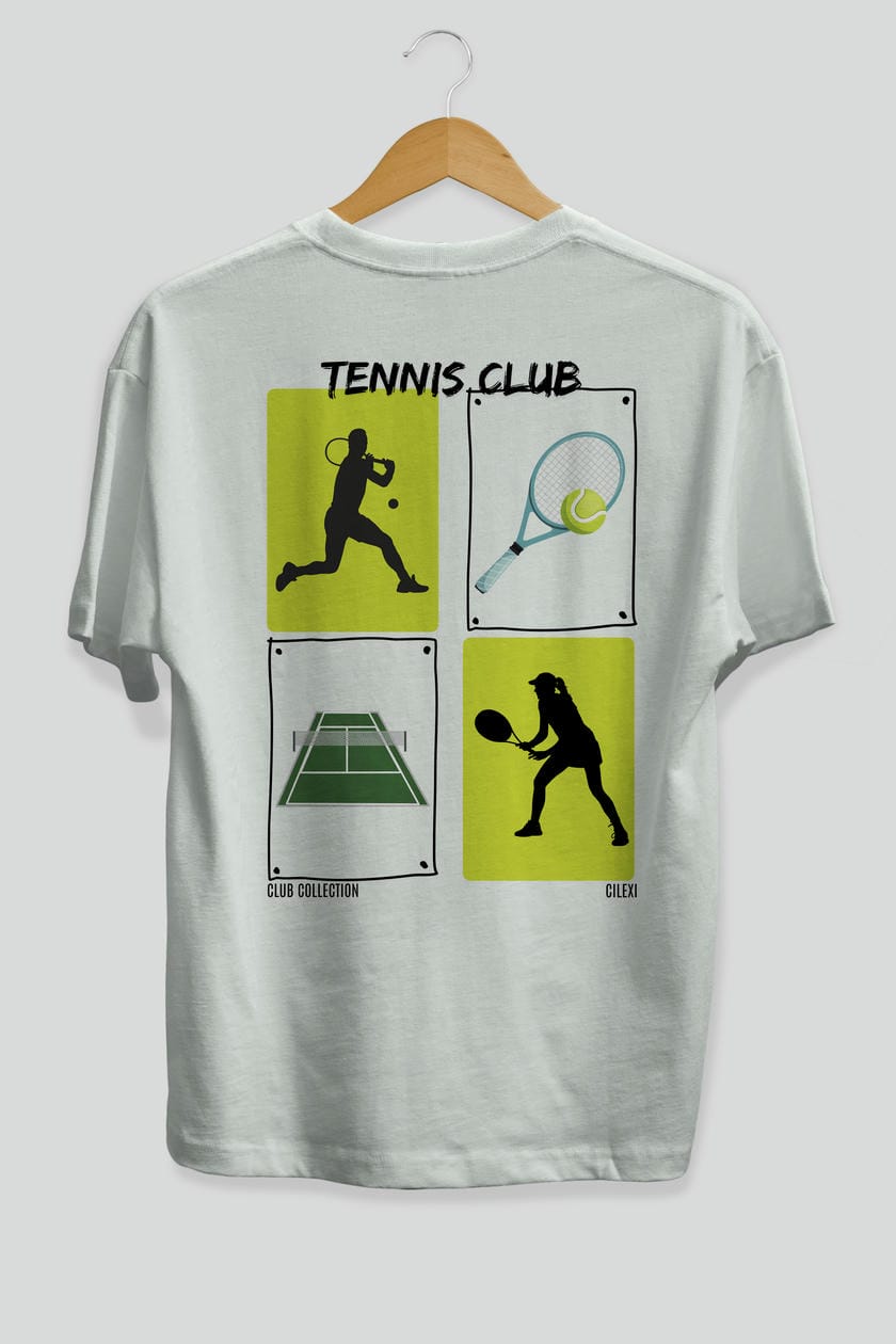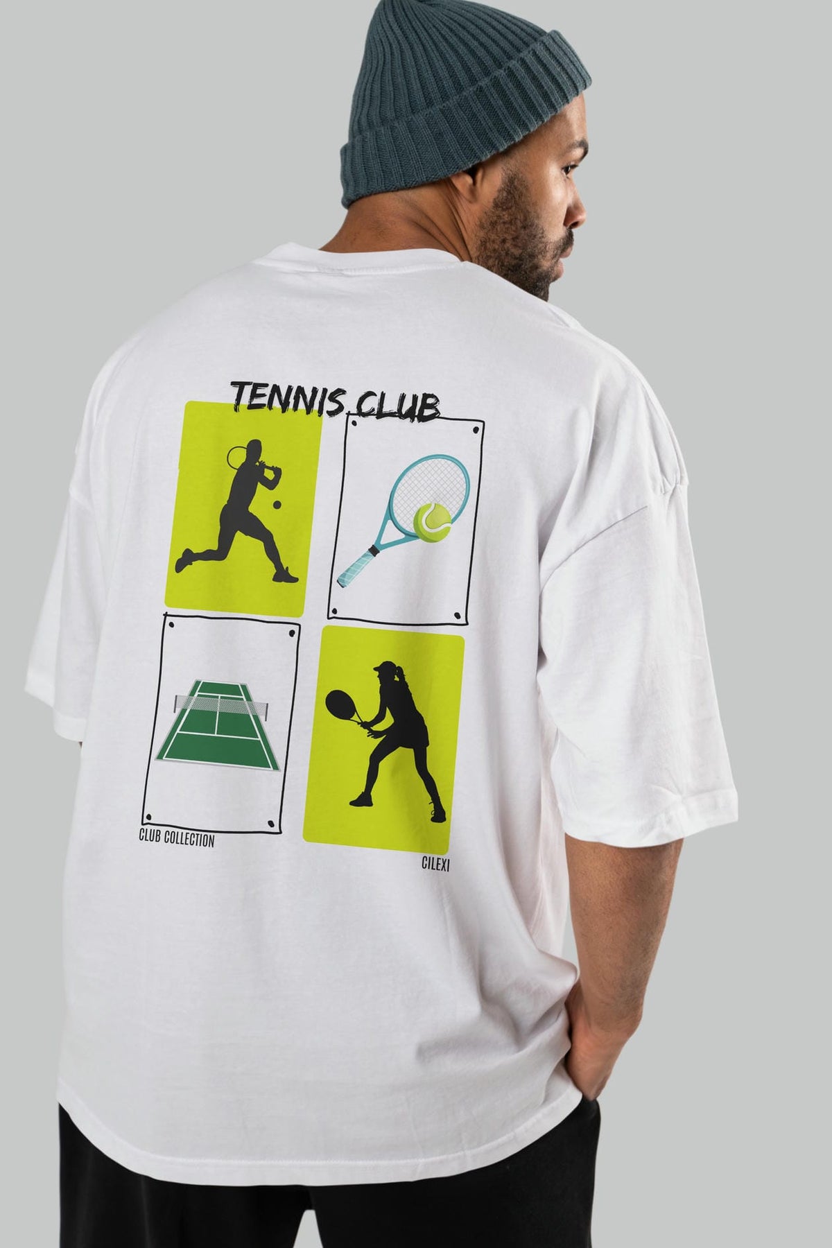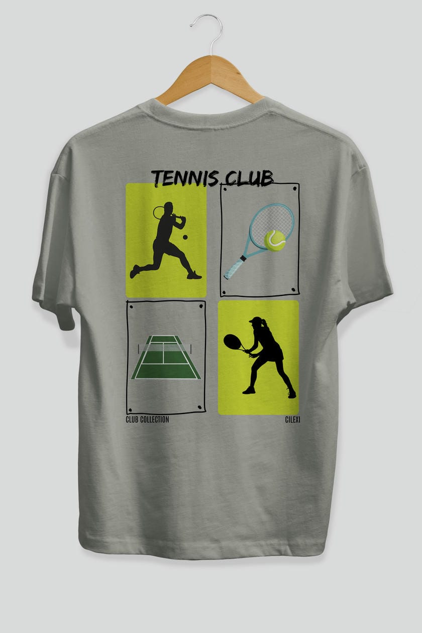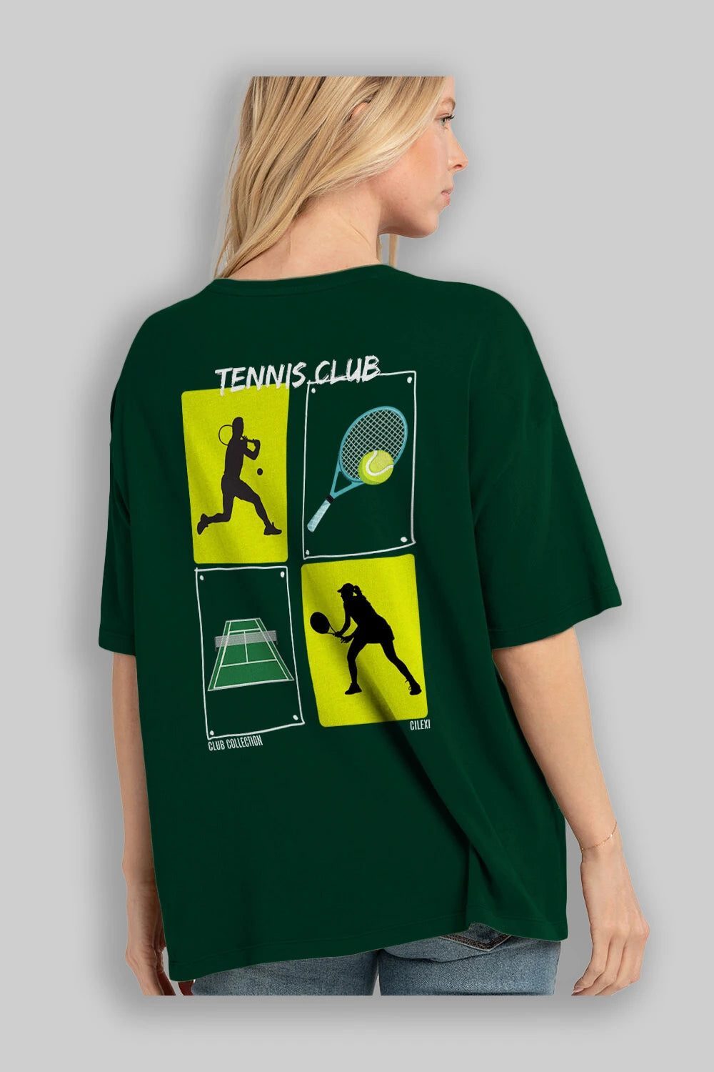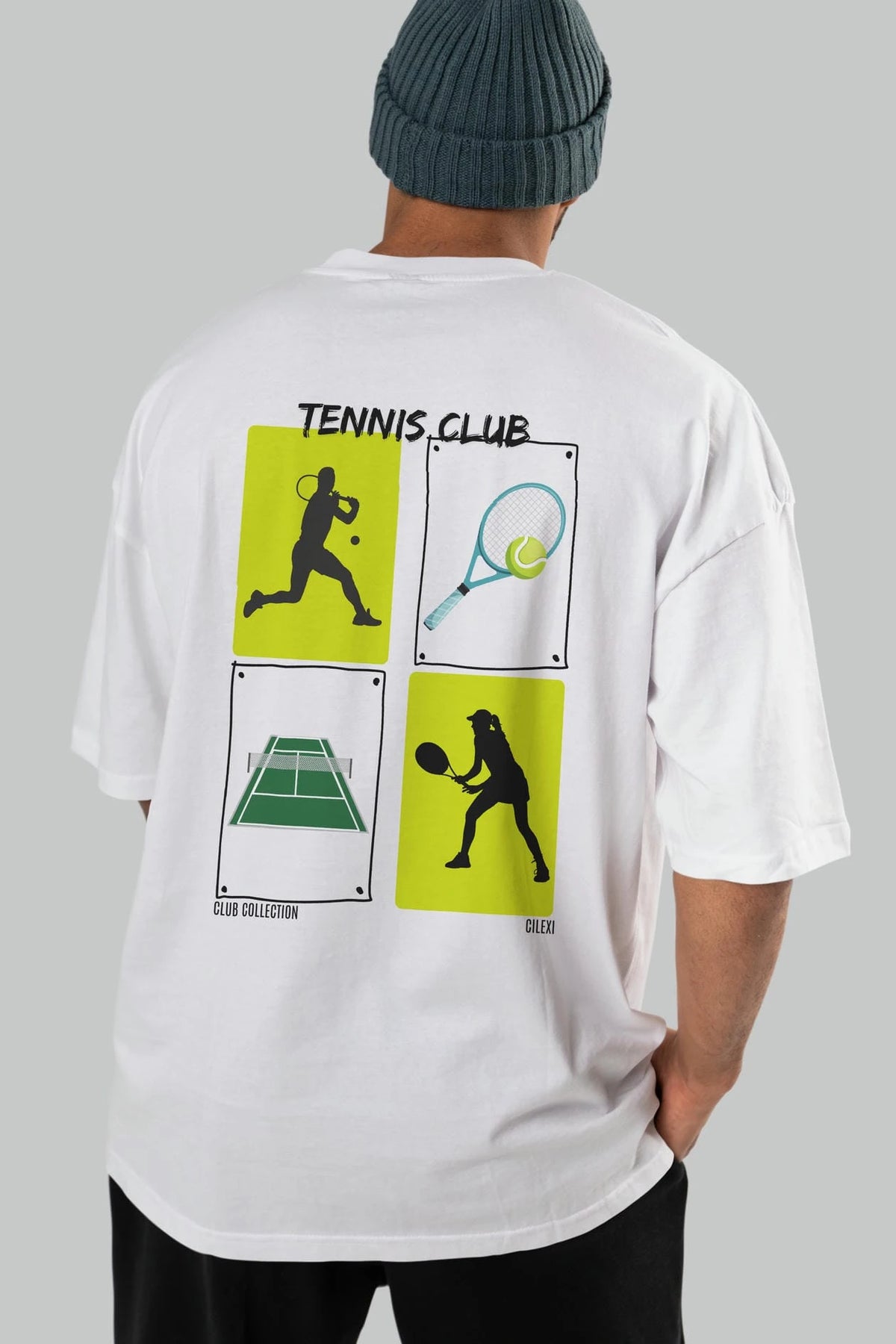 Tennis Club Arka Baskılı Oversize t-shirt Erkek Kadın %100 Pamuk Bisiklet Yaka tişort