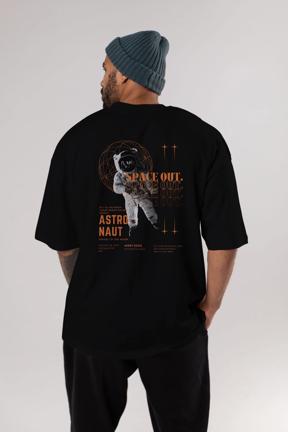 Astronaut Space Out Yazılı Arka Baskılı Oversize t-shirt Erkek Kadın Unisex