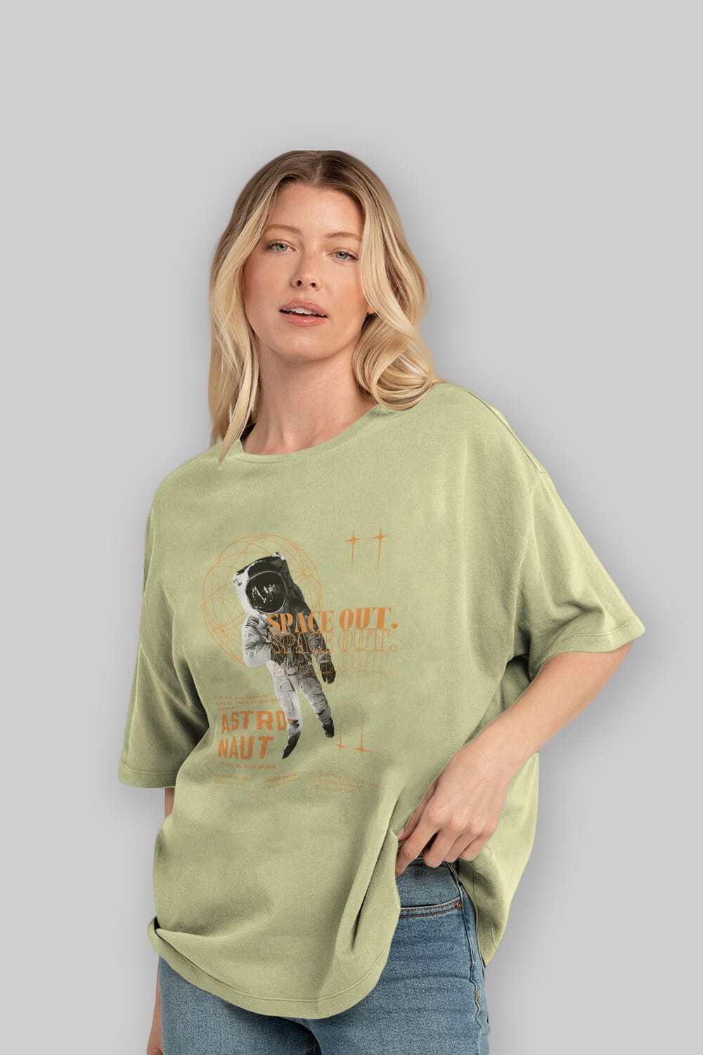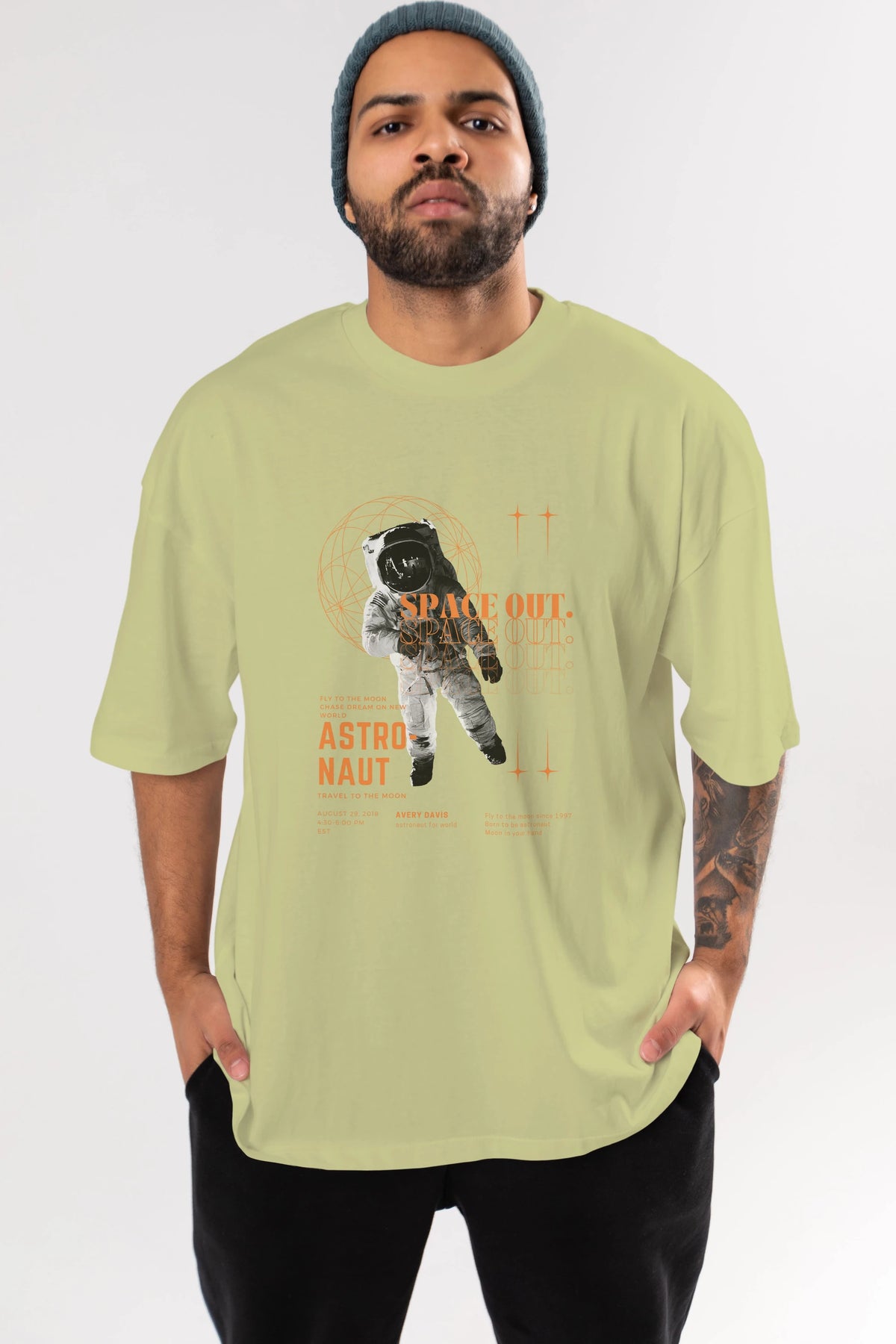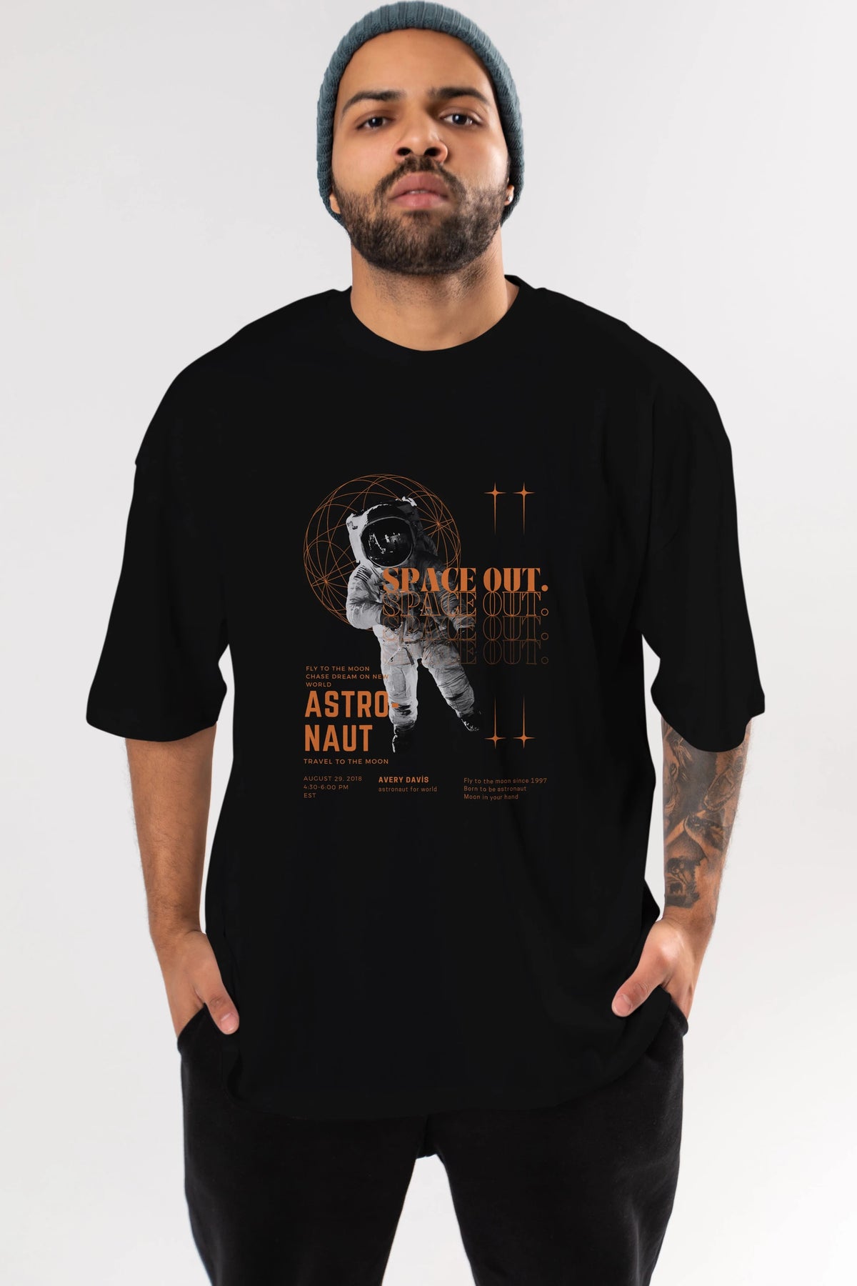 Astronaut Space Out Yazılı Ön Baskılı Oversize t-shirt Erkek Kadın Unisex