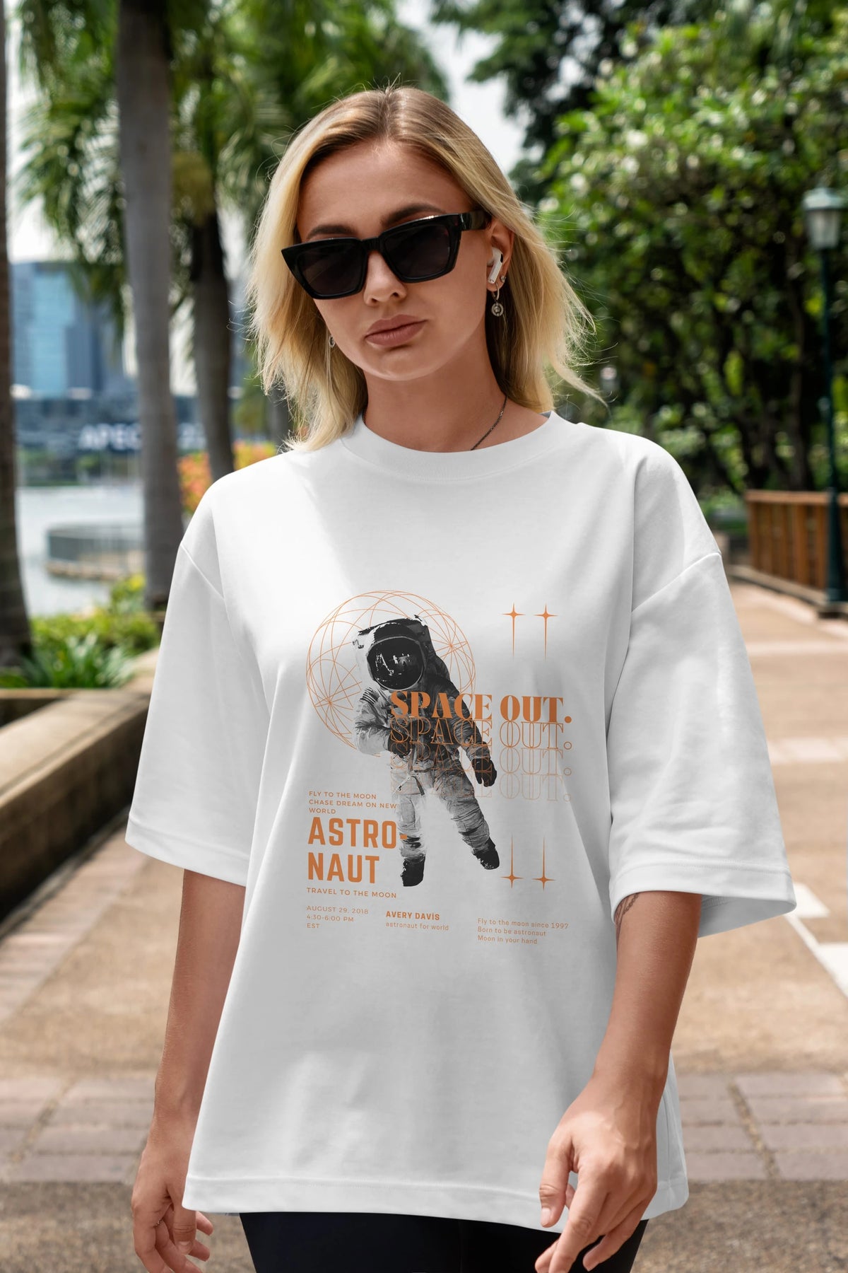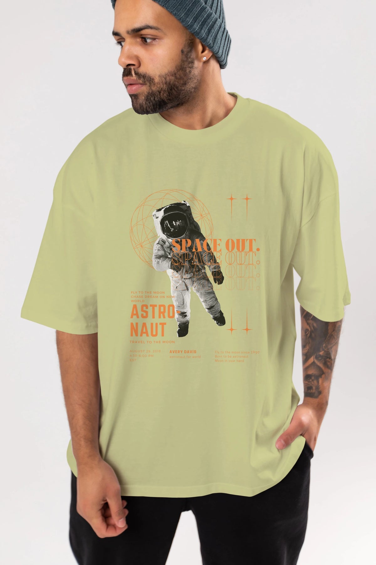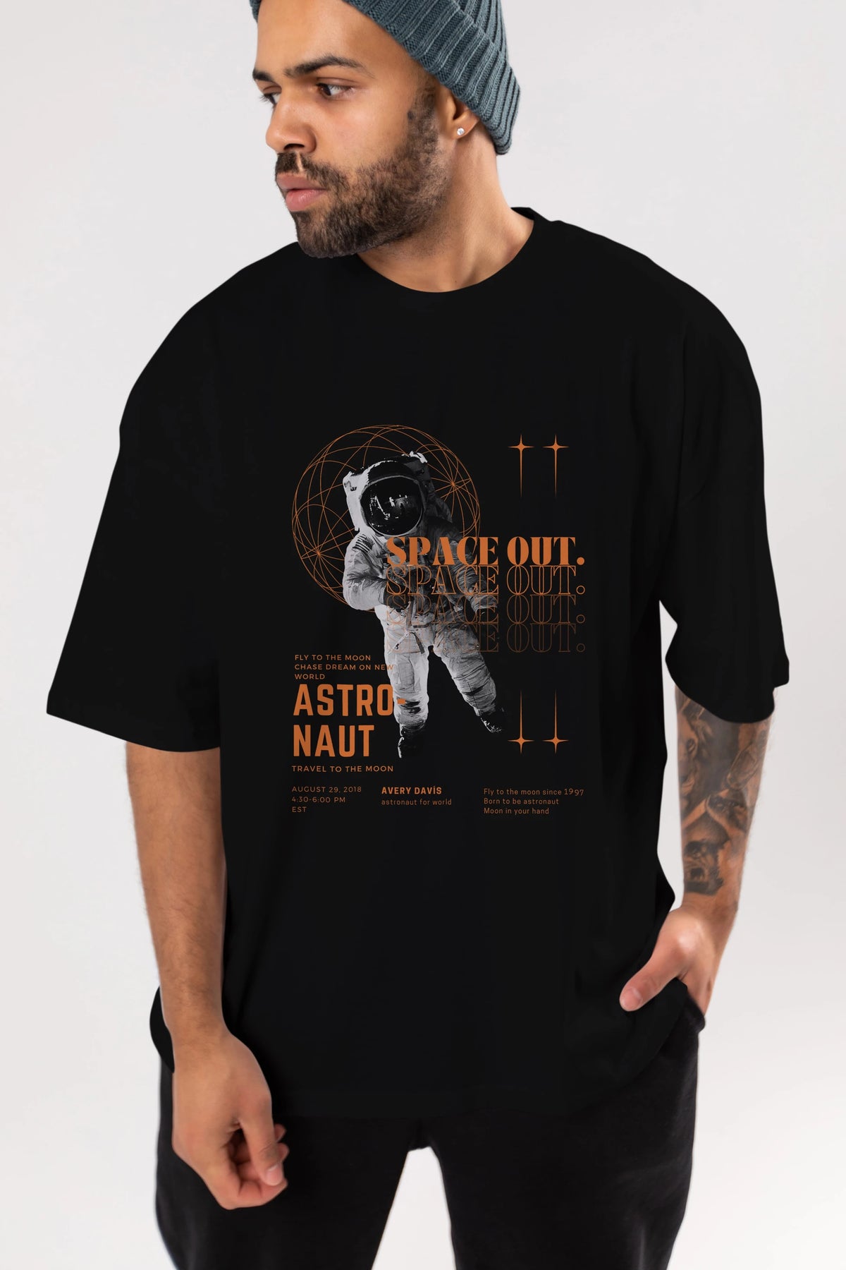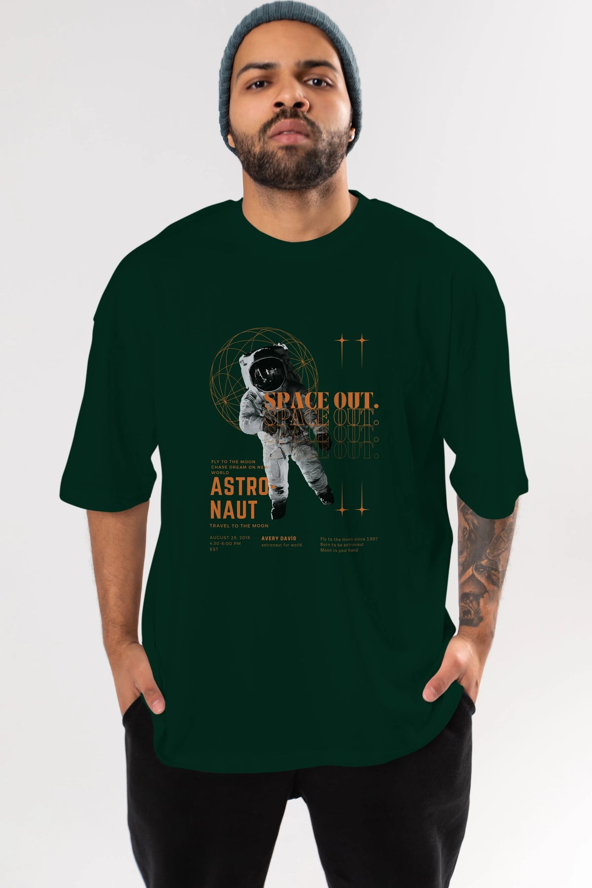 Astronaut Space Out Yazılı Ön Baskılı Oversize t-shirt Erkek Kadın Unisex