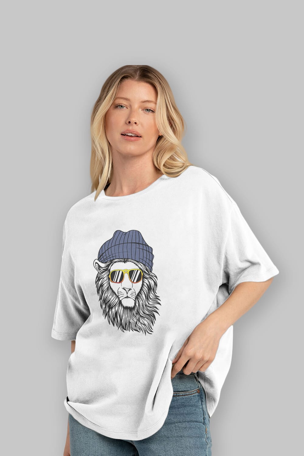 Hem erkekler hem de kadınlar için uygun, taze, modern bir baskıya sahip baskılı oversize t-shirt.