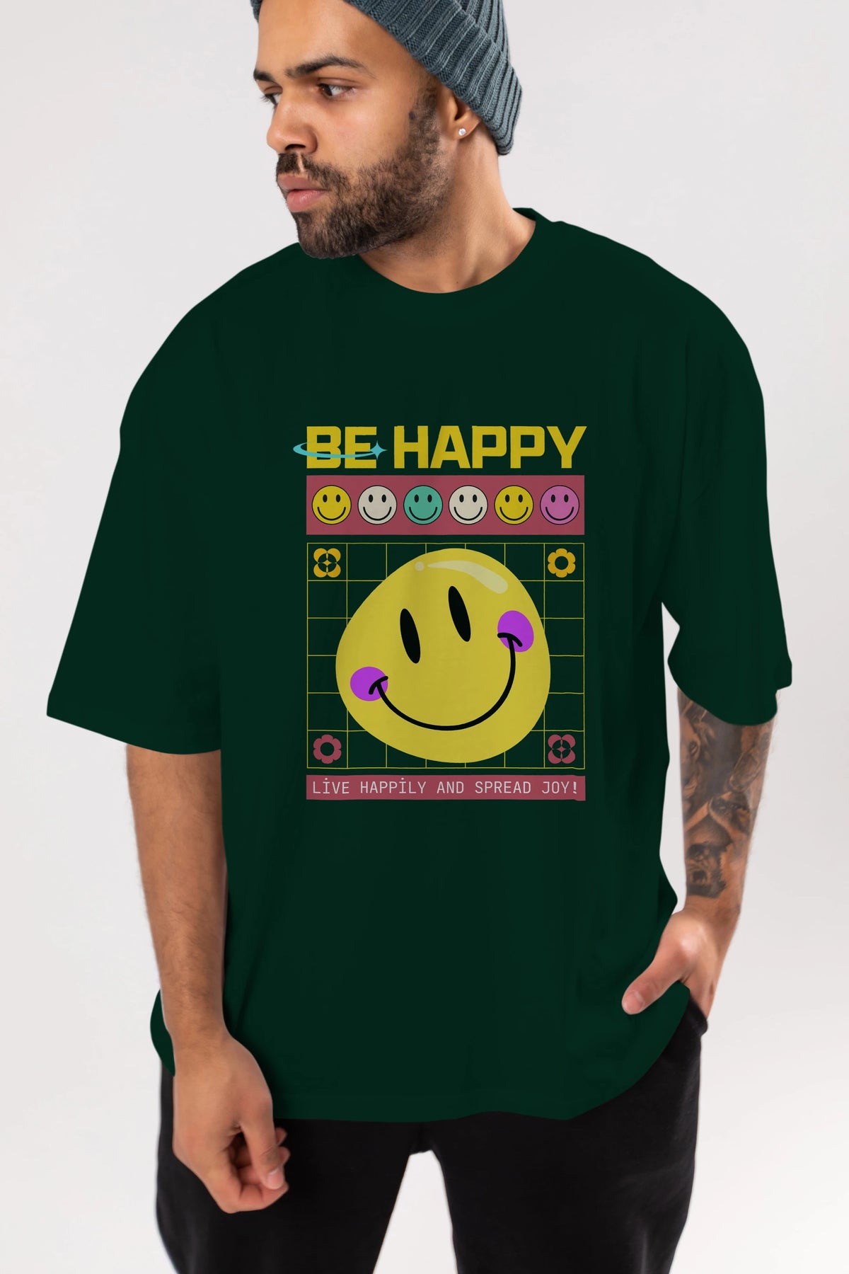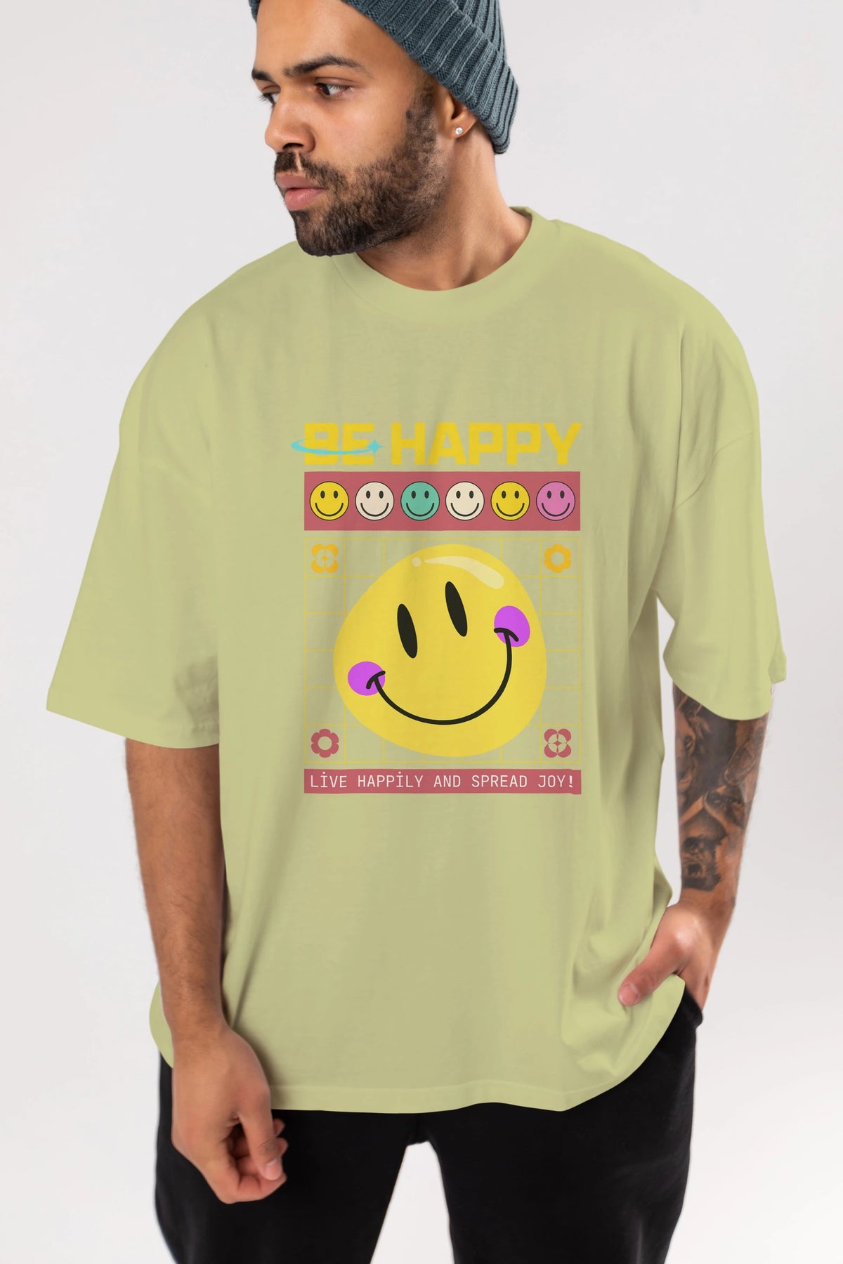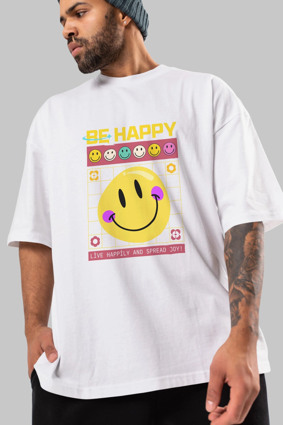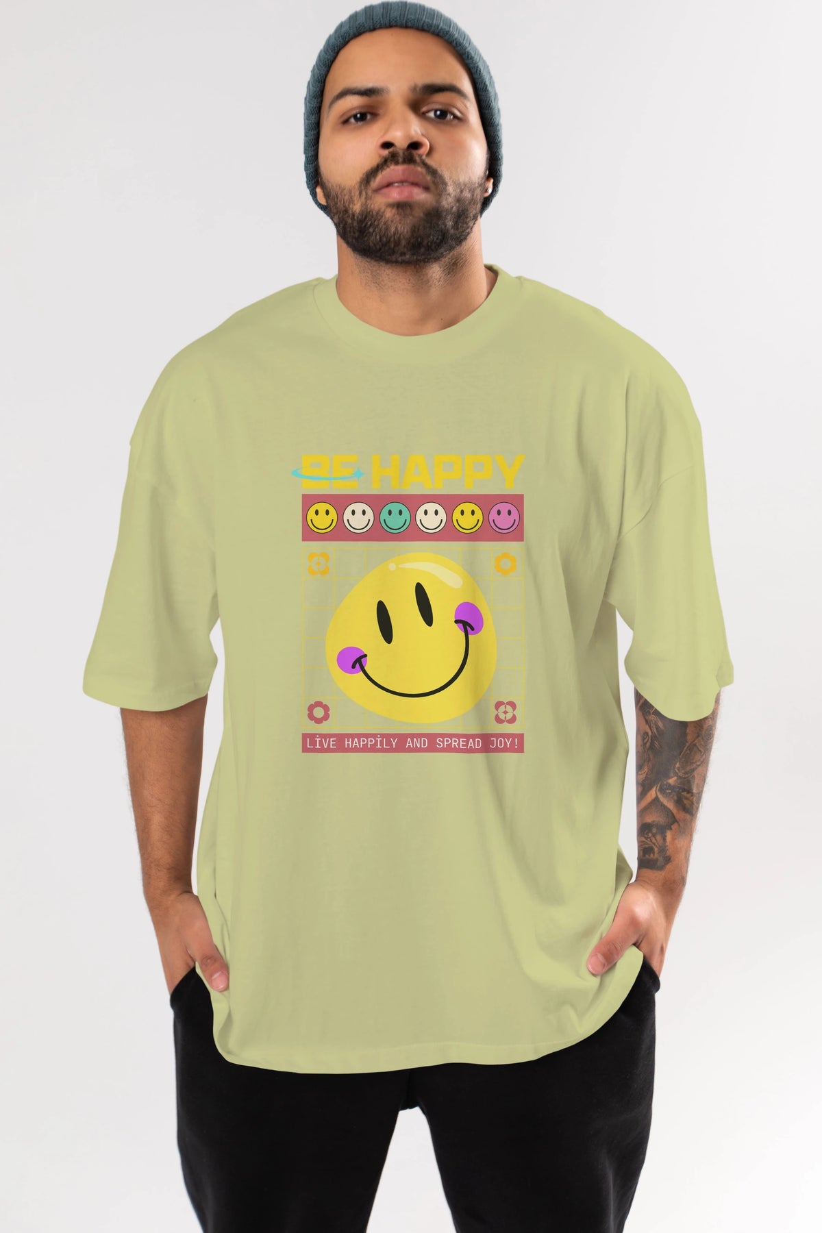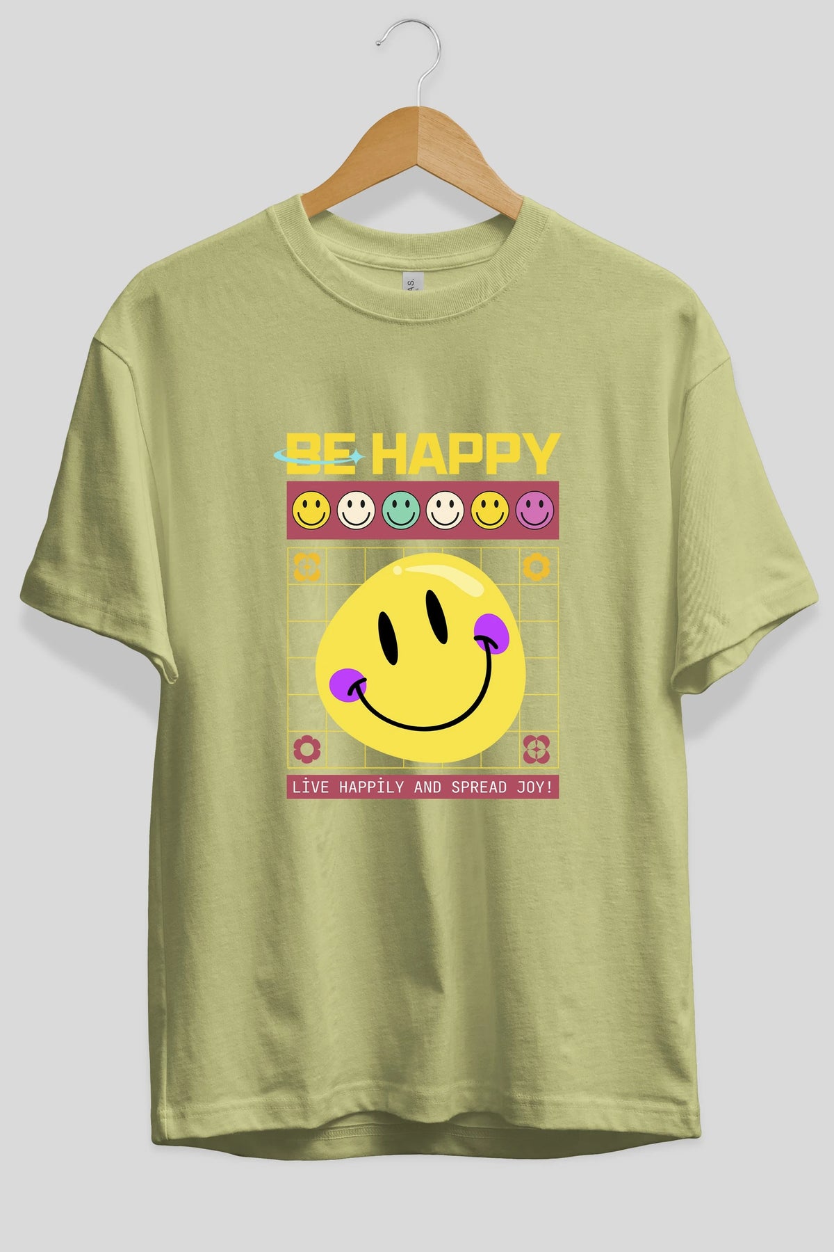 Be Happy Yazılı Ön Baskılı Oversize t-shirt Erkek Kadın Unisex