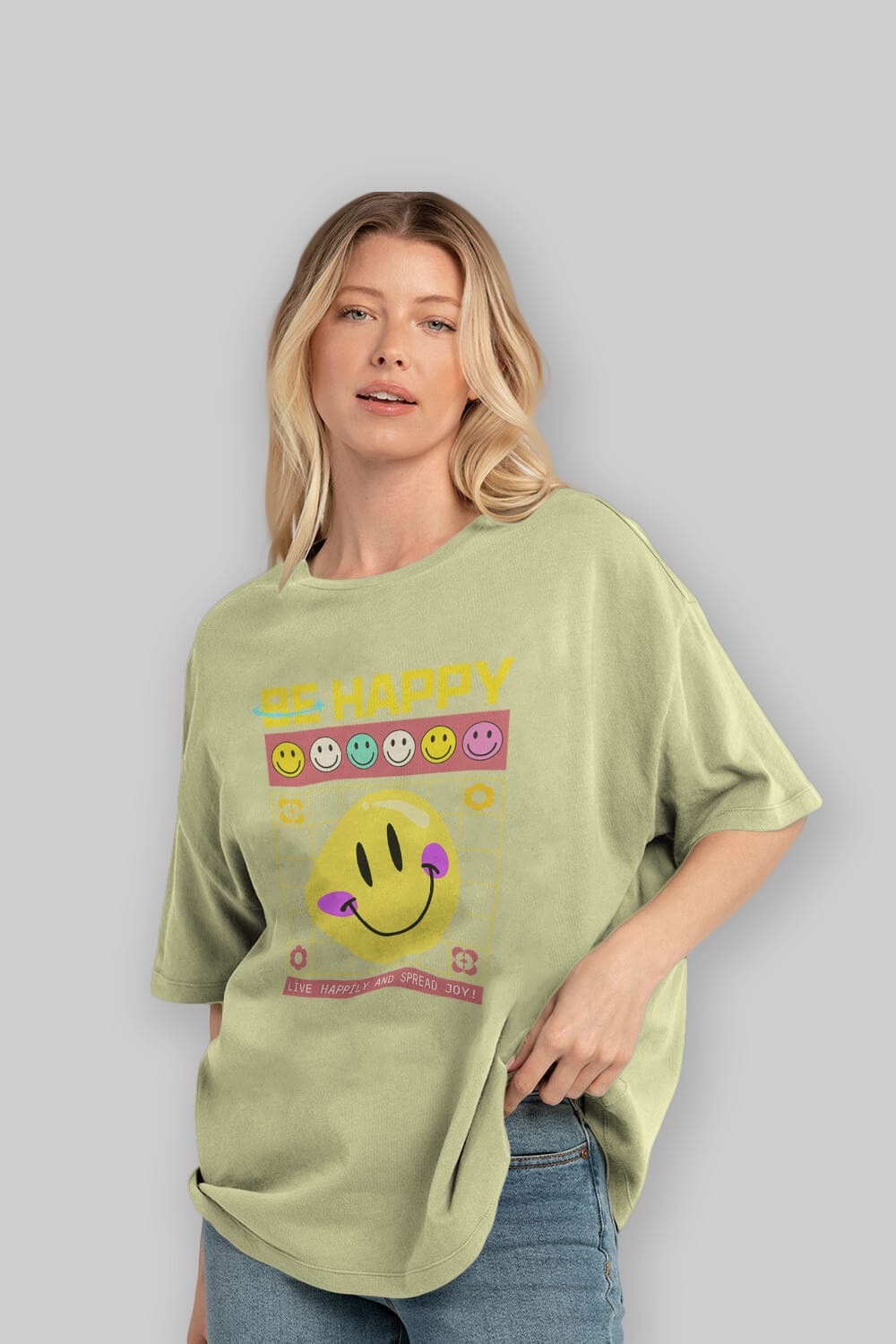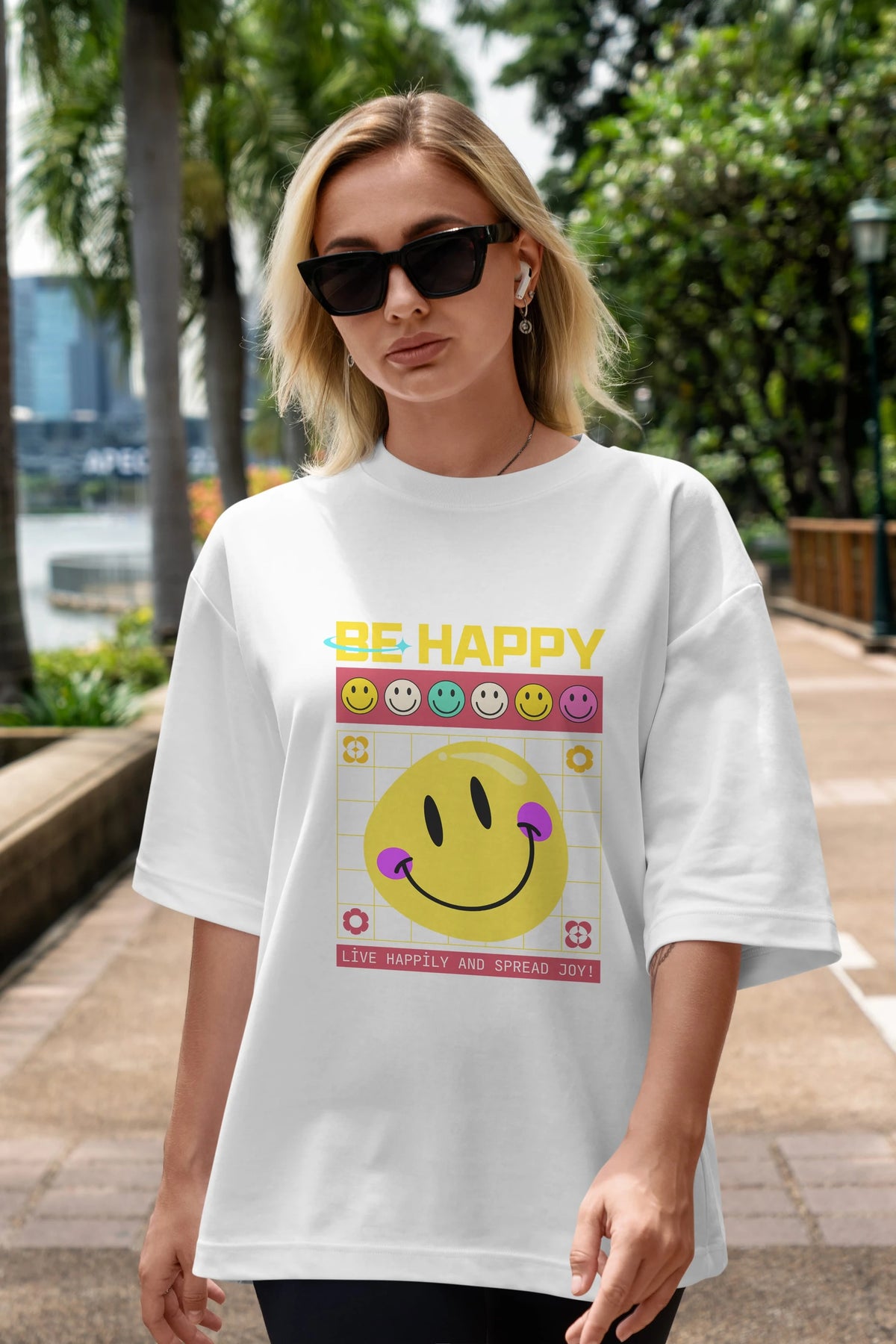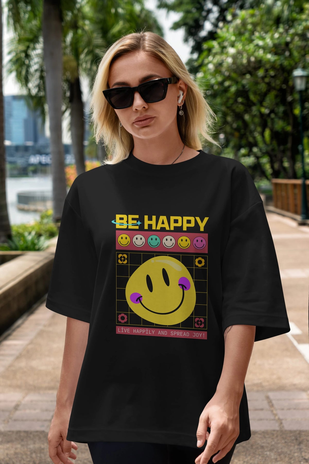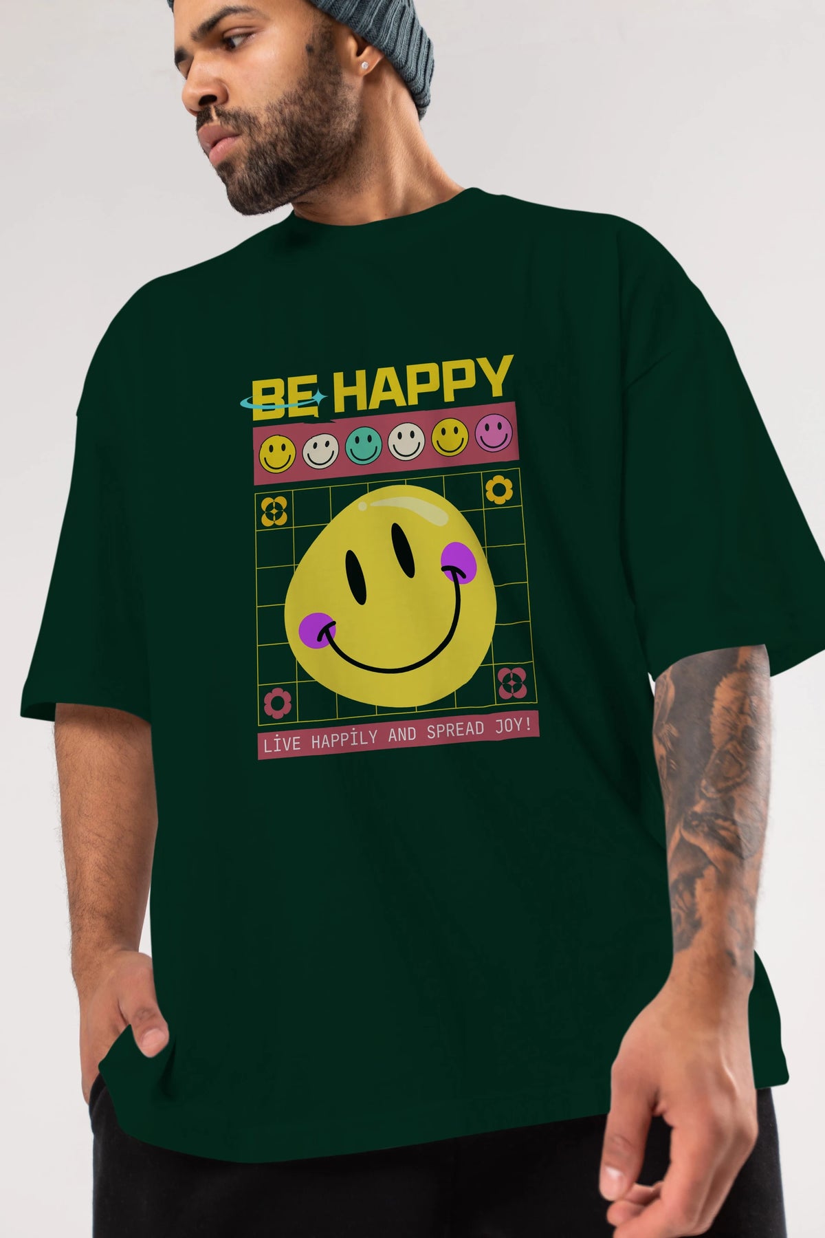 Be Happy Yazılı Ön Baskılı Oversize t-shirt Erkek Kadın Unisex