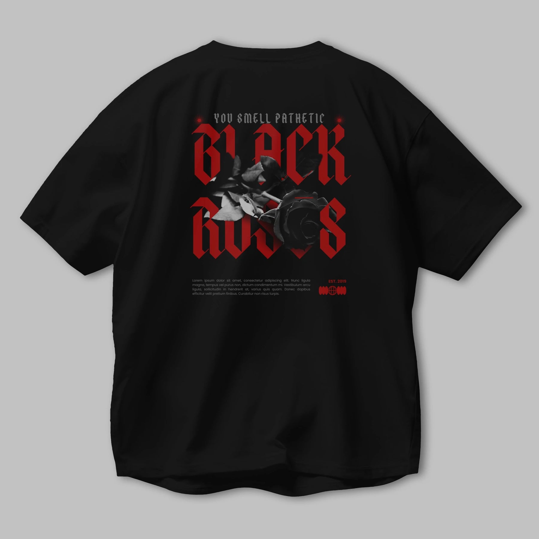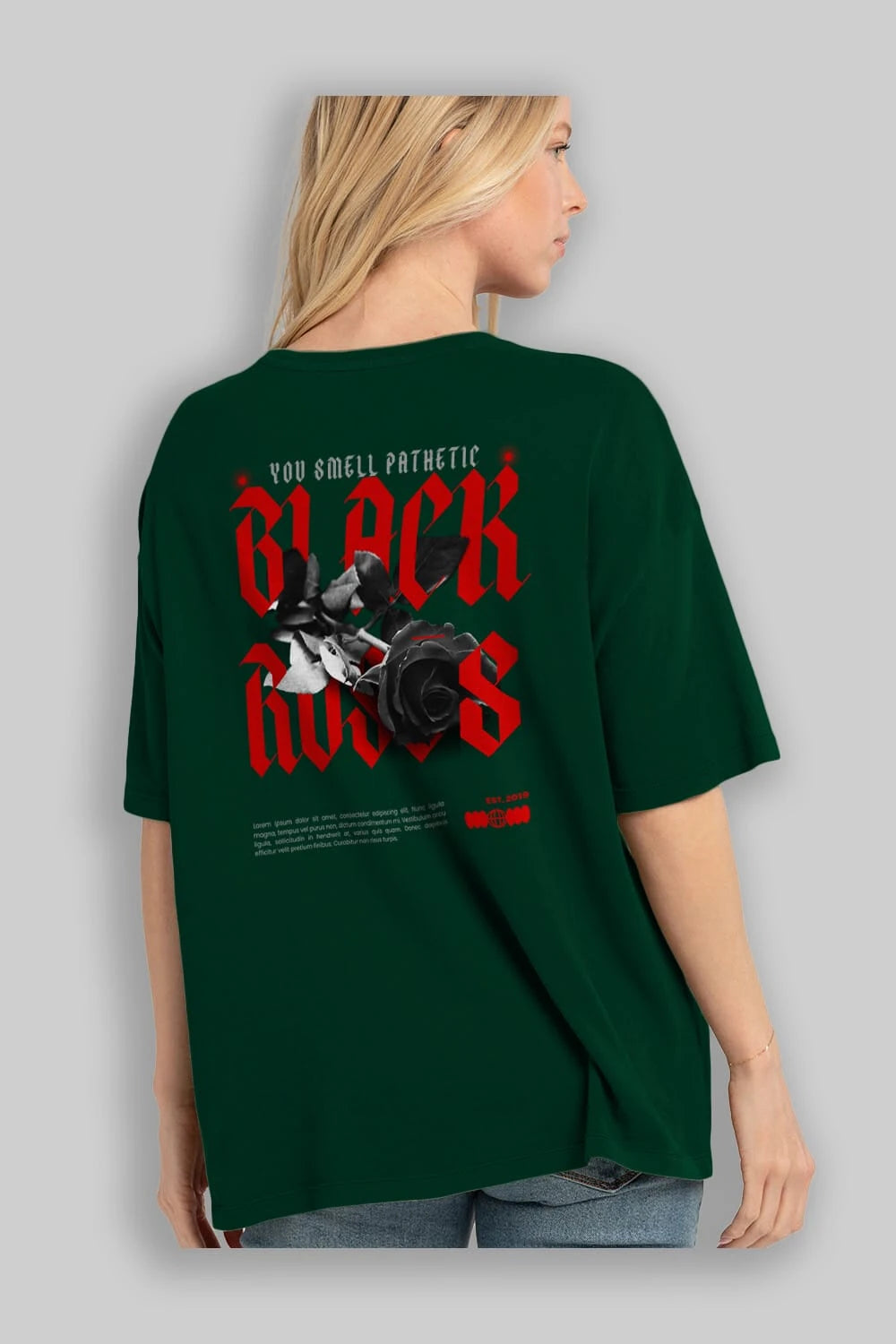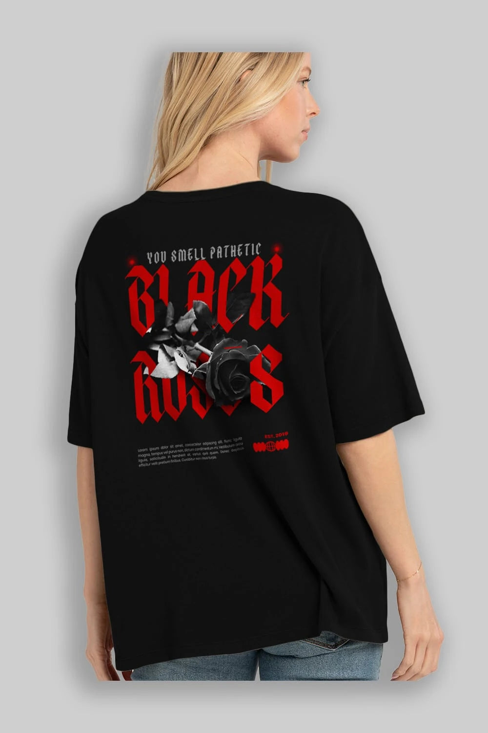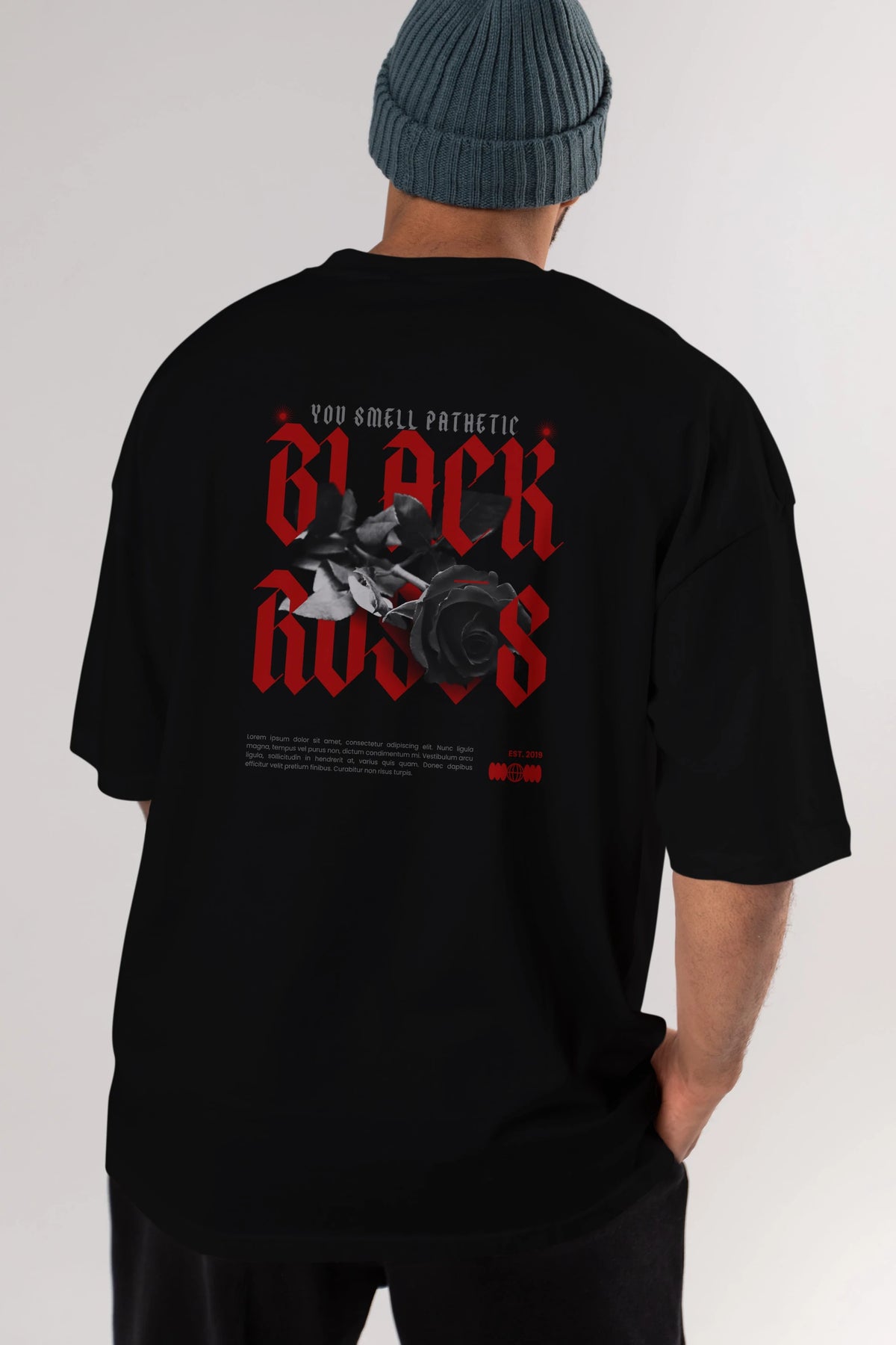 Black Roses Arka Baskılı Oversize t-shirt Erkek Kadın Unisex