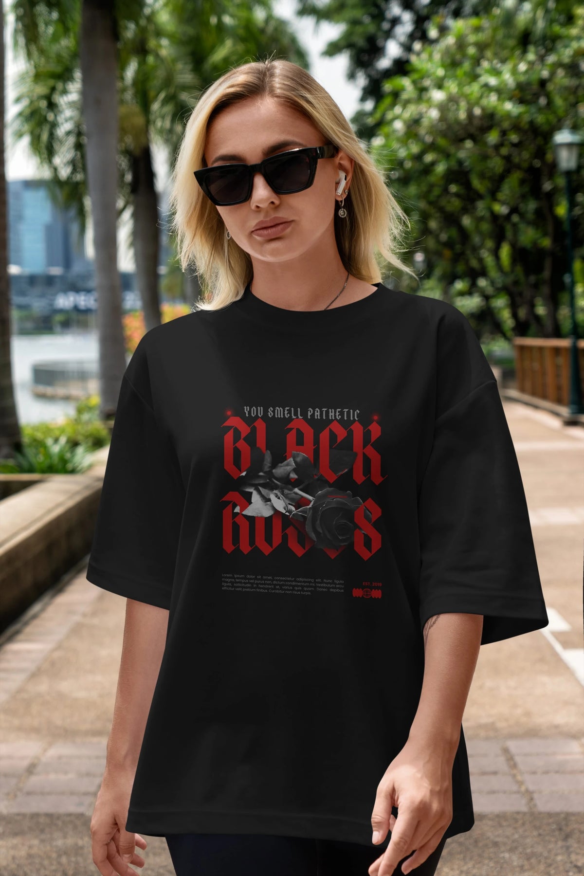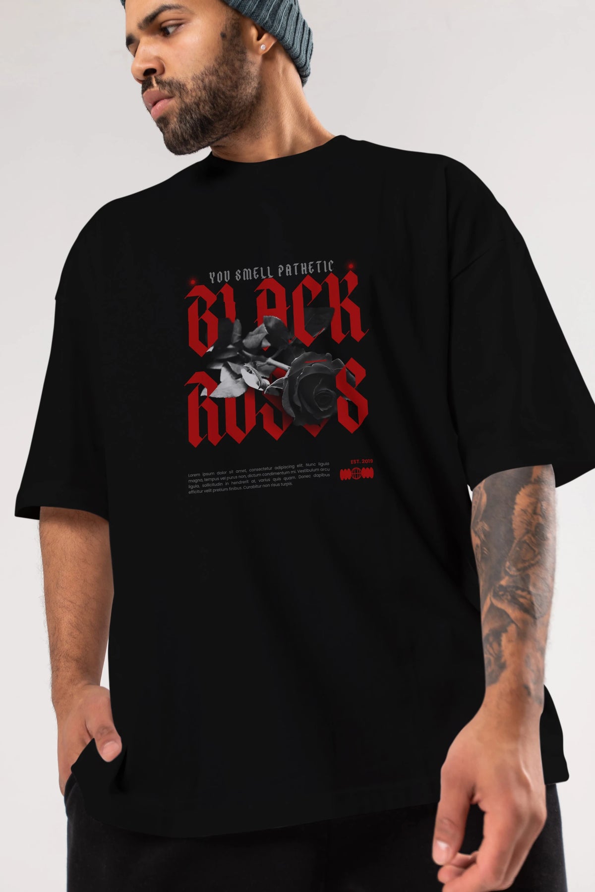 Black Roses Ön Baskılı Oversize t-shirt Erkek Kadın Unisex