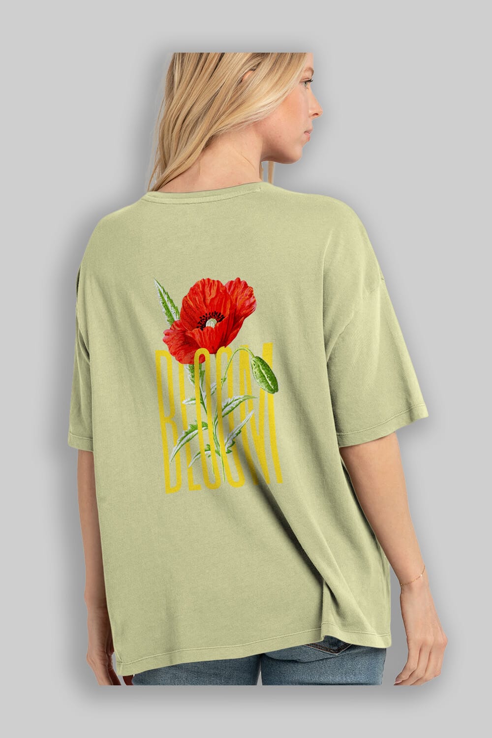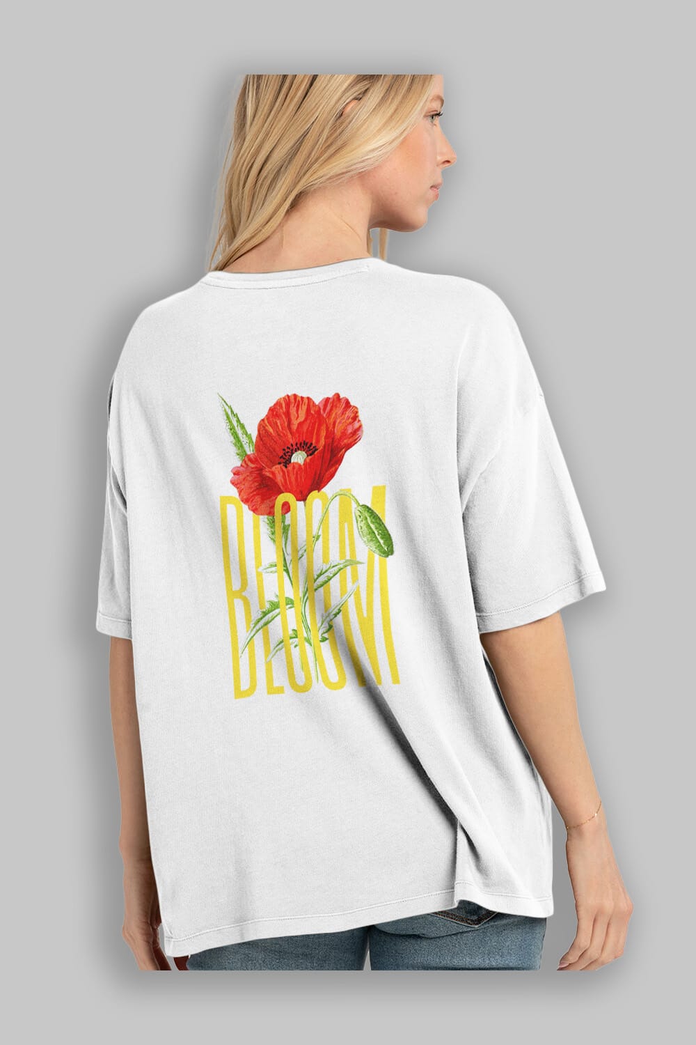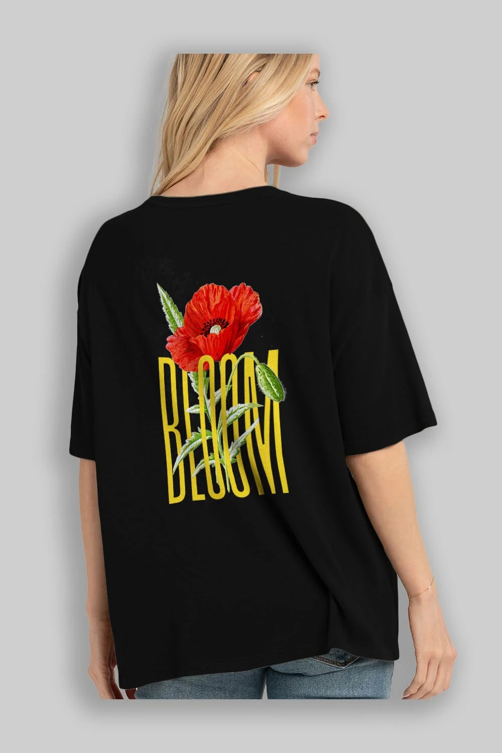 Bloom Flower Arka Baskılı Oversize t-shirt Erkek Kadın Unisex