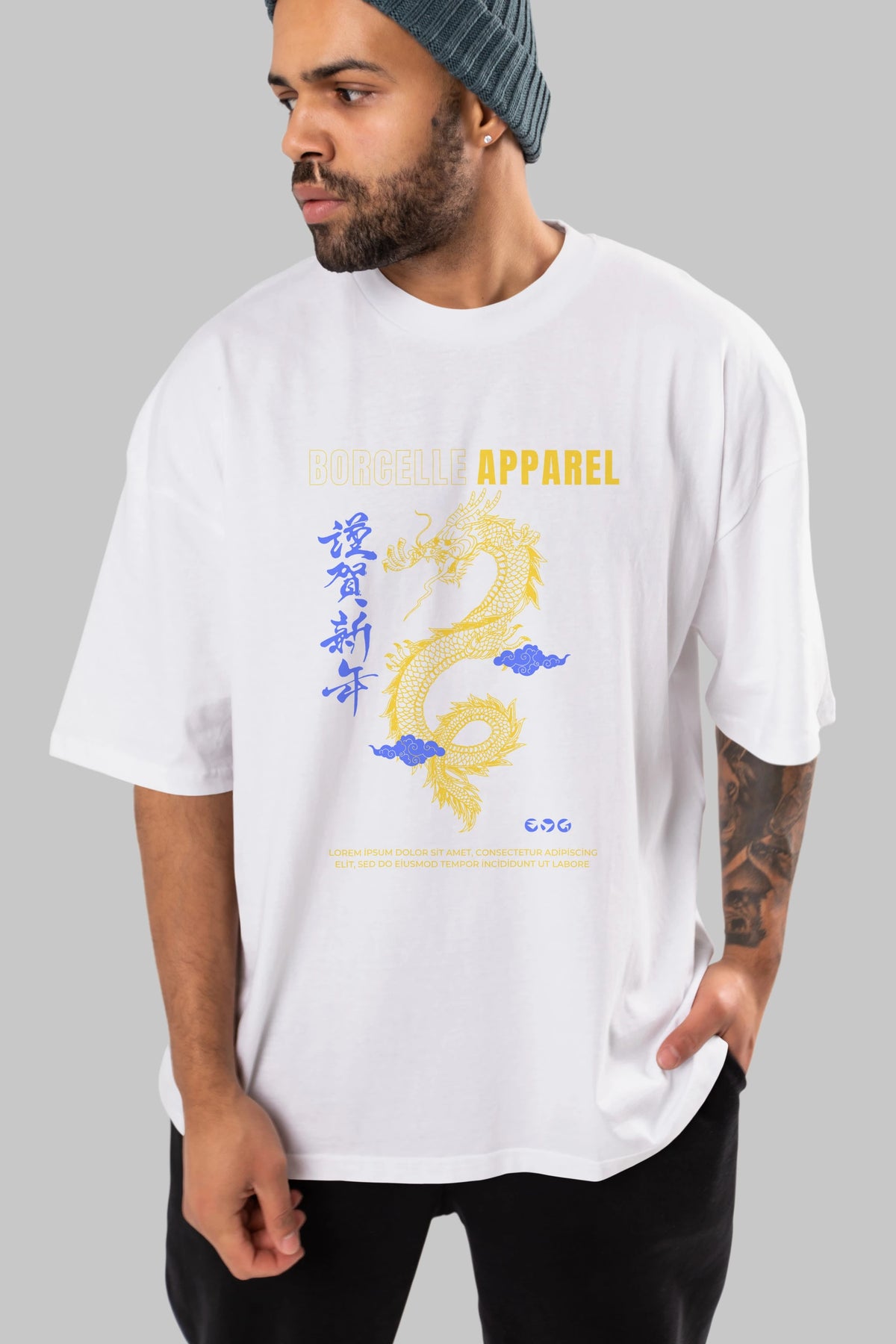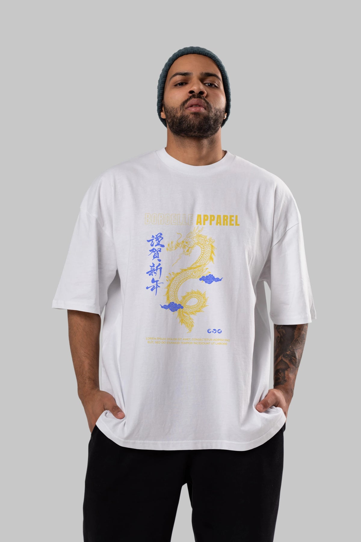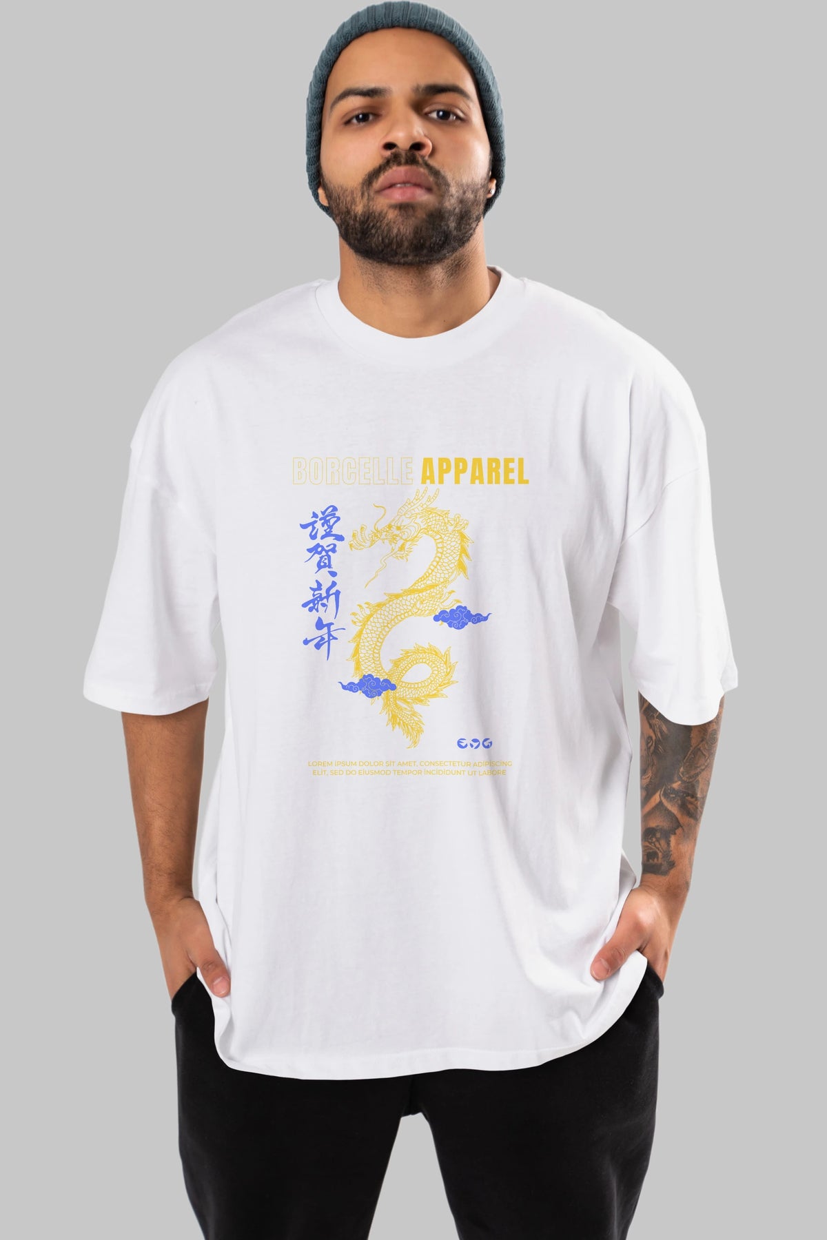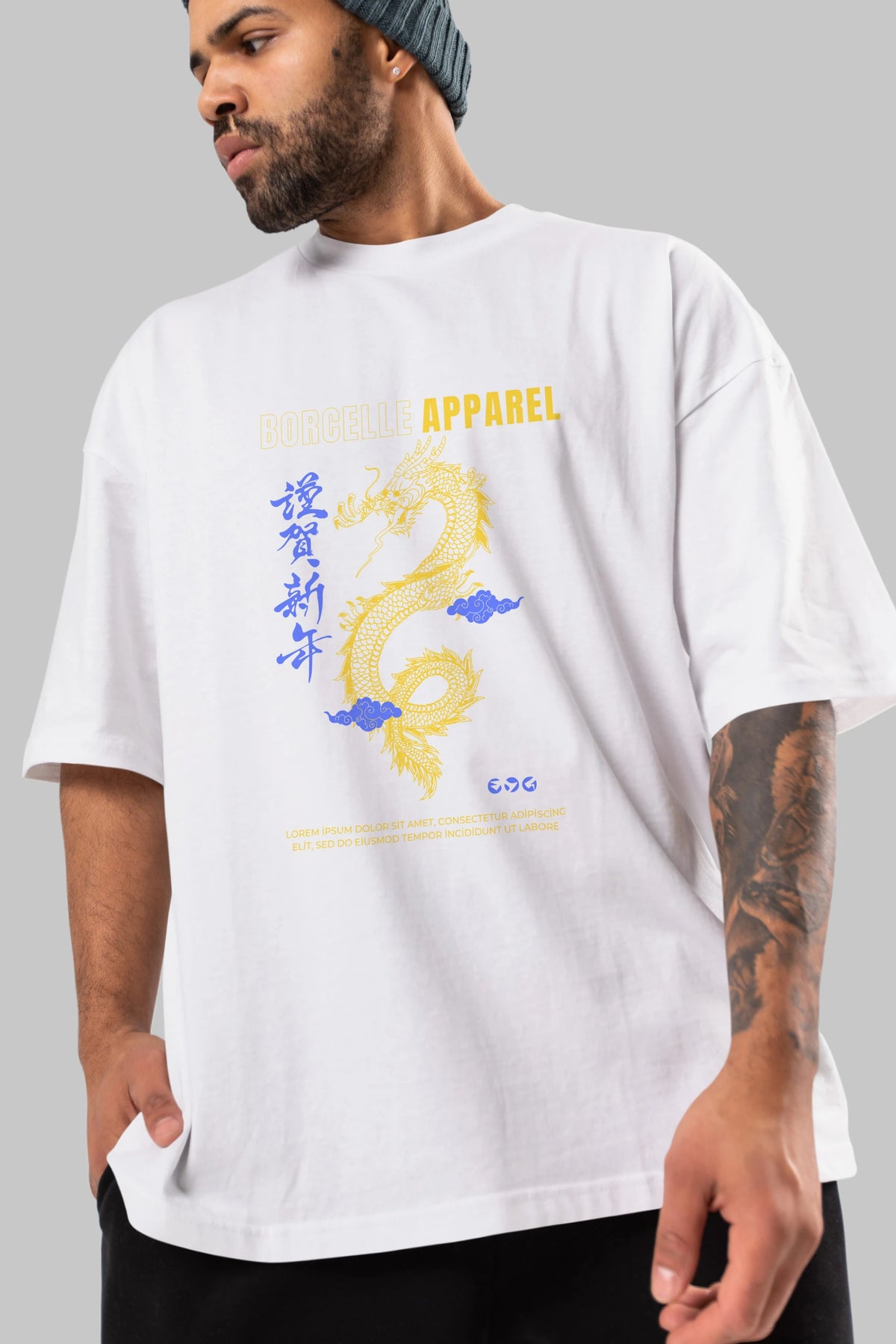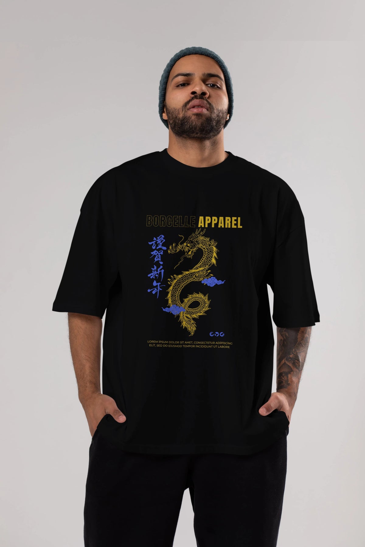 Borcelle Apparel Yazılı Ön Baskılı Oversize t-shirt Erkek Kadın Unisex