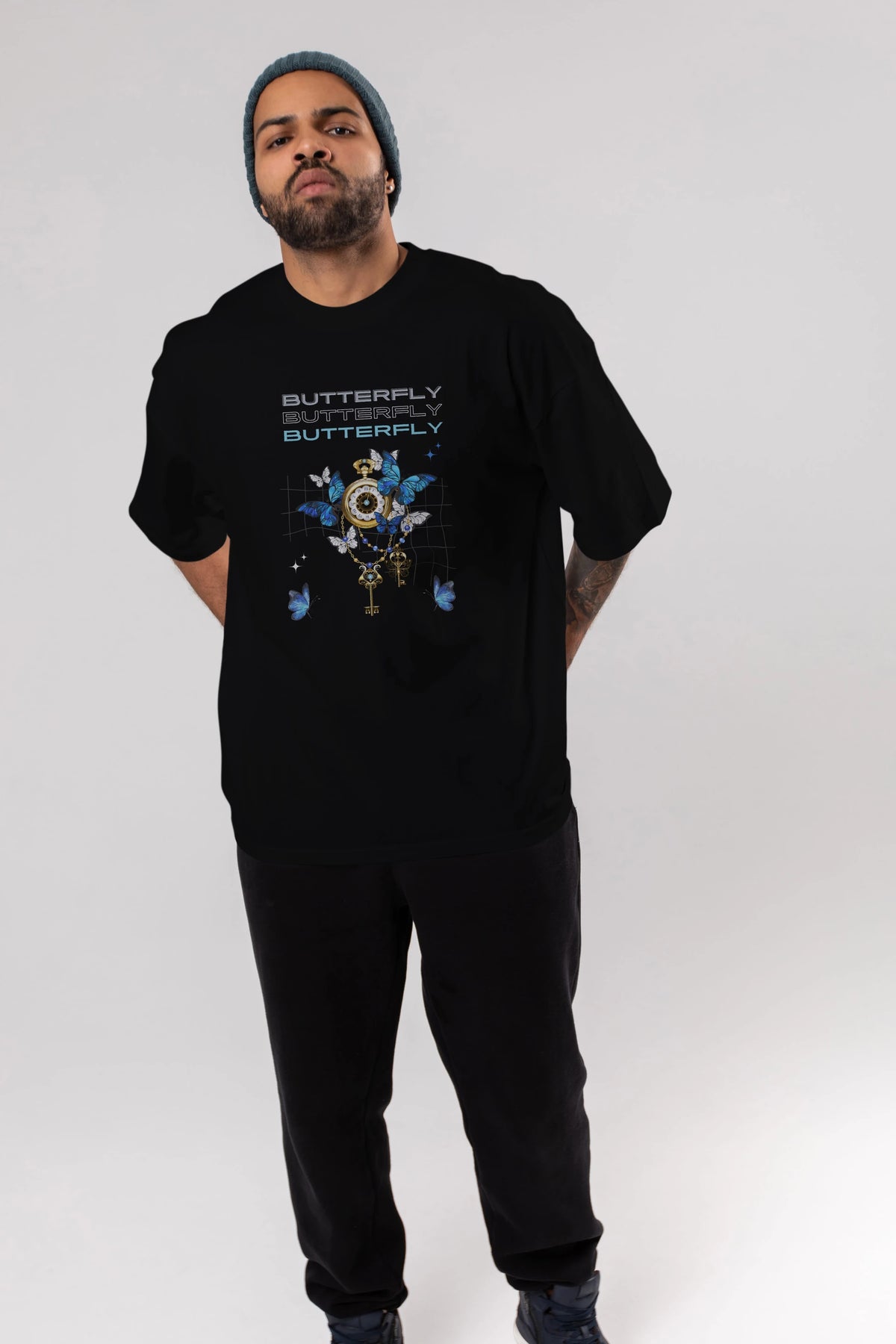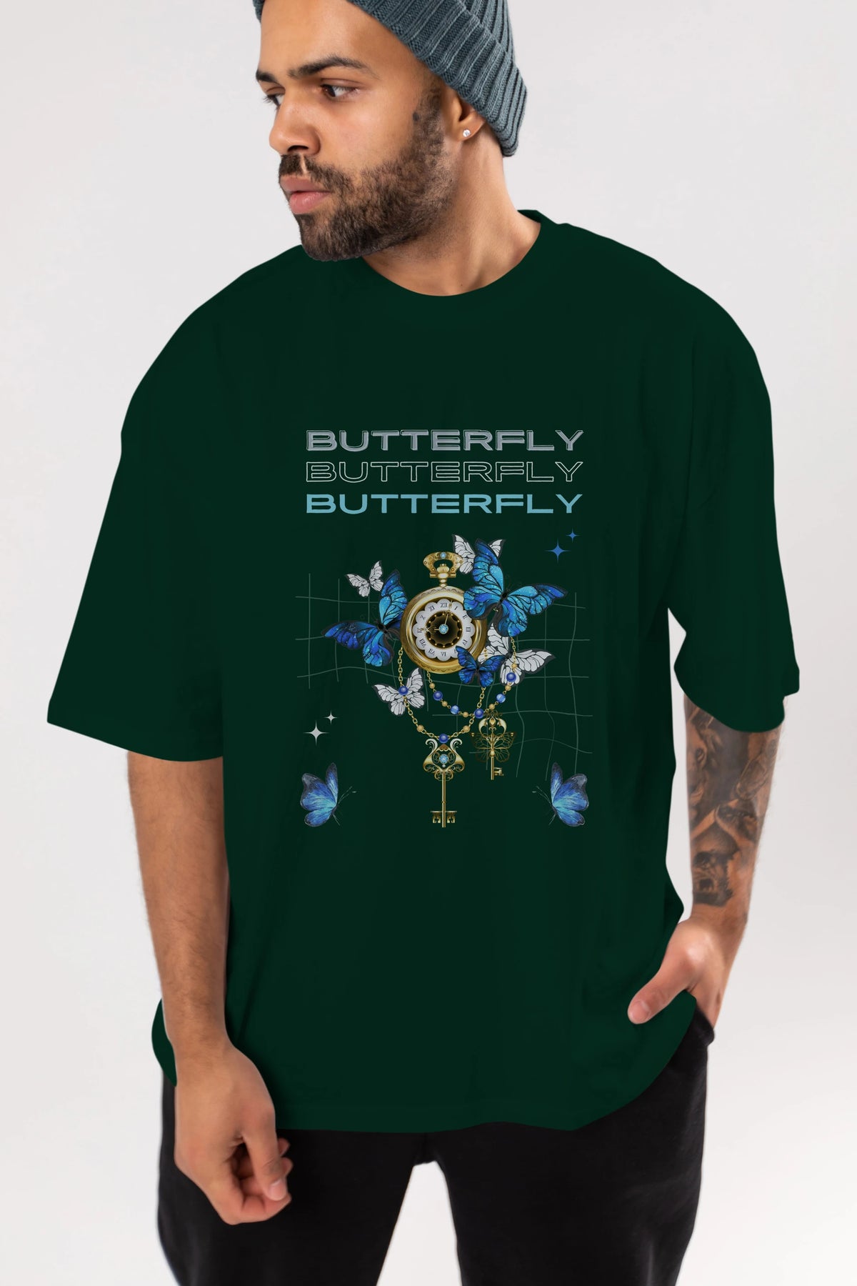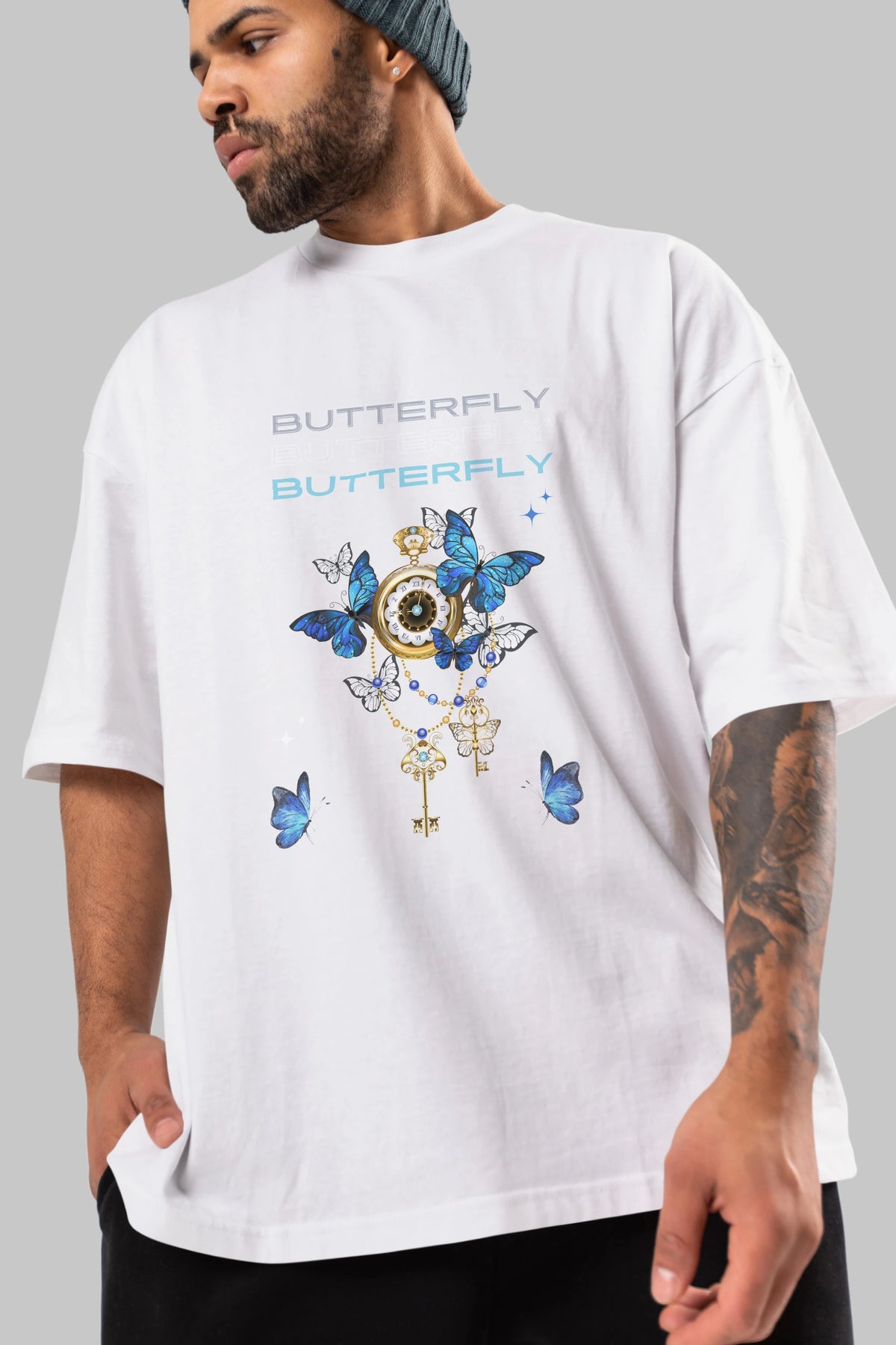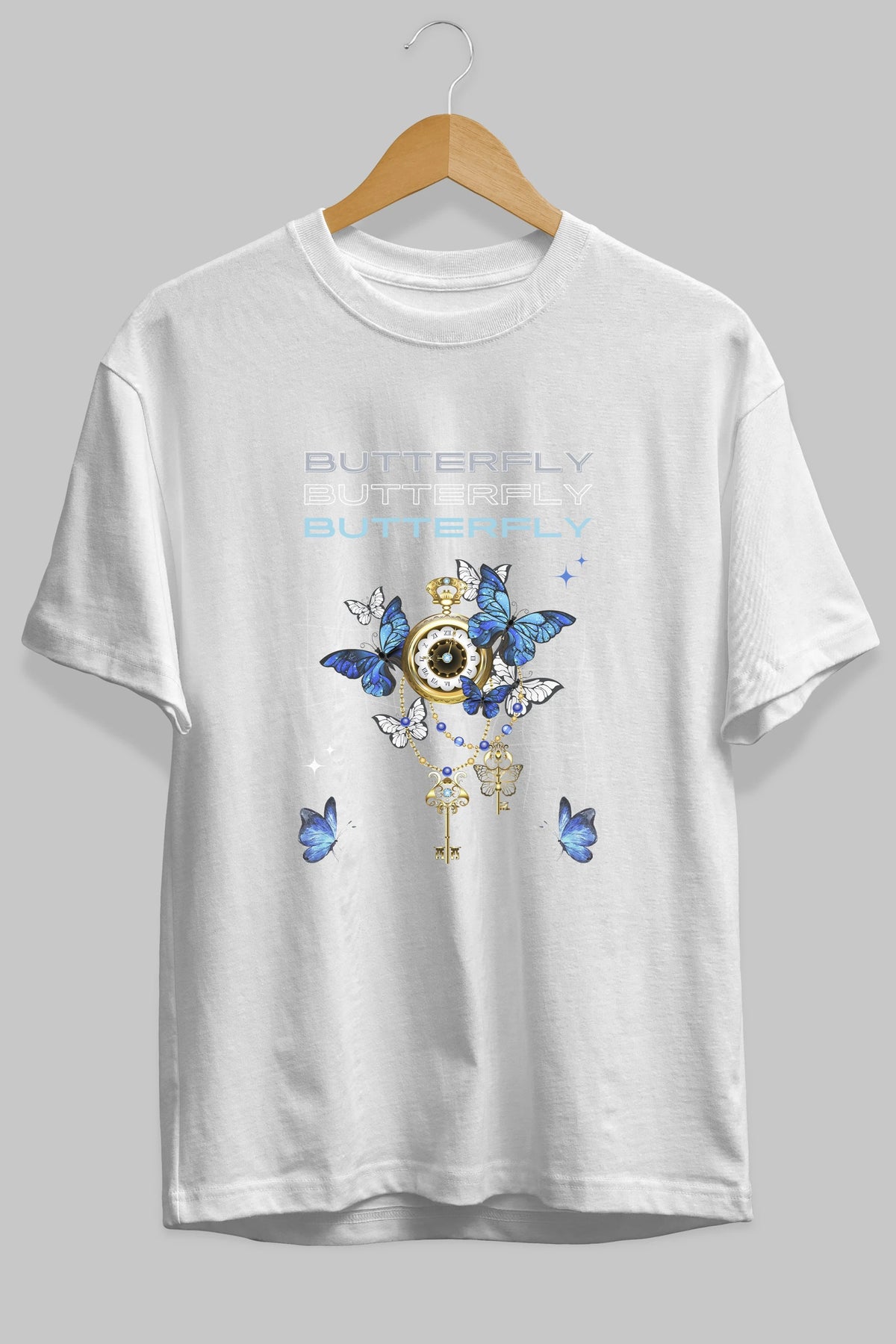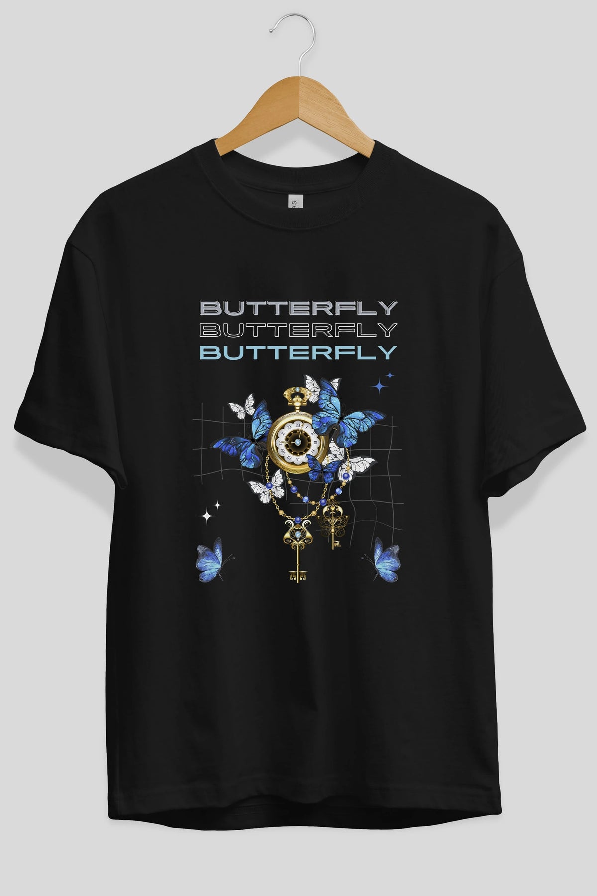 Butterfly Yazılı Ön Baskılı Oversize t-shirt Erkek Kadın Unisex