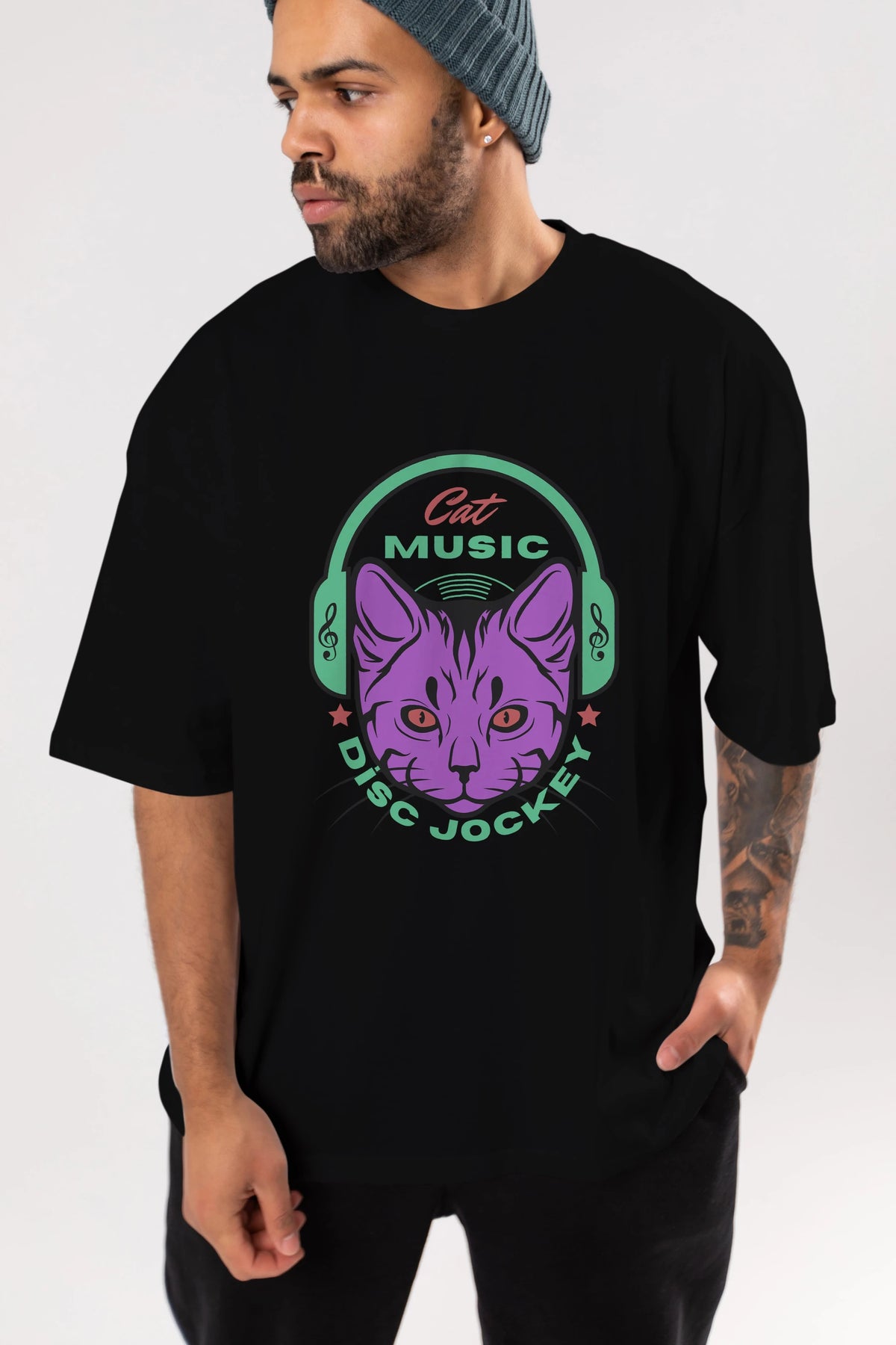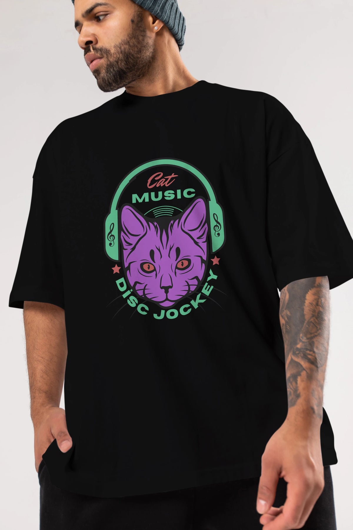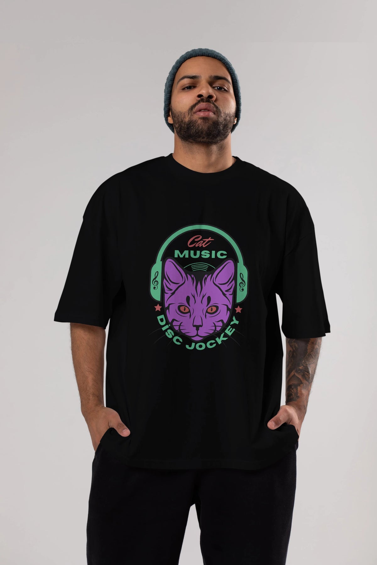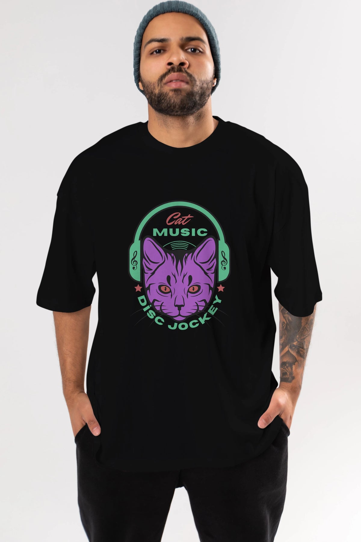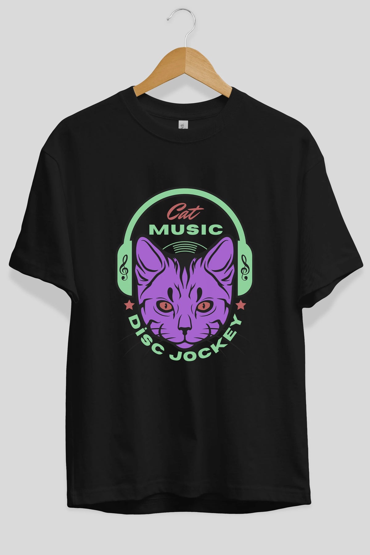 Cat Music Ön Baskılı Oversize t-shirt Erkek Kadın Unisex