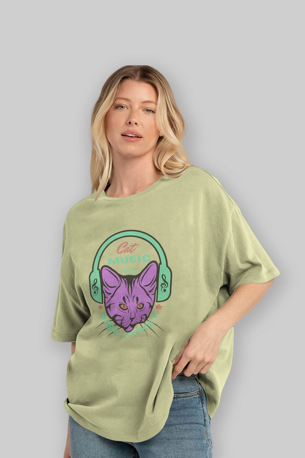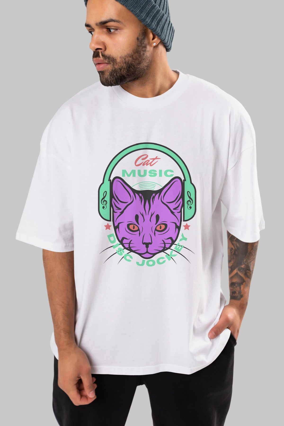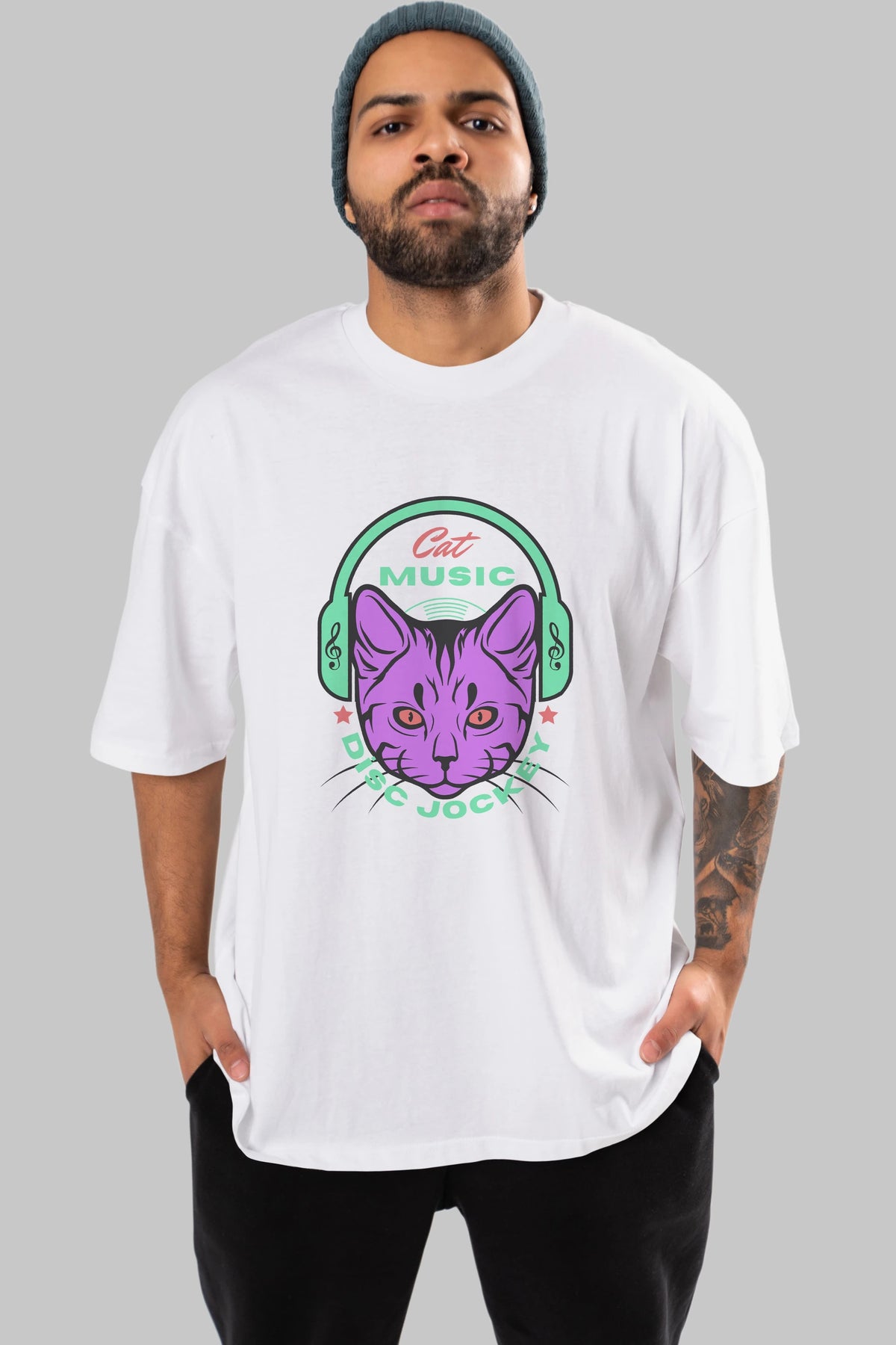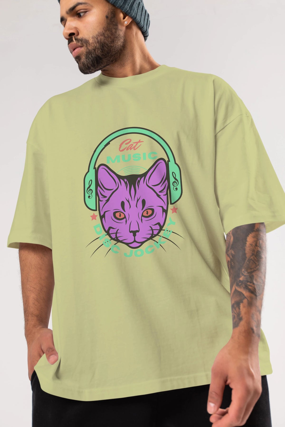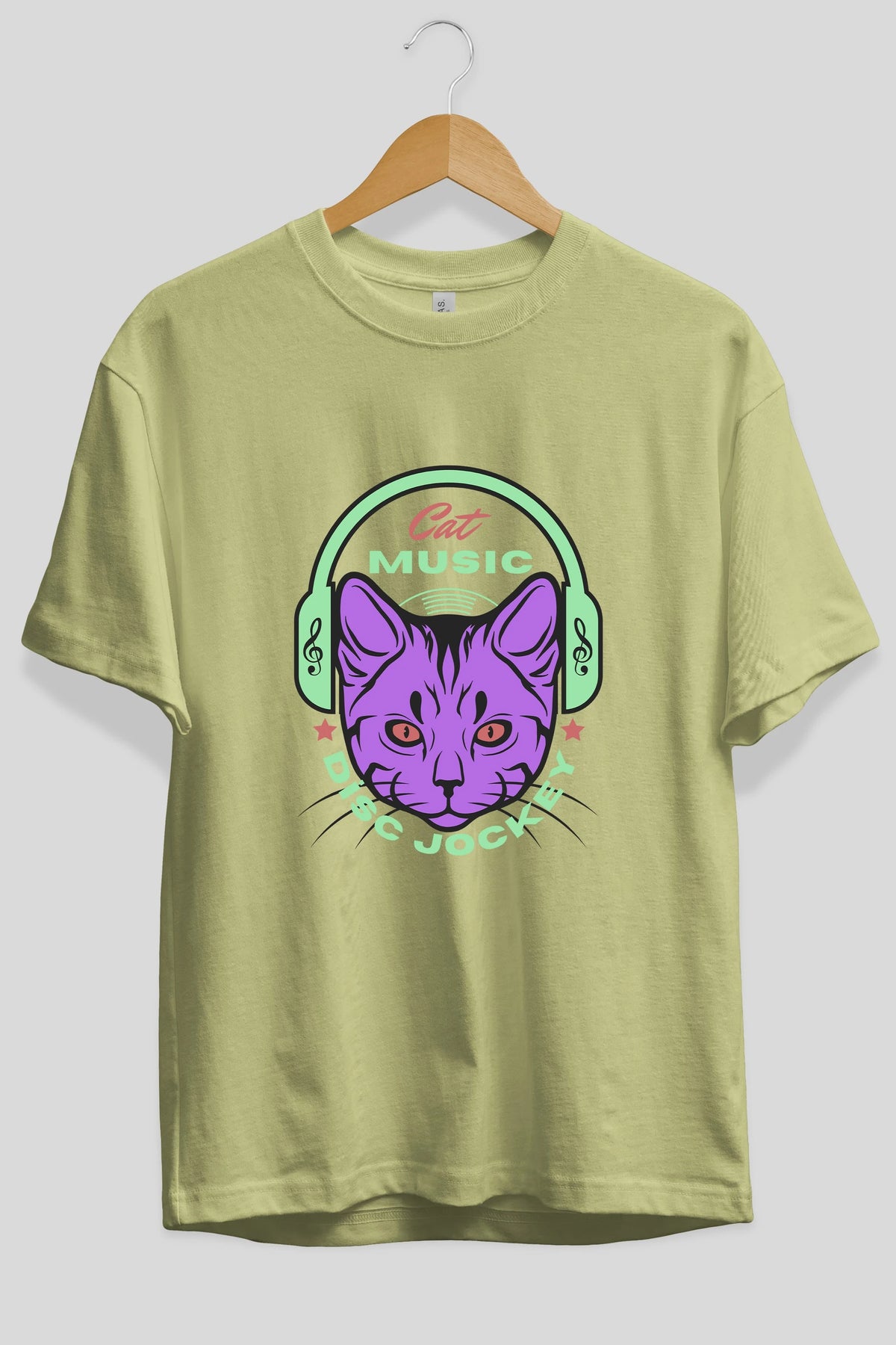 Cat Music Ön Baskılı Oversize t-shirt Erkek Kadın Unisex