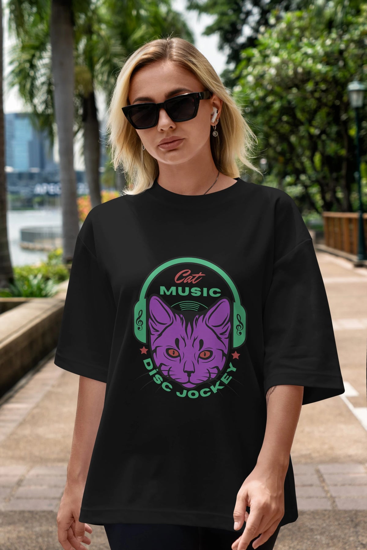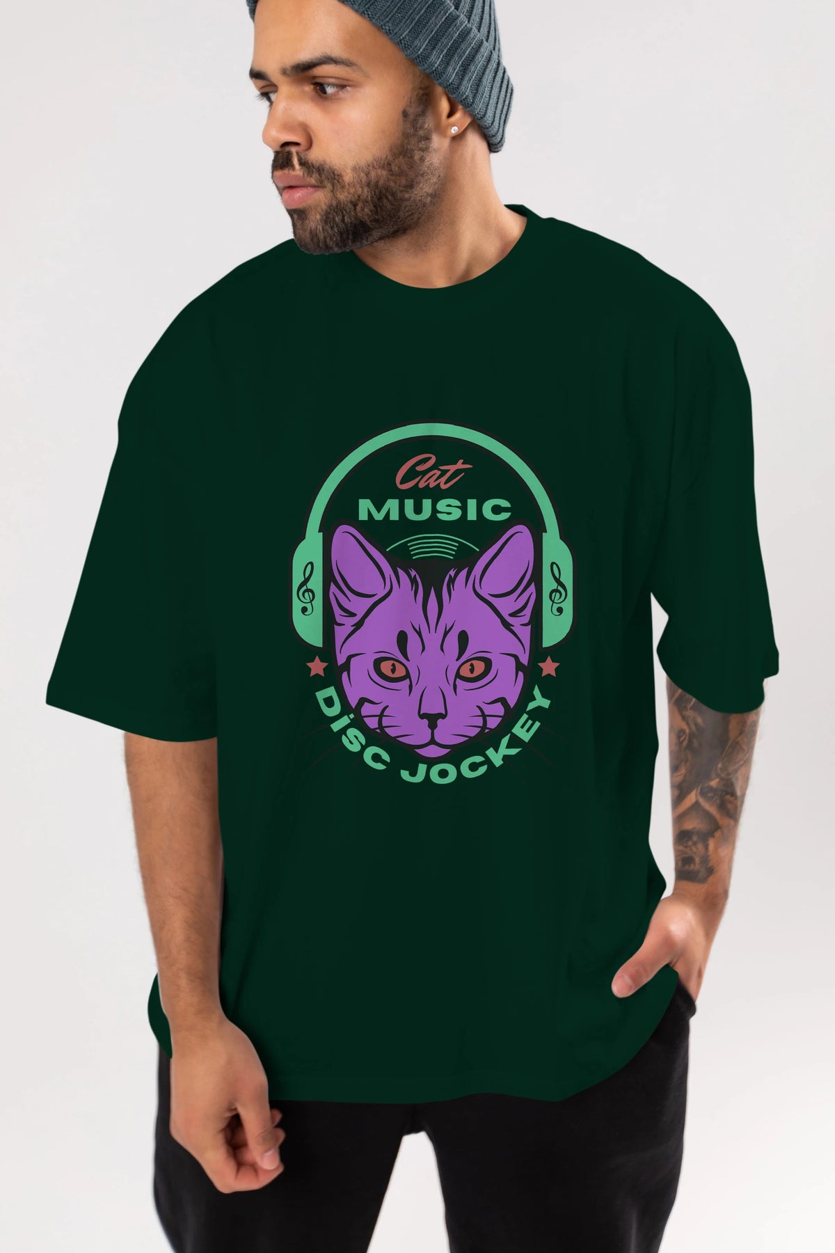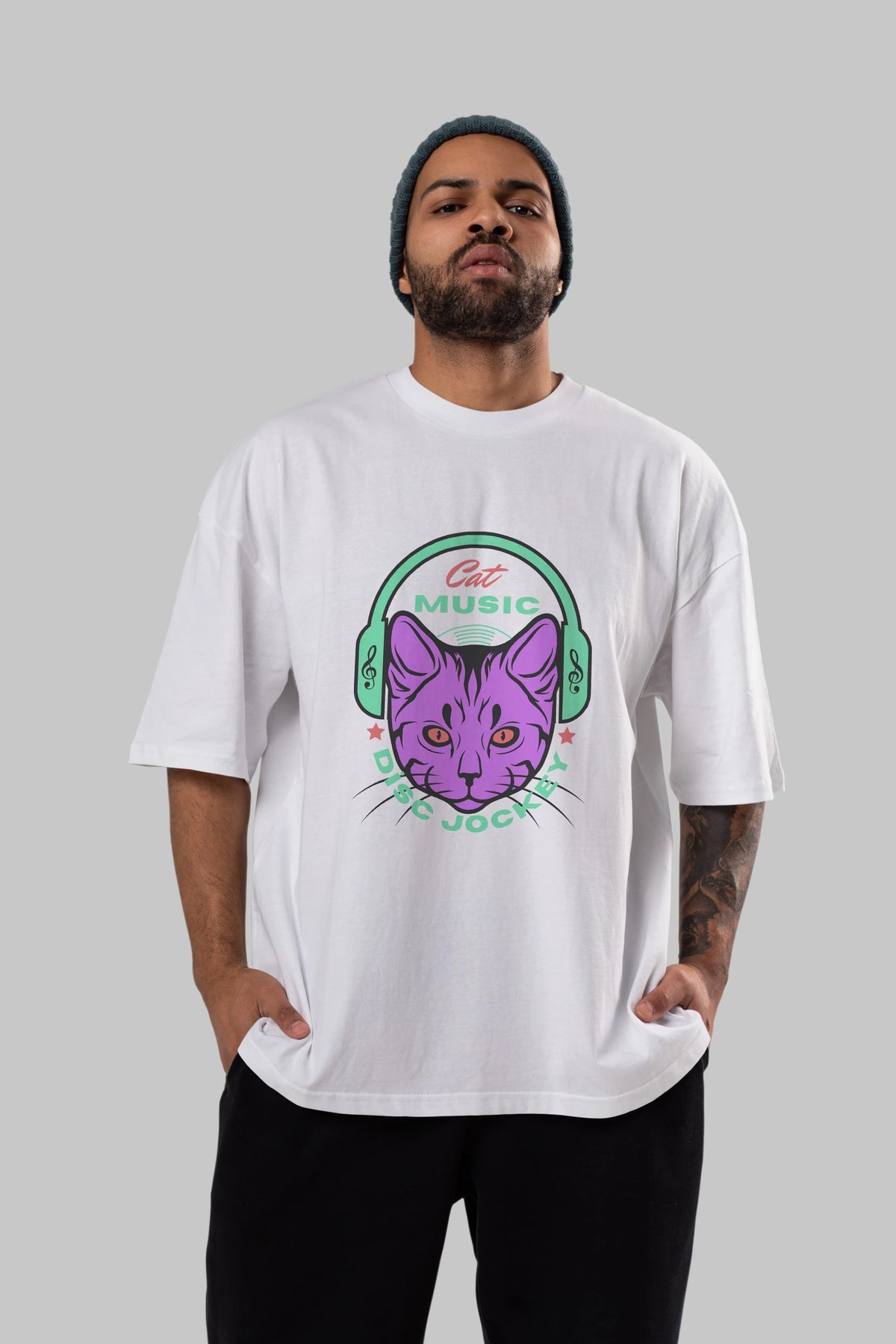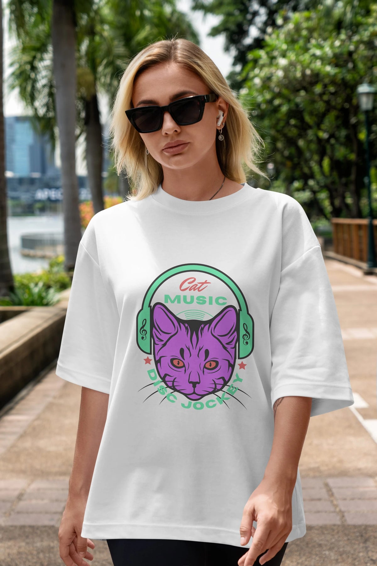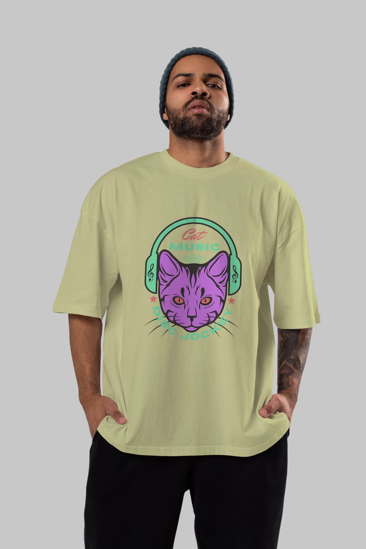 Cat Music Ön Baskılı Oversize t-shirt Erkek Kadın Unisex