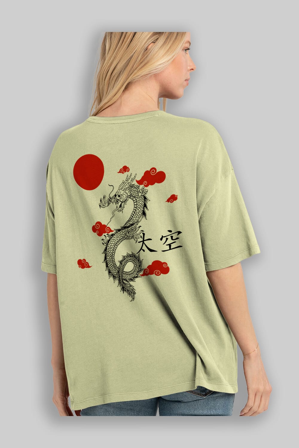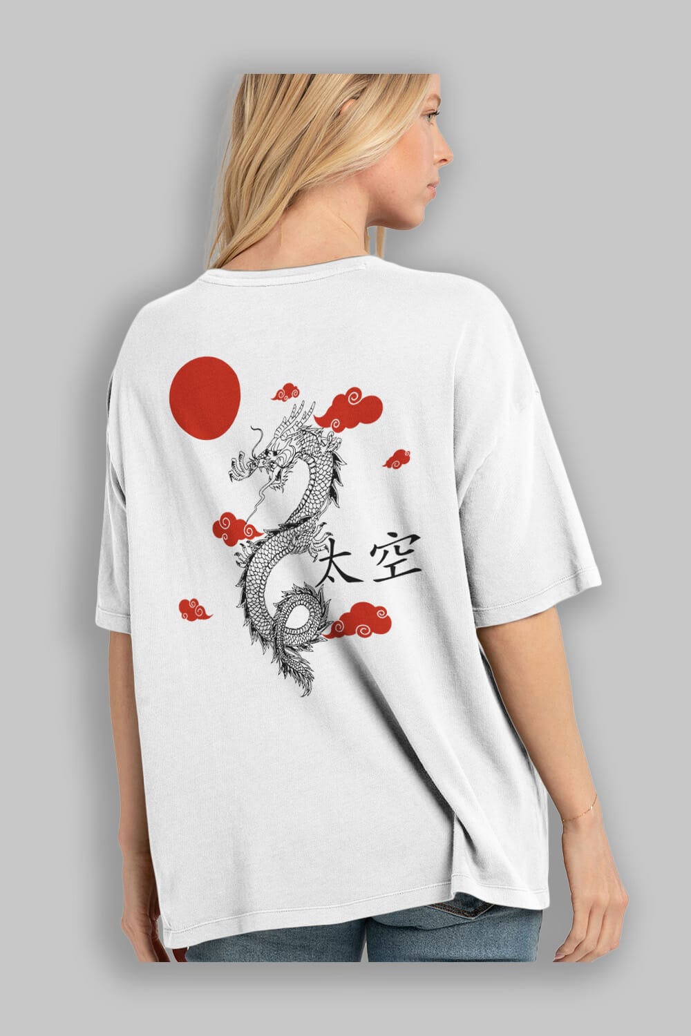 Chinese Dragon Arka Baskılı Oversize t-shirt Erkek Kadın Unisex