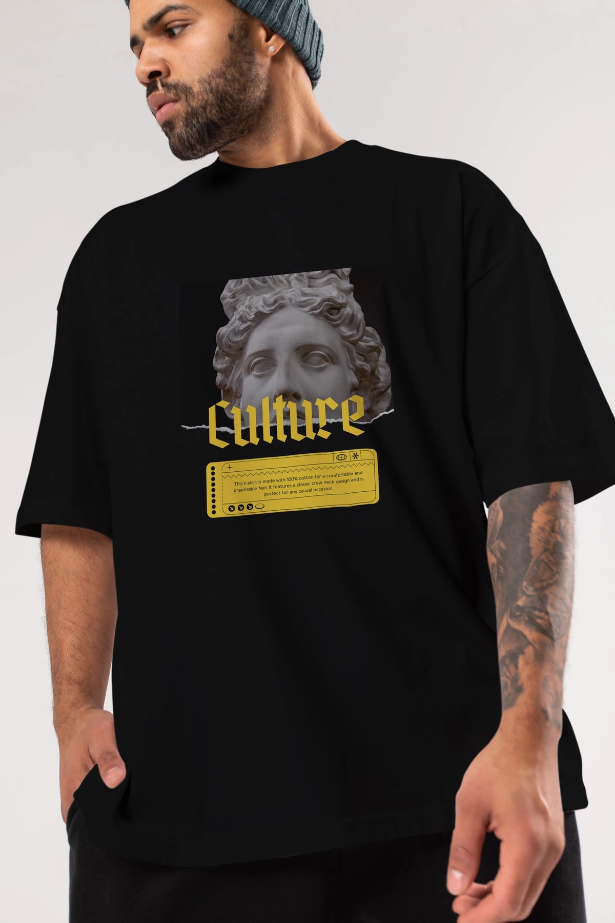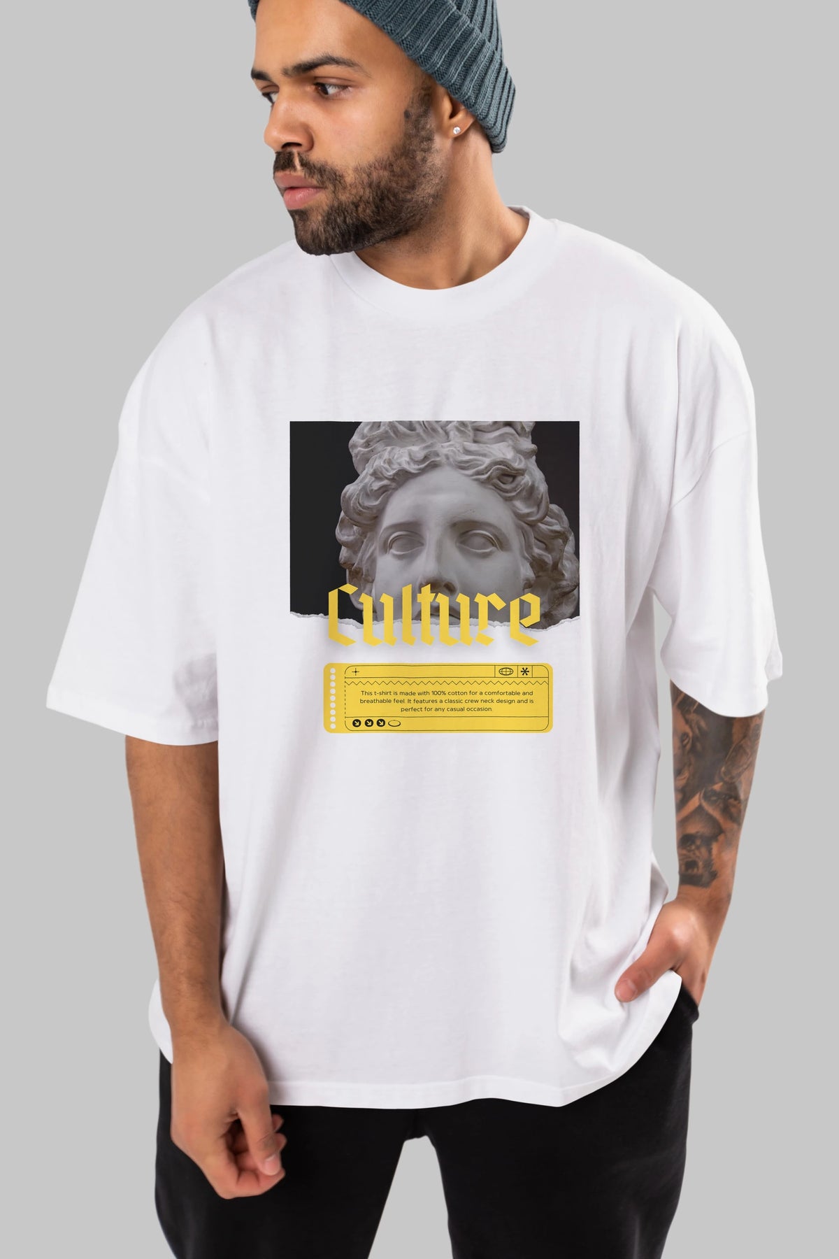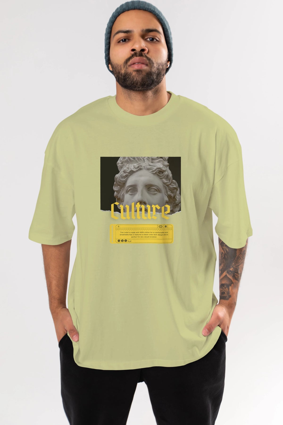 Culture Yazılı Ön Baskılı Oversize t-shirt Erkek Kadın Unisex