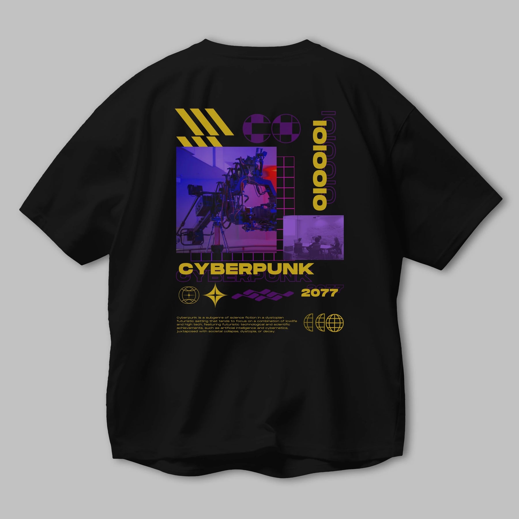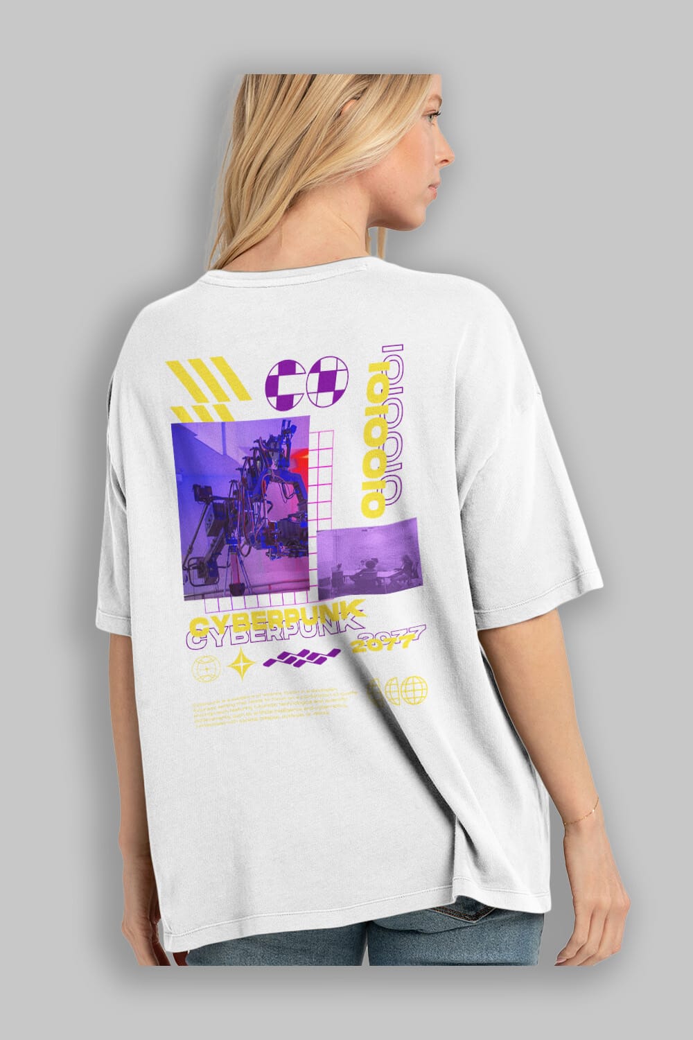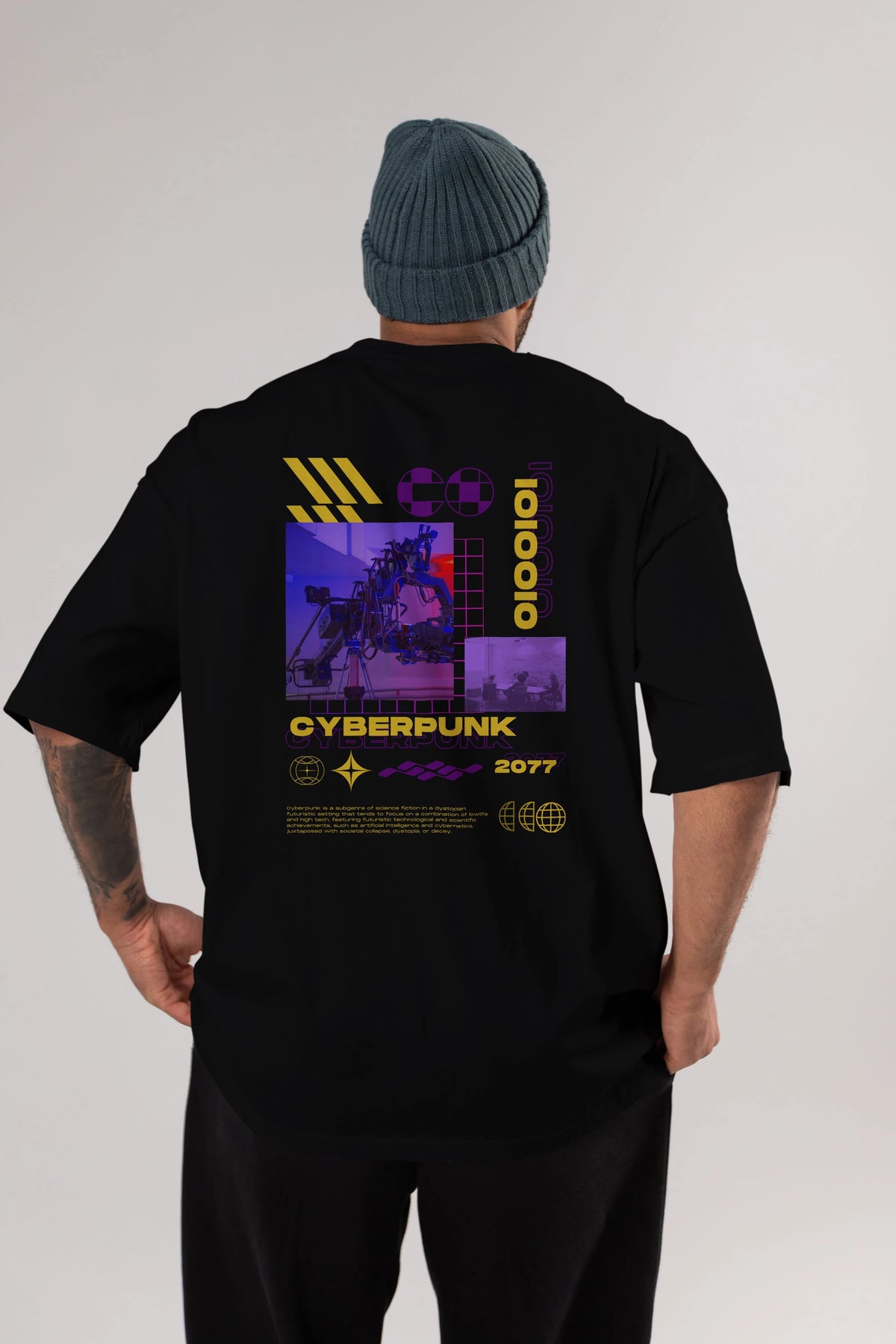 Cyberpunk Yazılı Arka Baskılı Oversize t-shirt Erkek Kadın Unisex