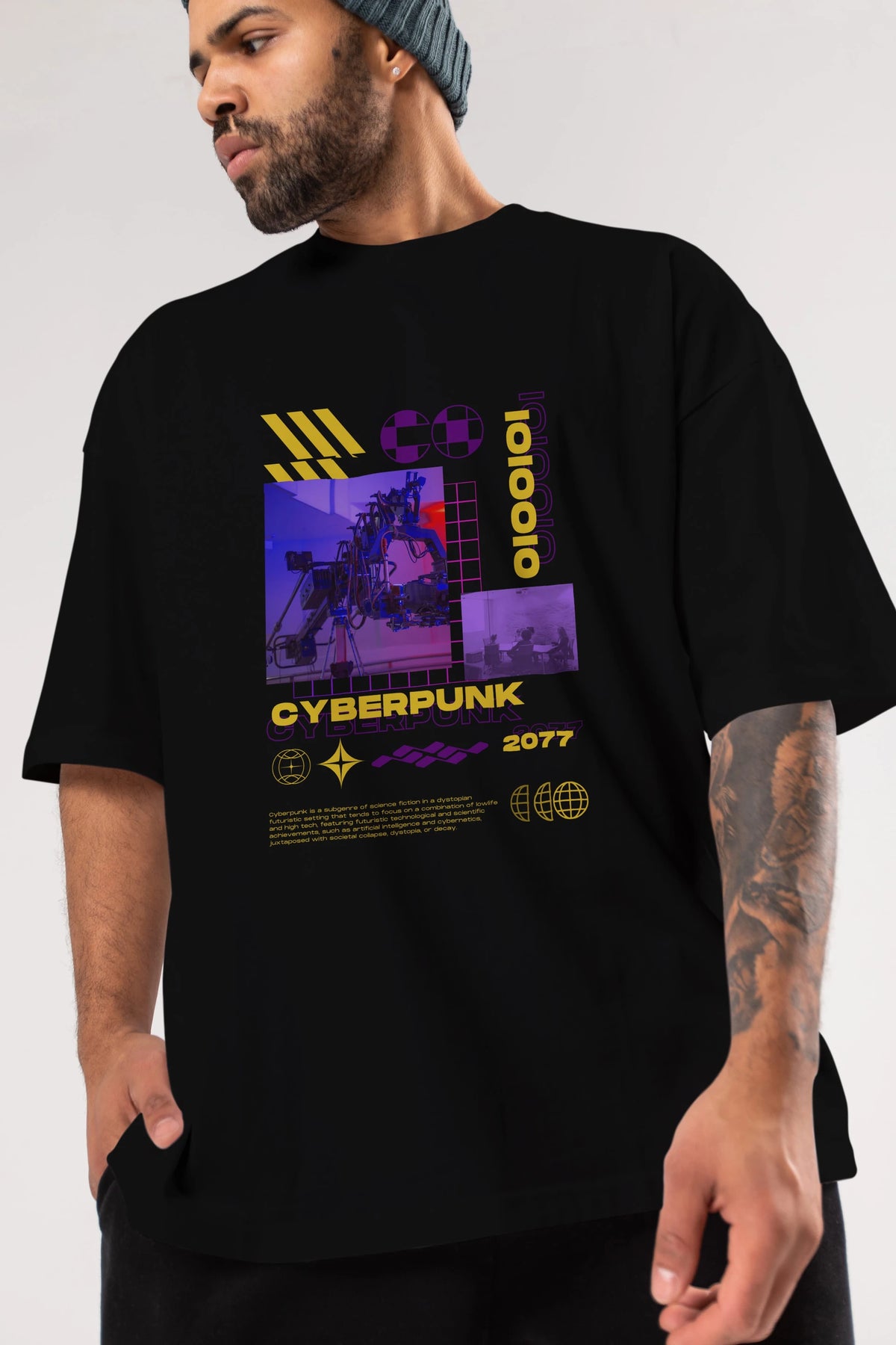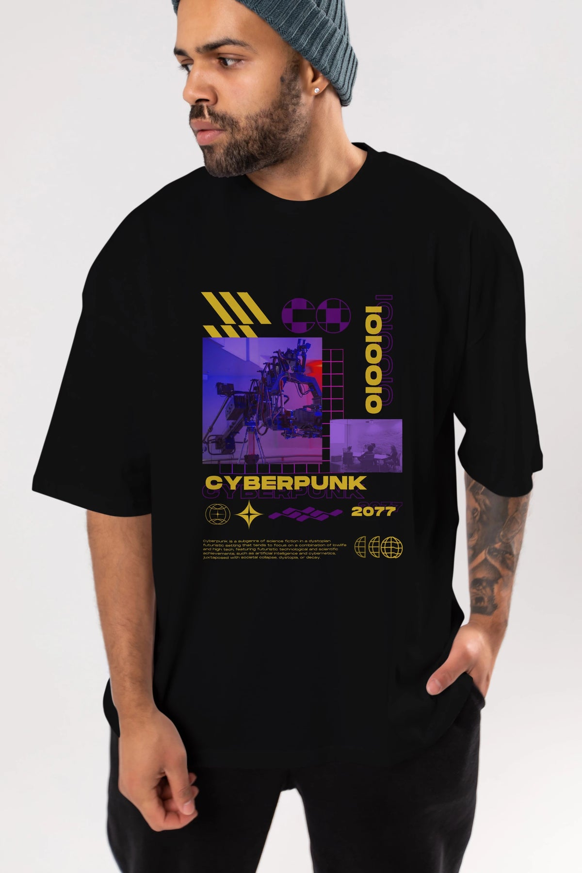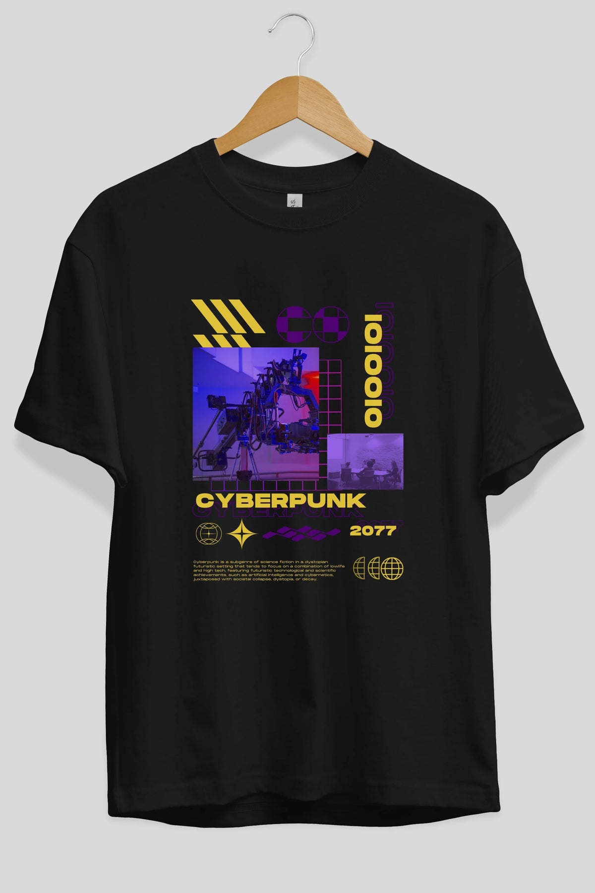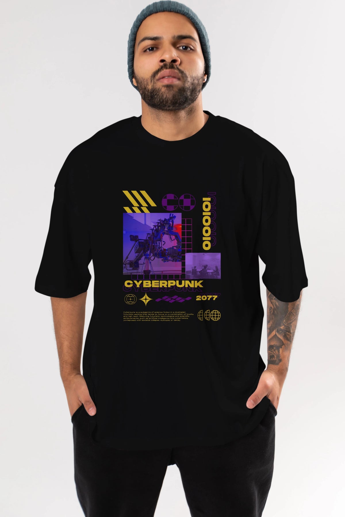 Cyberpunk Yazılı Ön Baskılı Oversize t-shirt Erkek Kadın Unisex
