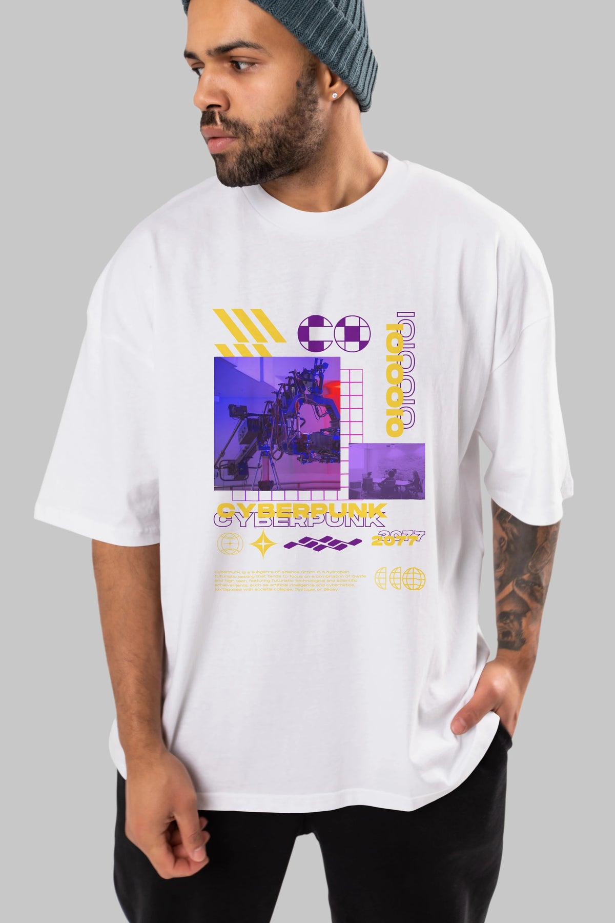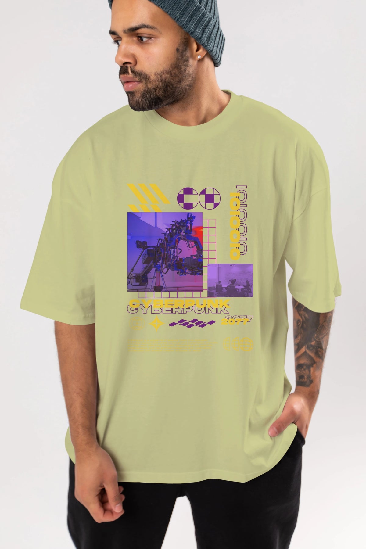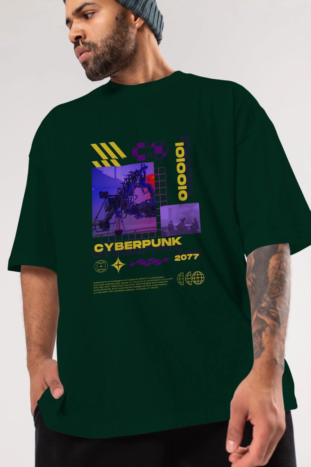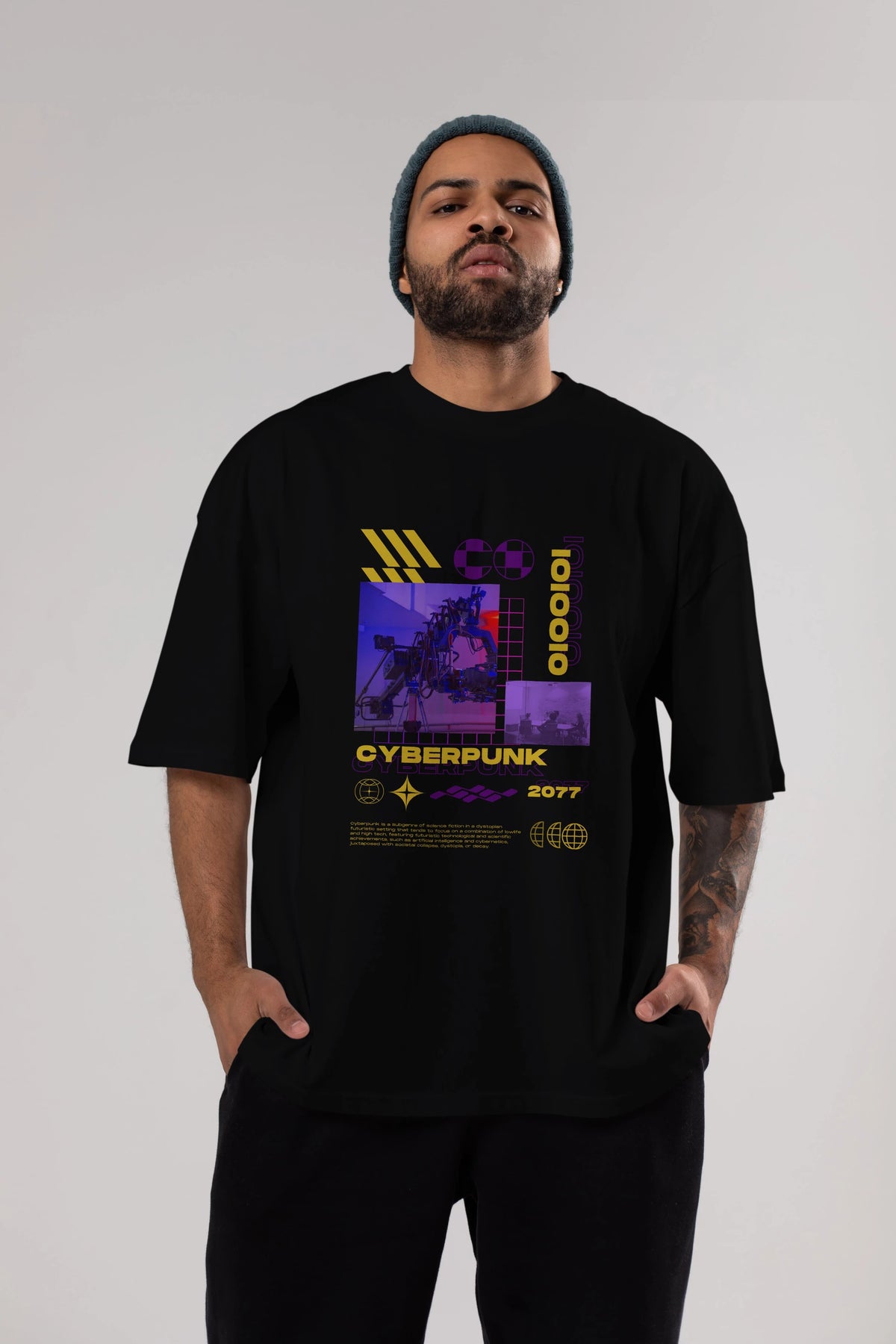 Cyberpunk Yazılı Ön Baskılı Oversize t-shirt Erkek Kadın Unisex