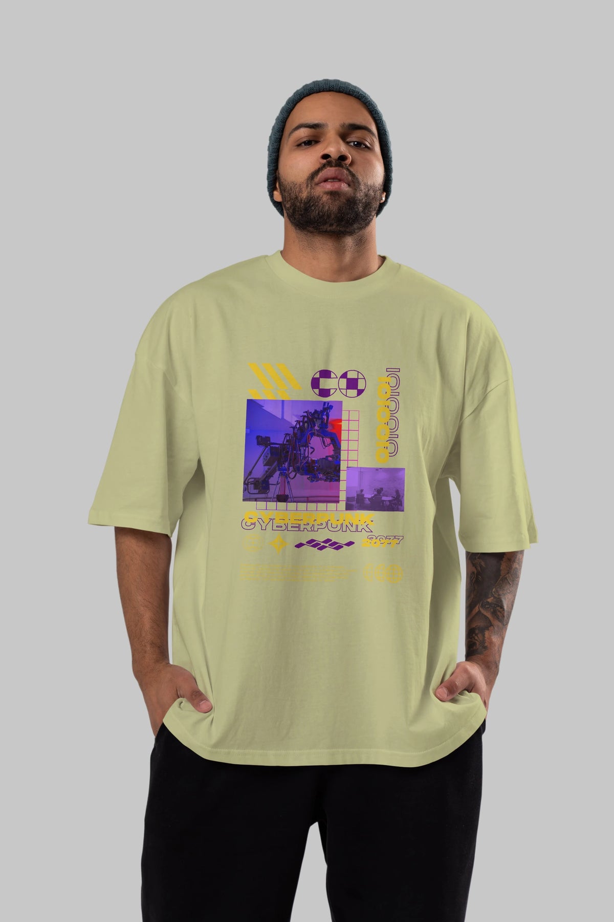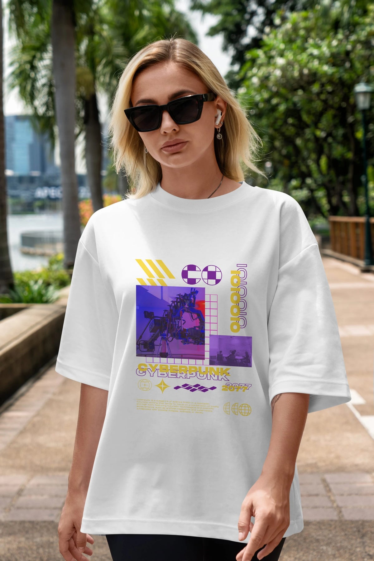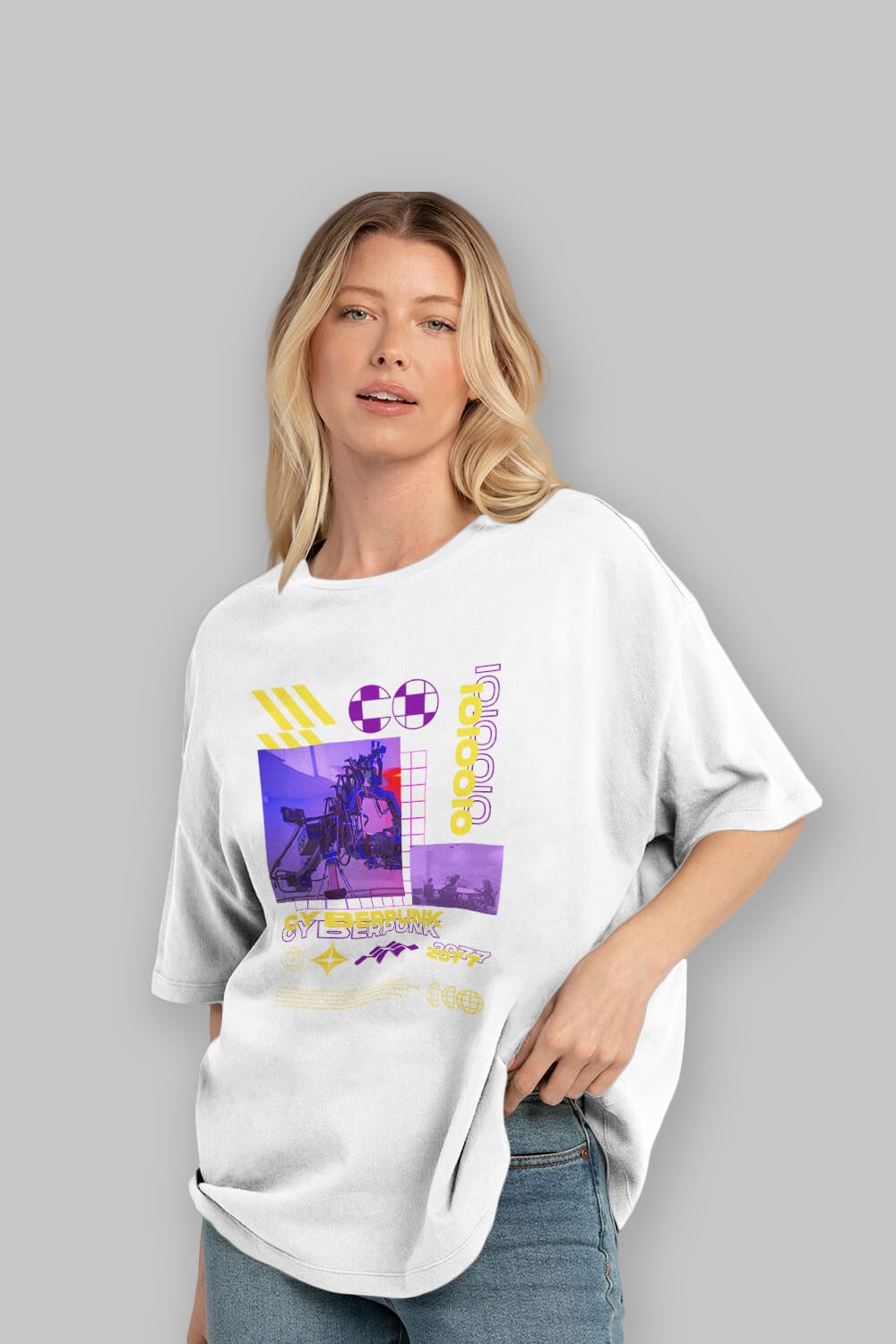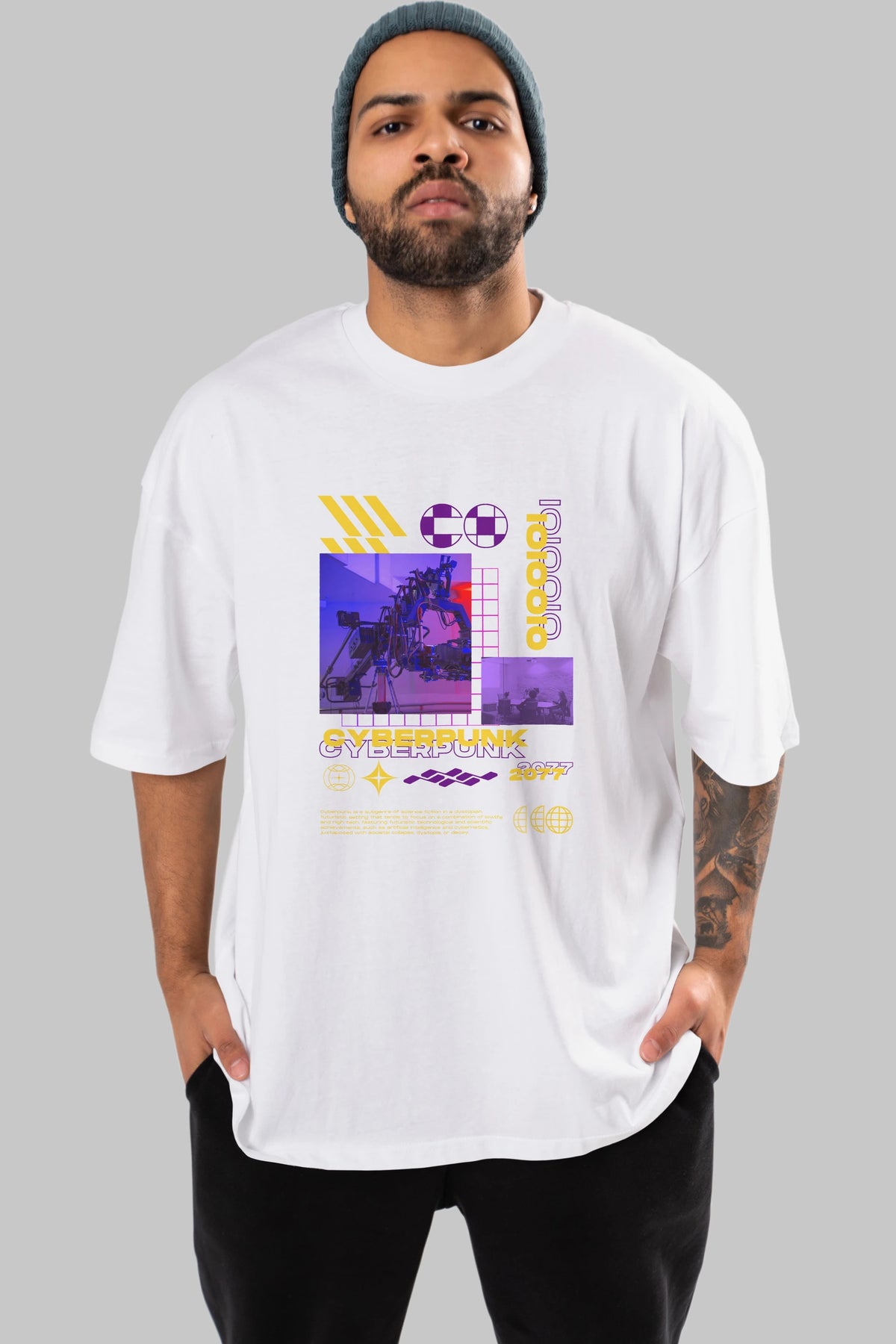 Cyberpunk Yazılı Ön Baskılı Oversize t-shirt Erkek Kadın Unisex