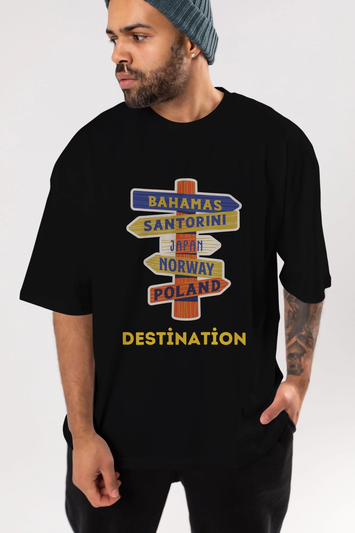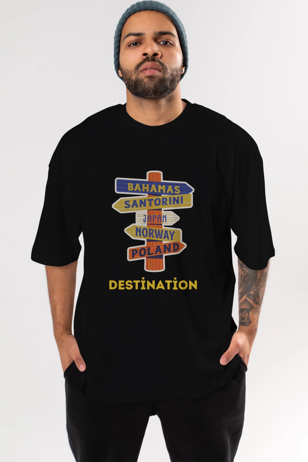 Destination Yazılı Ön Baskılı Oversize t-shirt Erkek Kadın Unisex