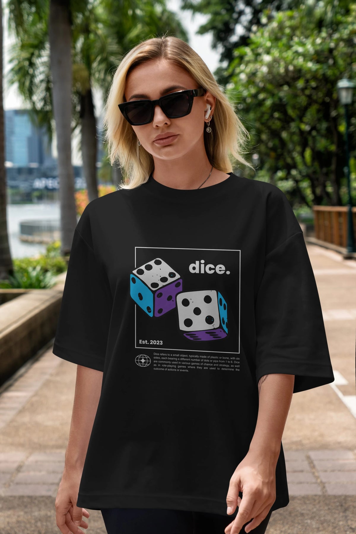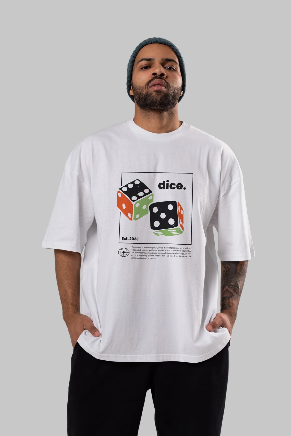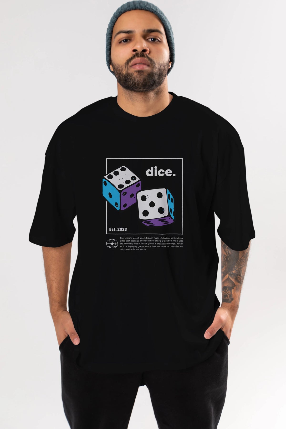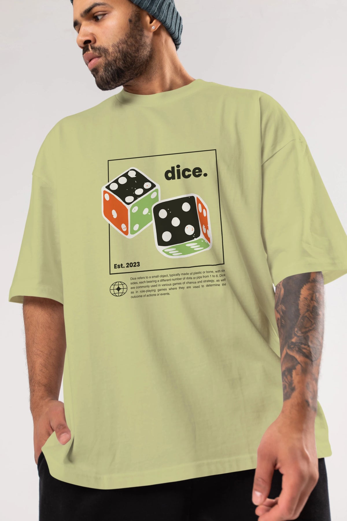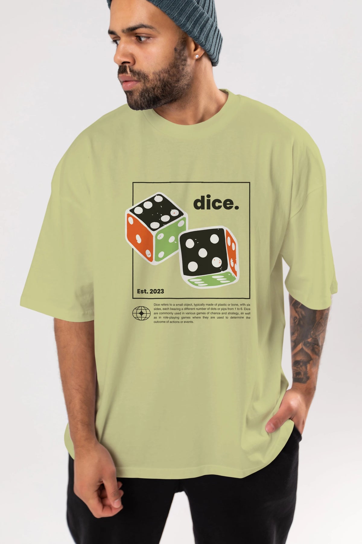 Dice Yazılı Ön Baskılı Oversize t-shirt Erkek Kadın Unisex