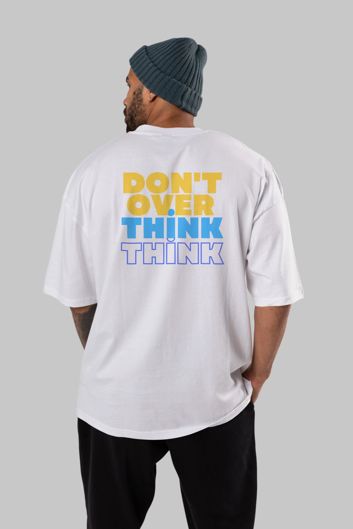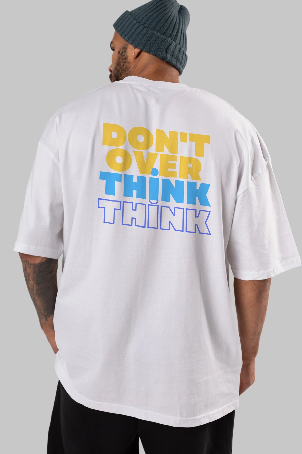 Don't Over Think Yazılı Arka Baskılı Oversize t-shirt Erkek Kadın Unisex
