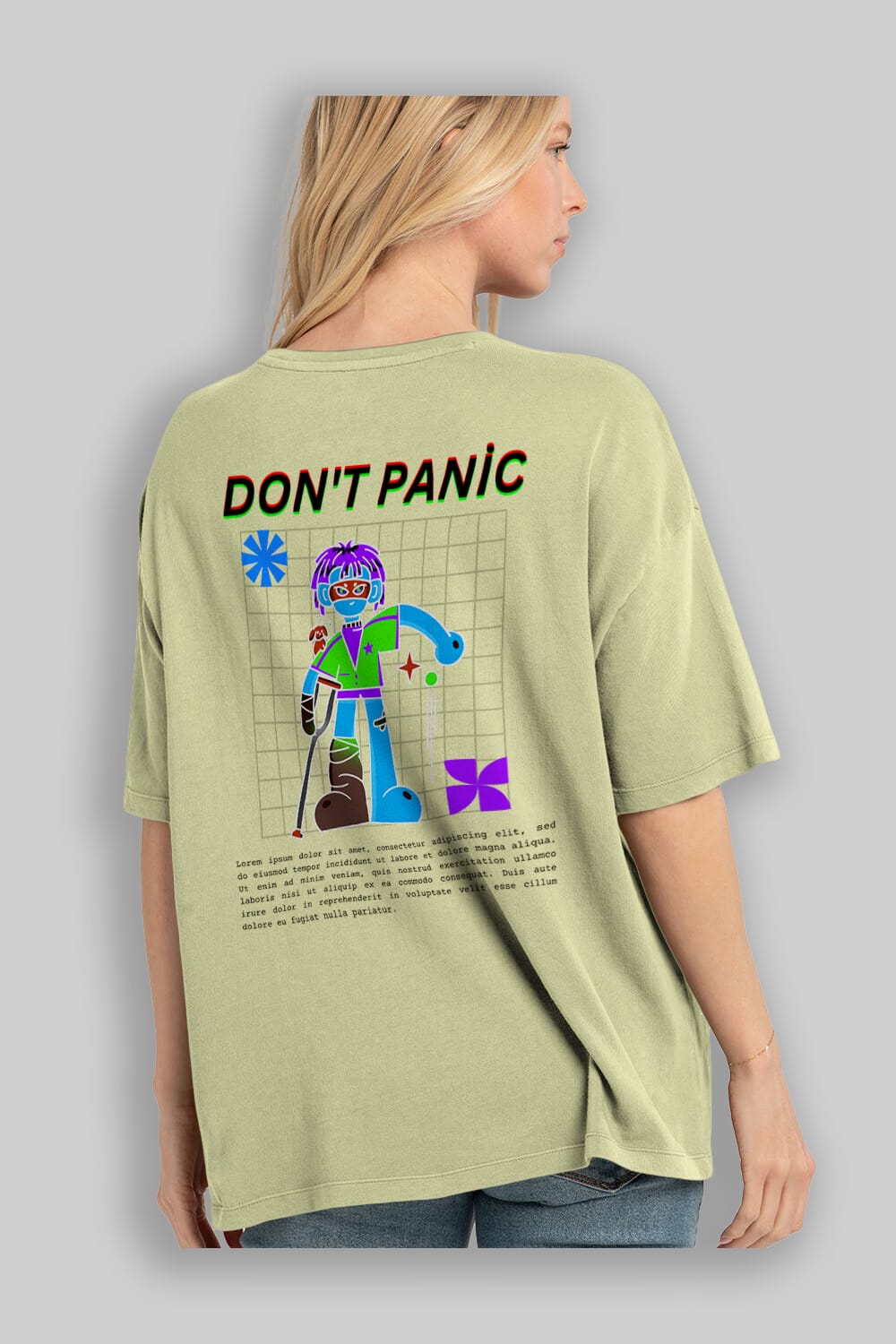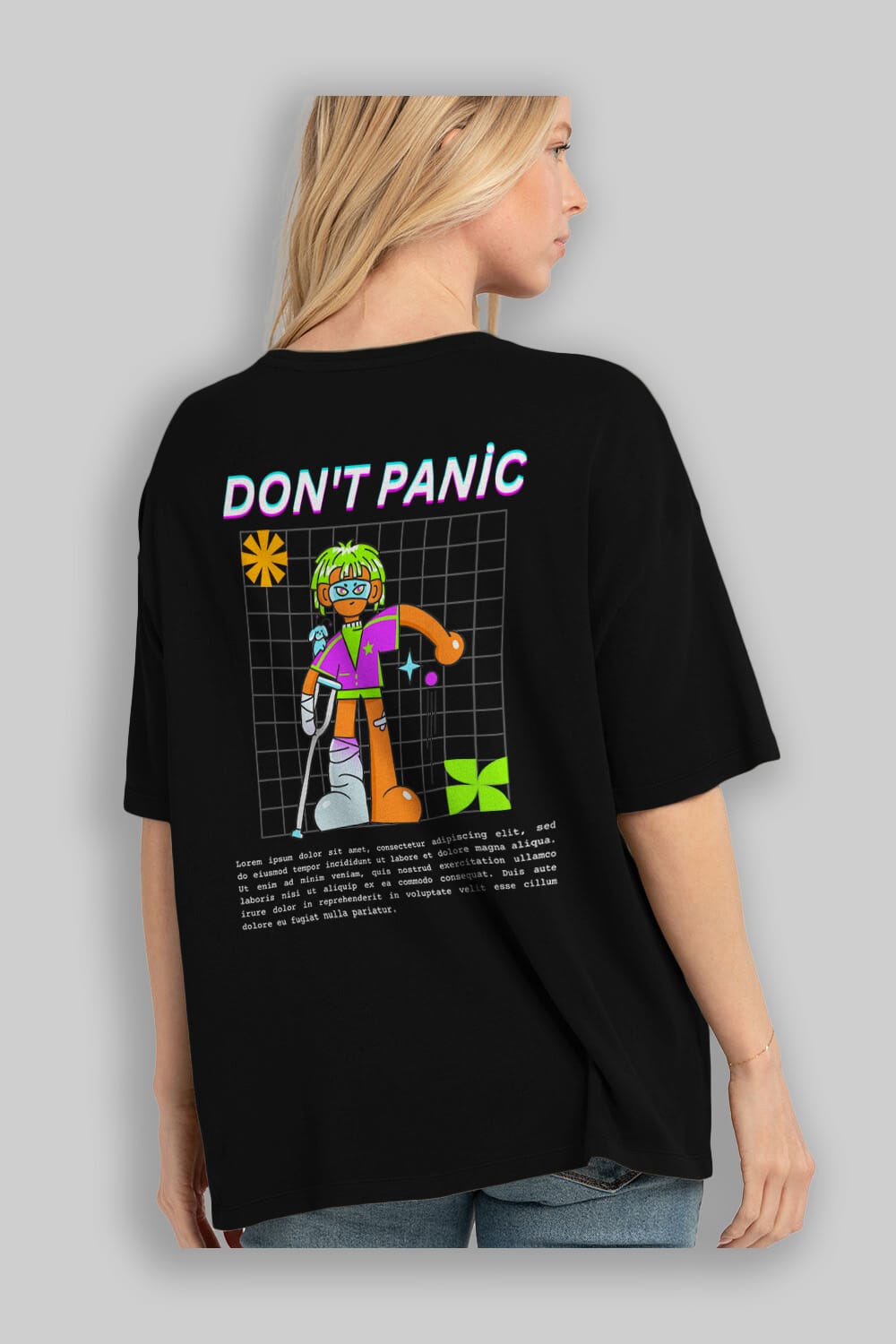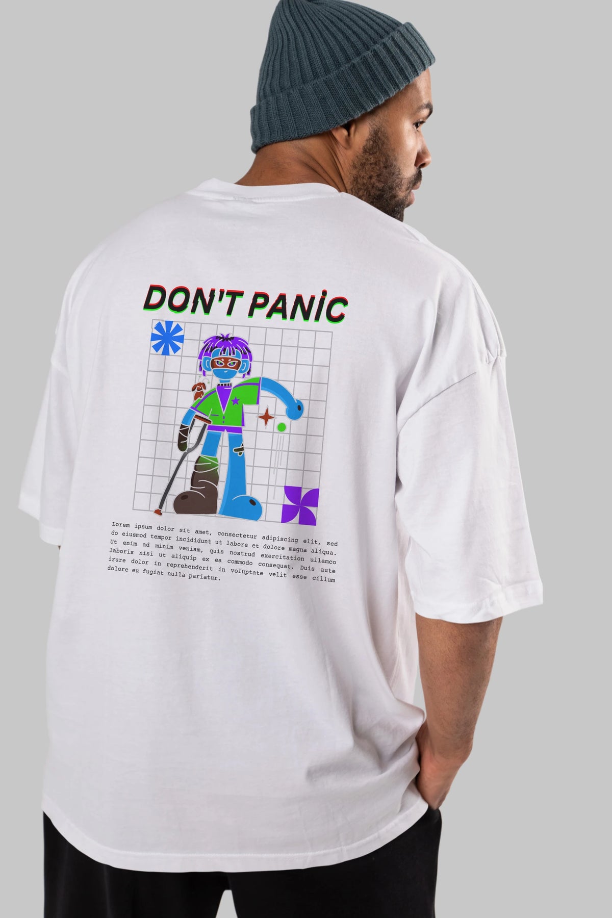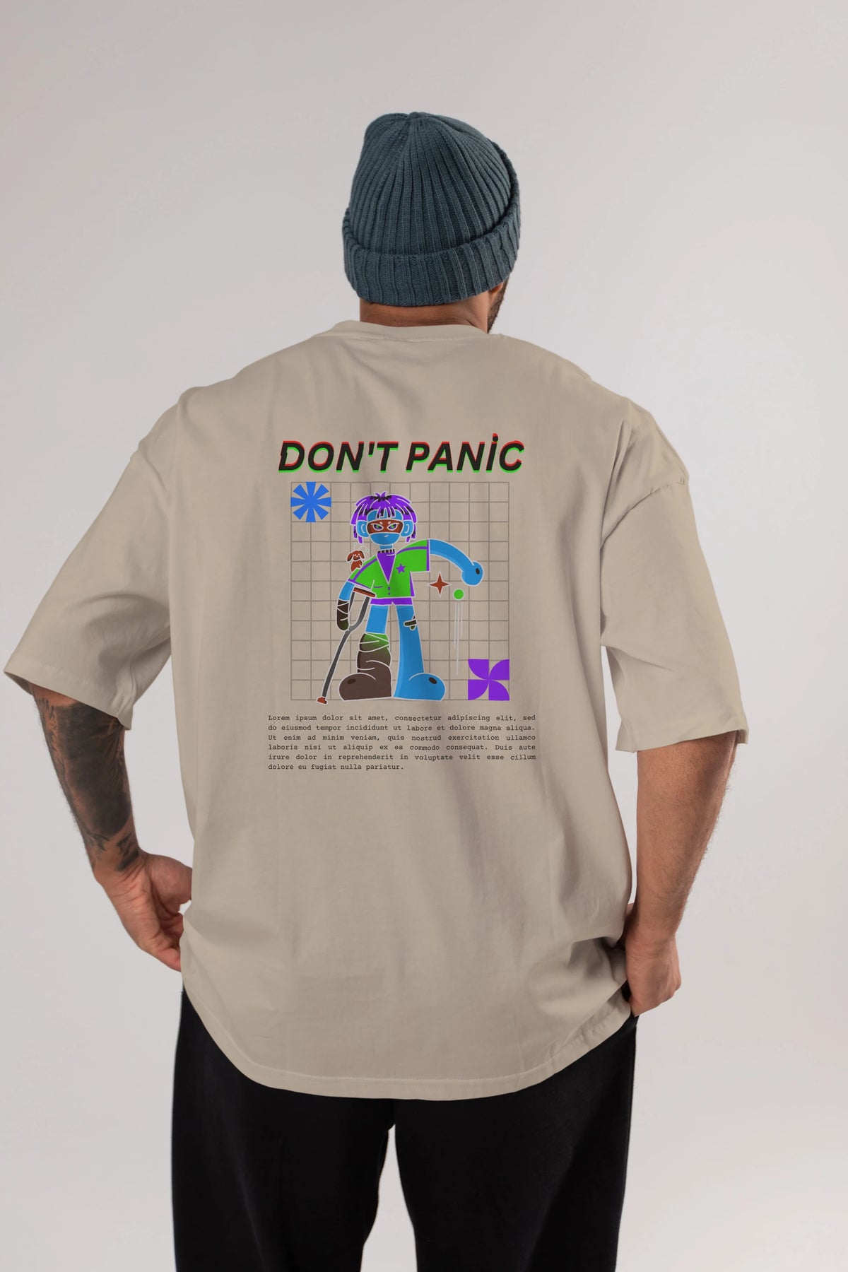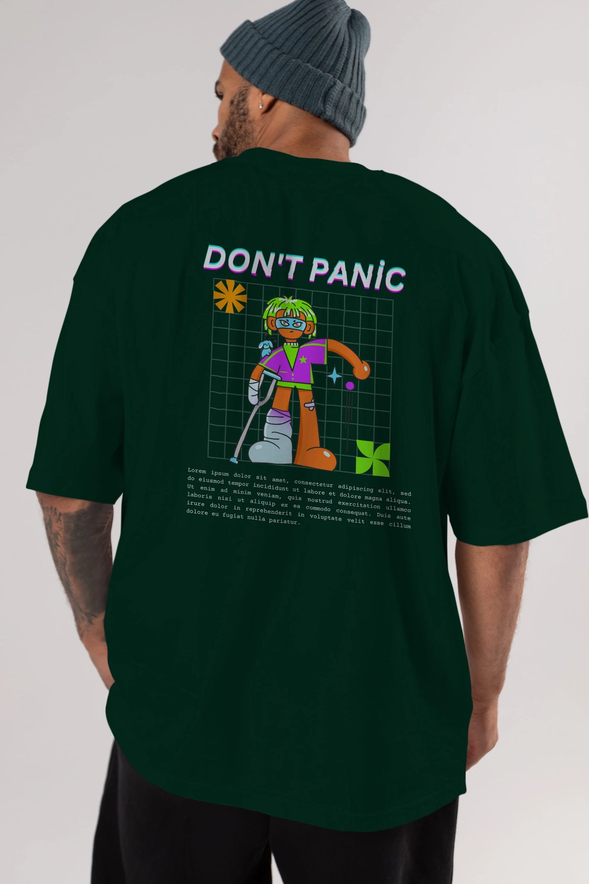 Dont Panic Yazılı Arka Baskılı Oversize t-shirt Erkek Kadın Unisex