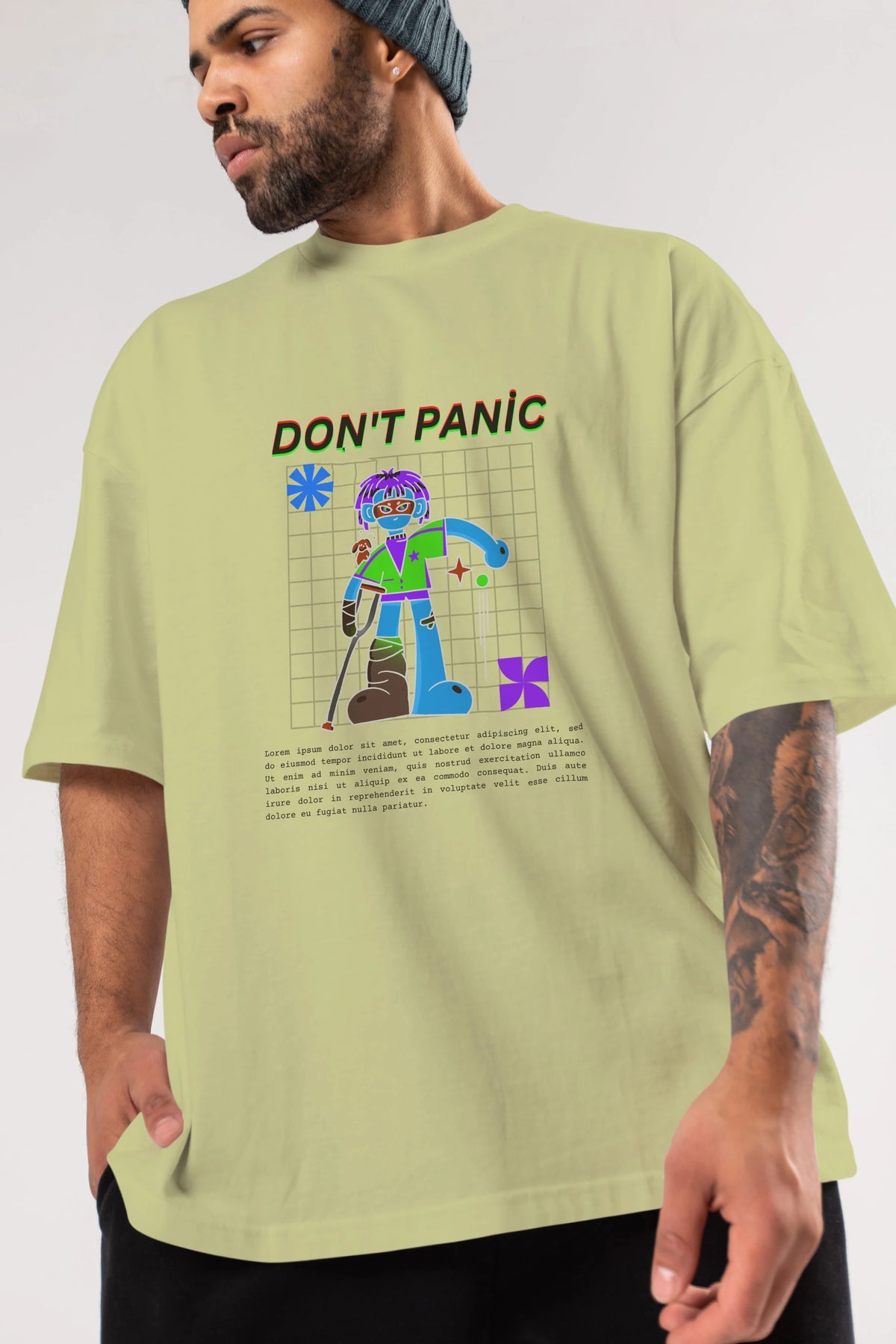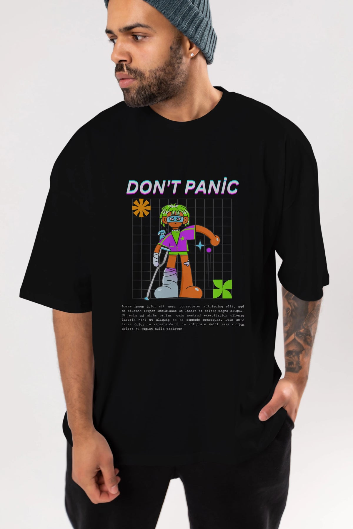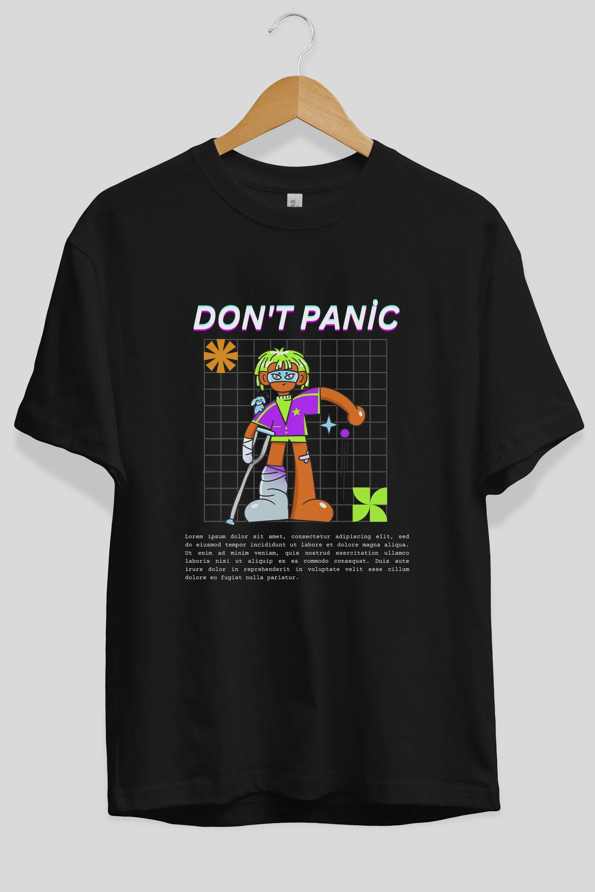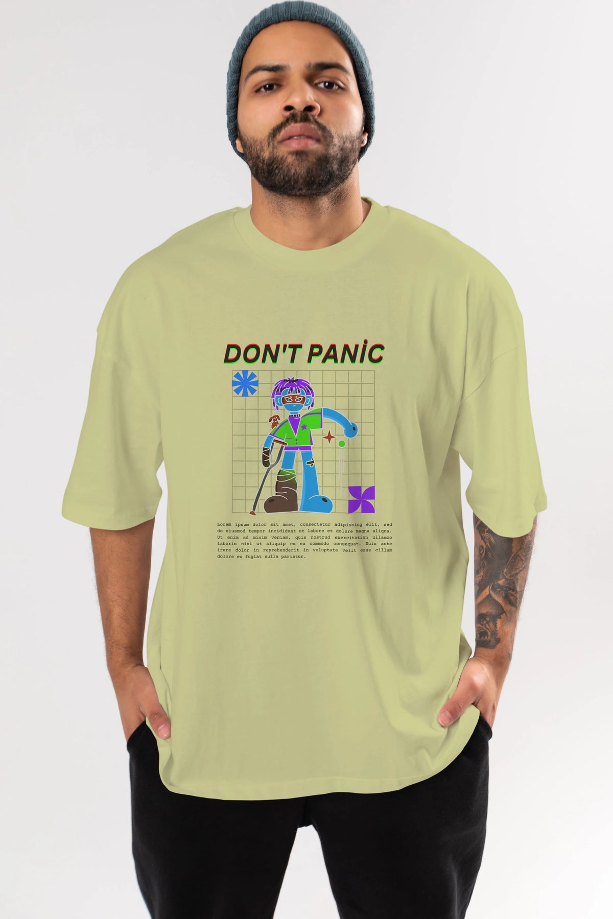 Dont Panic Yazılı Ön Baskılı Oversize t-shirt Erkek Kadın Unisex