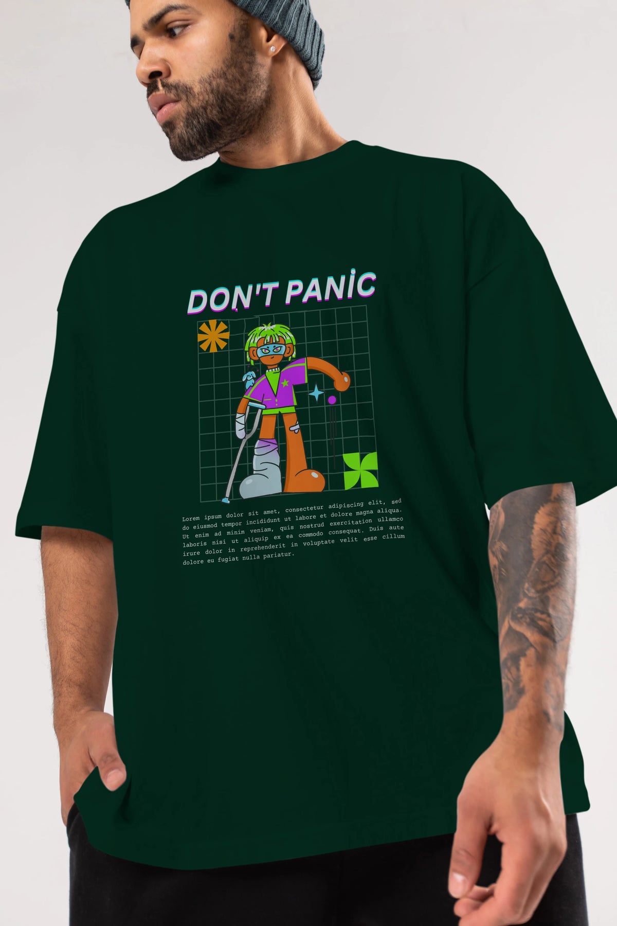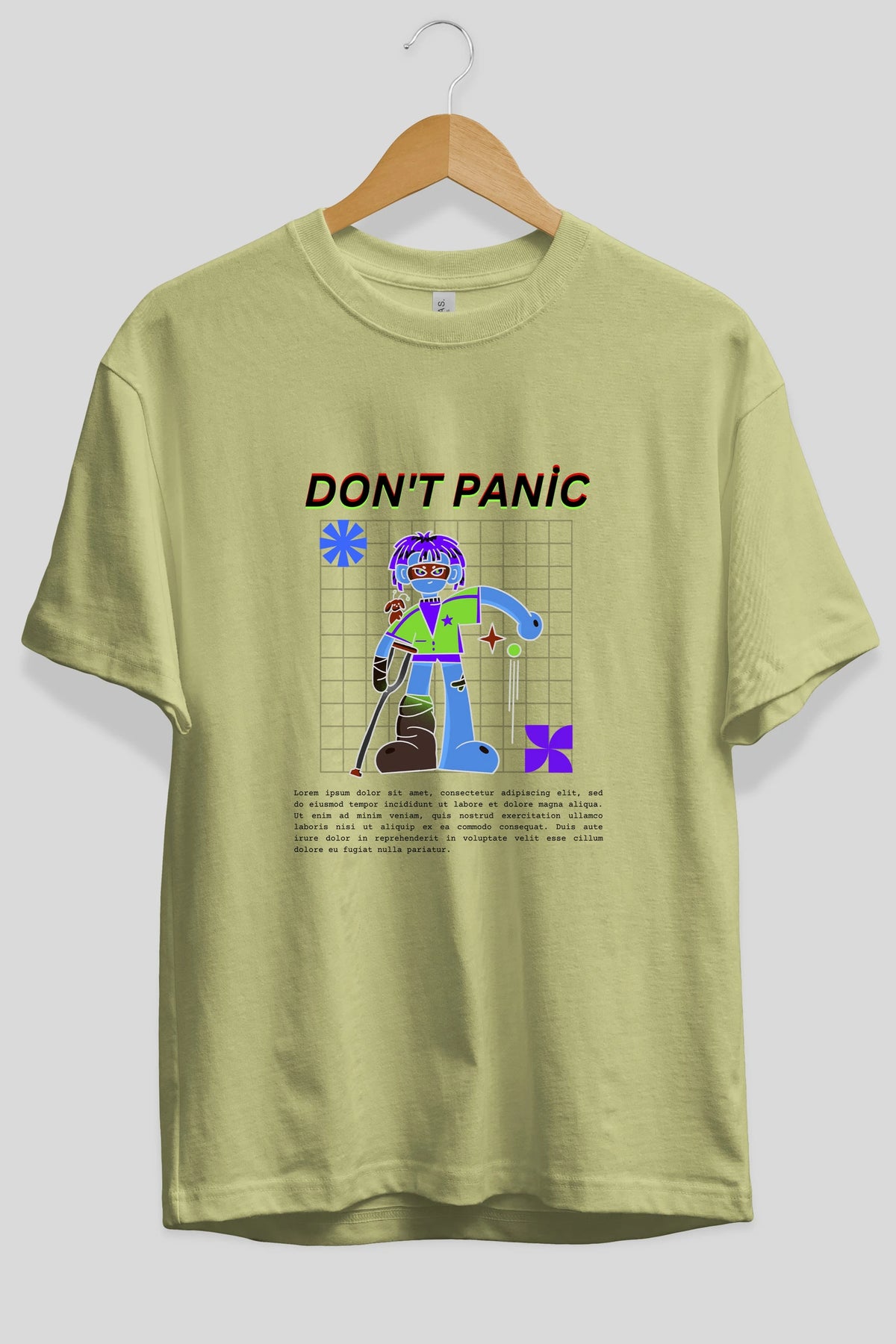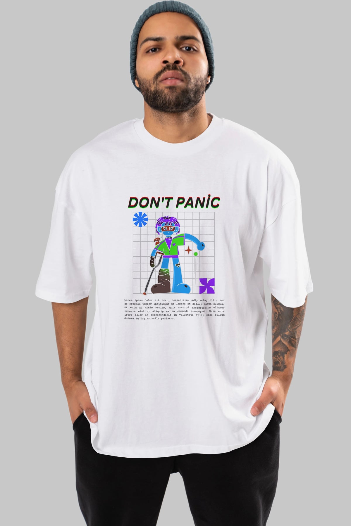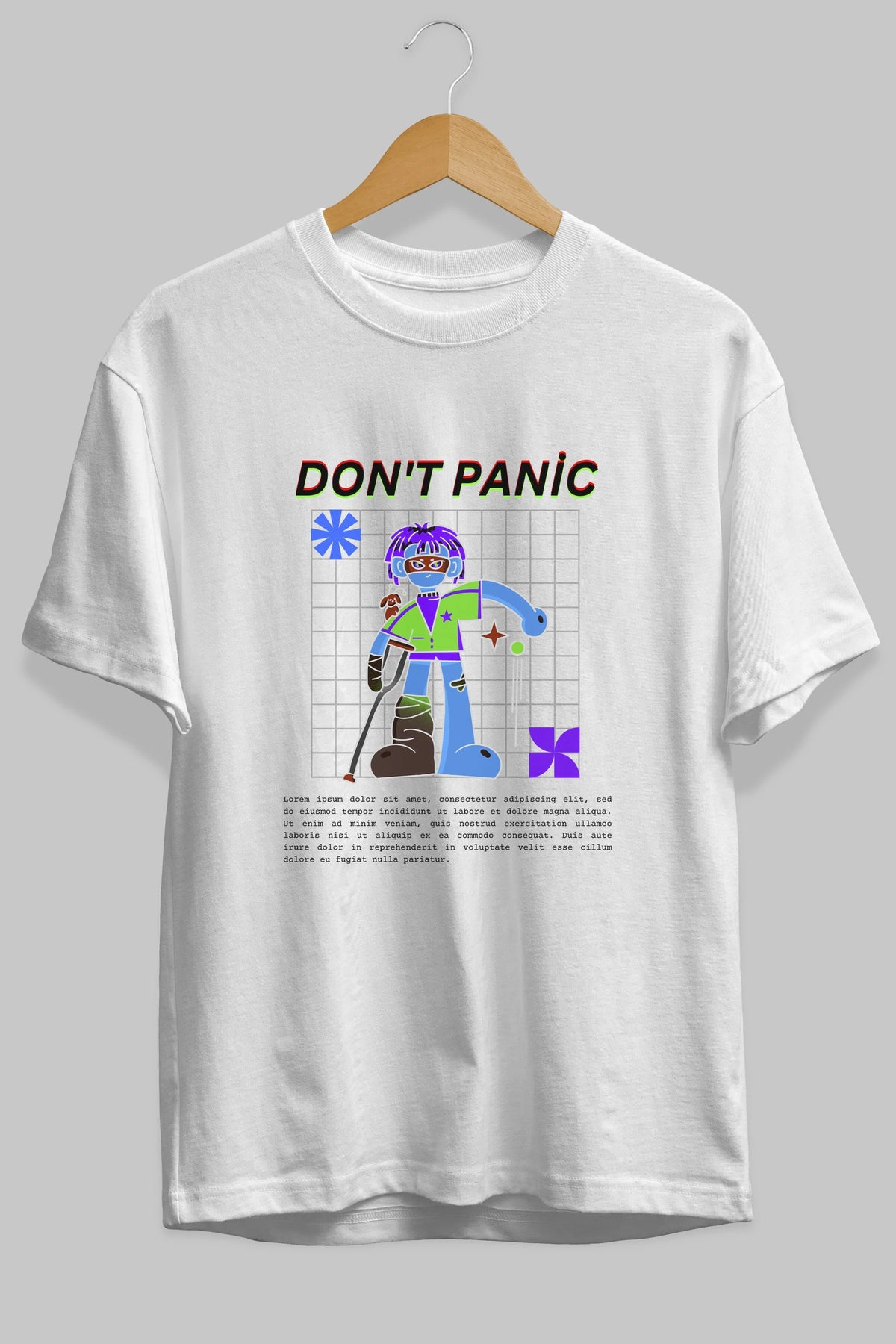 Dont Panic Yazılı Ön Baskılı Oversize t-shirt Erkek Kadın Unisex
