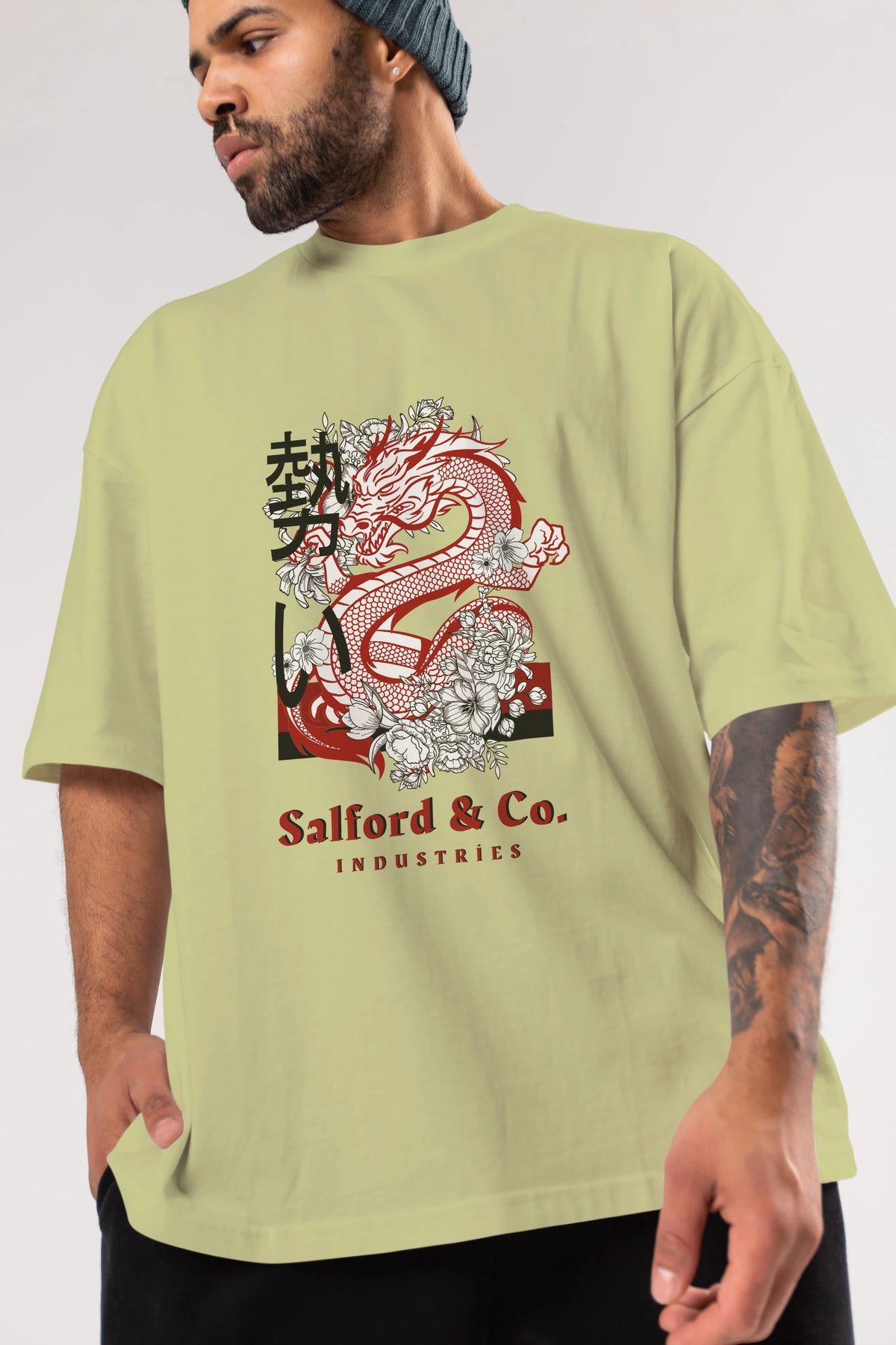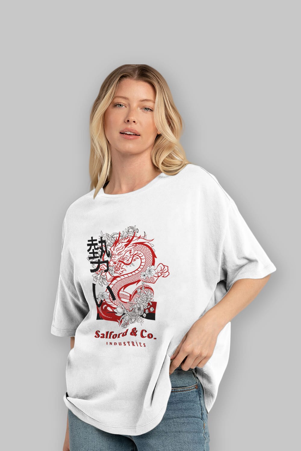 Dragon Ön Baskılı Oversize t-shirt Erkek Kadın Unisex