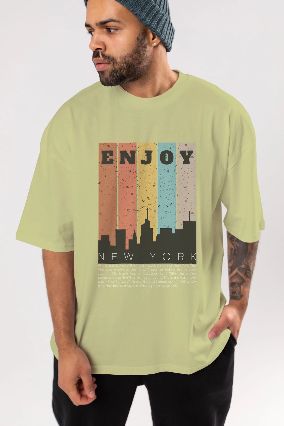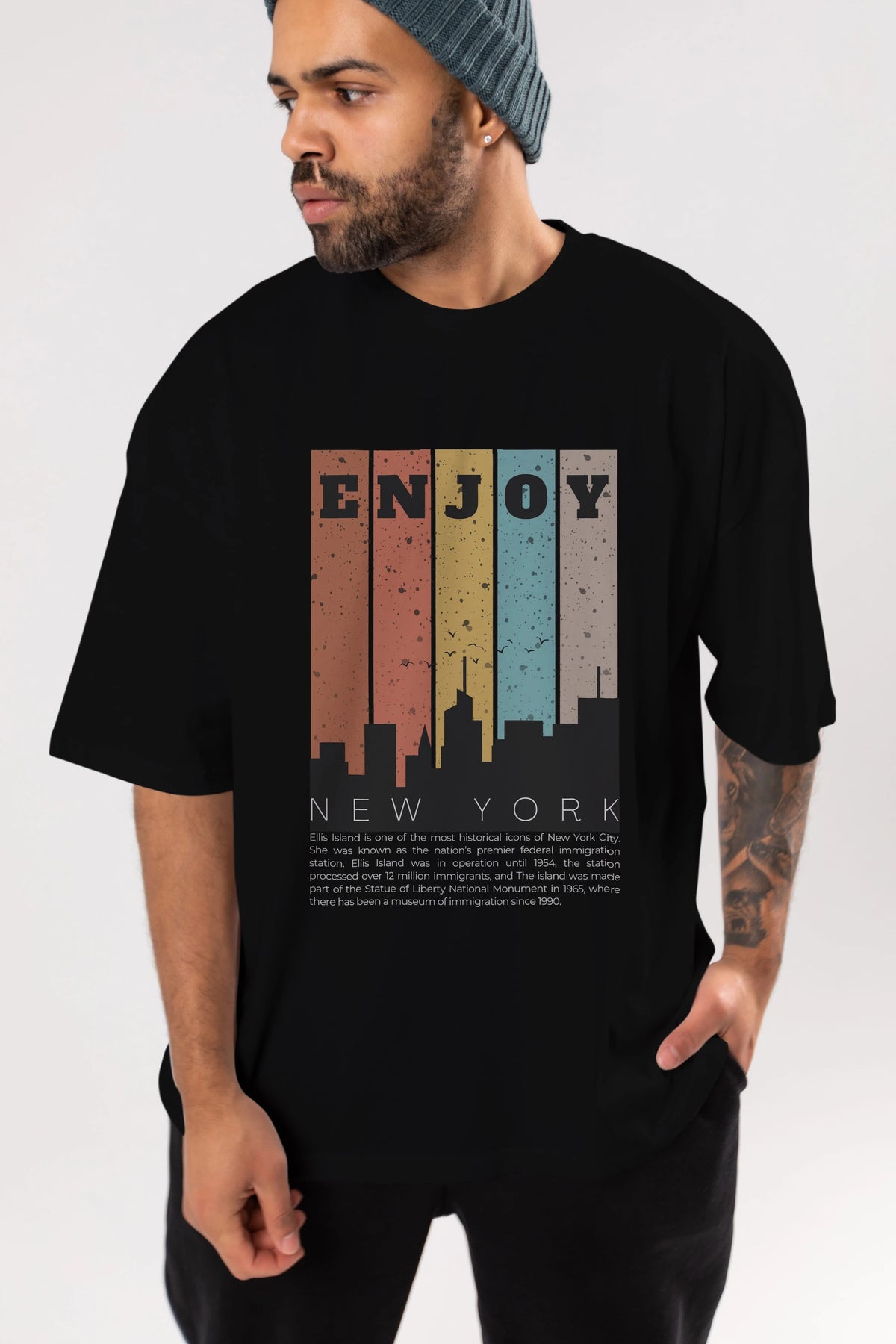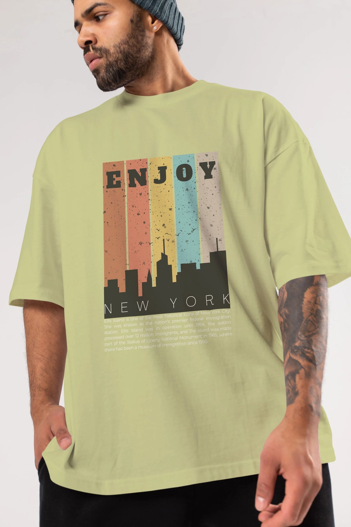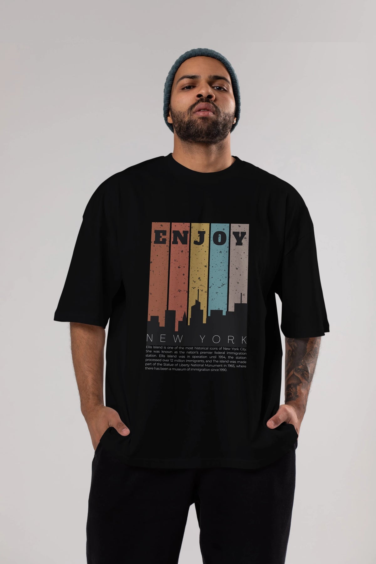 Enjoy New York Yazılı Ön Baskılı Oversize t-shirt Erkek Kadın Unisex