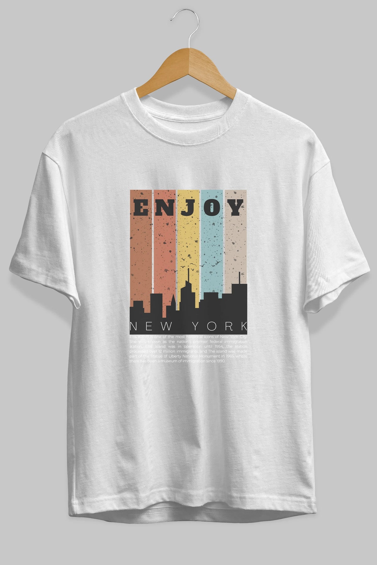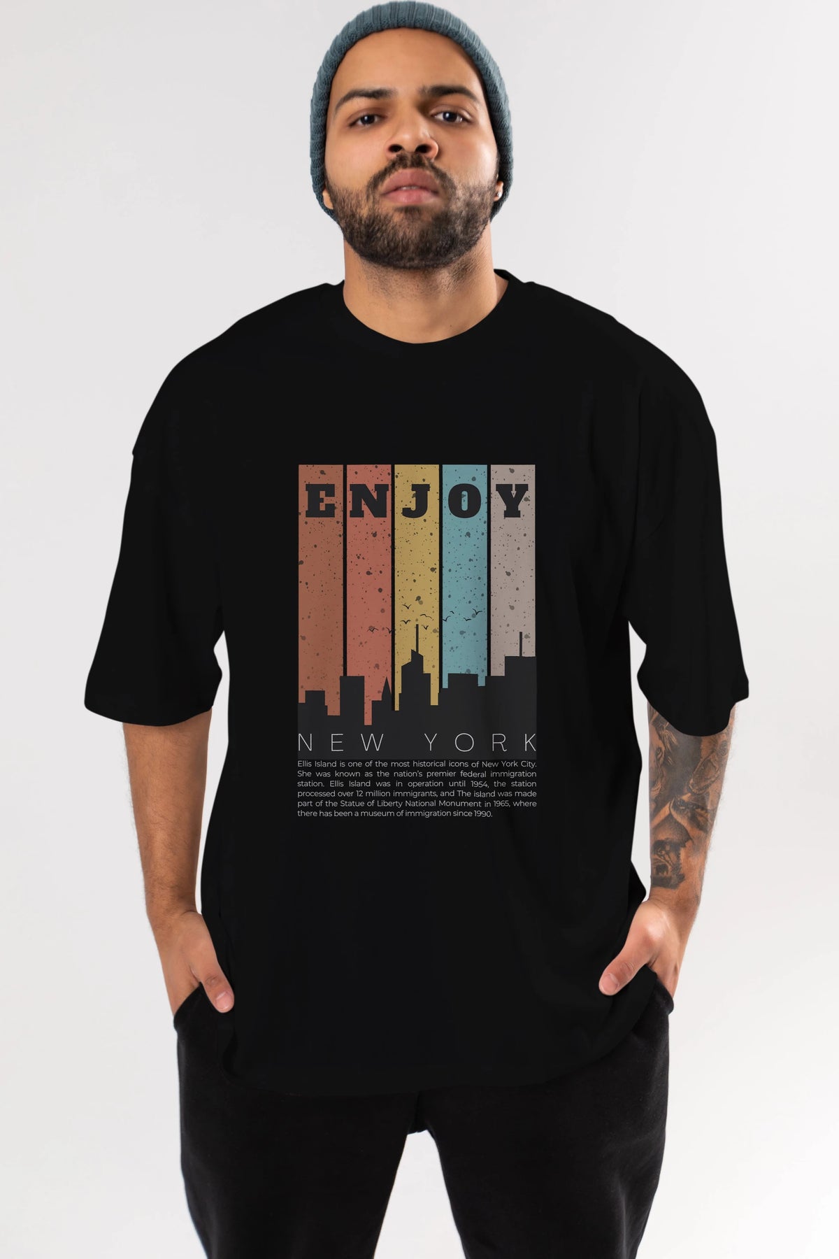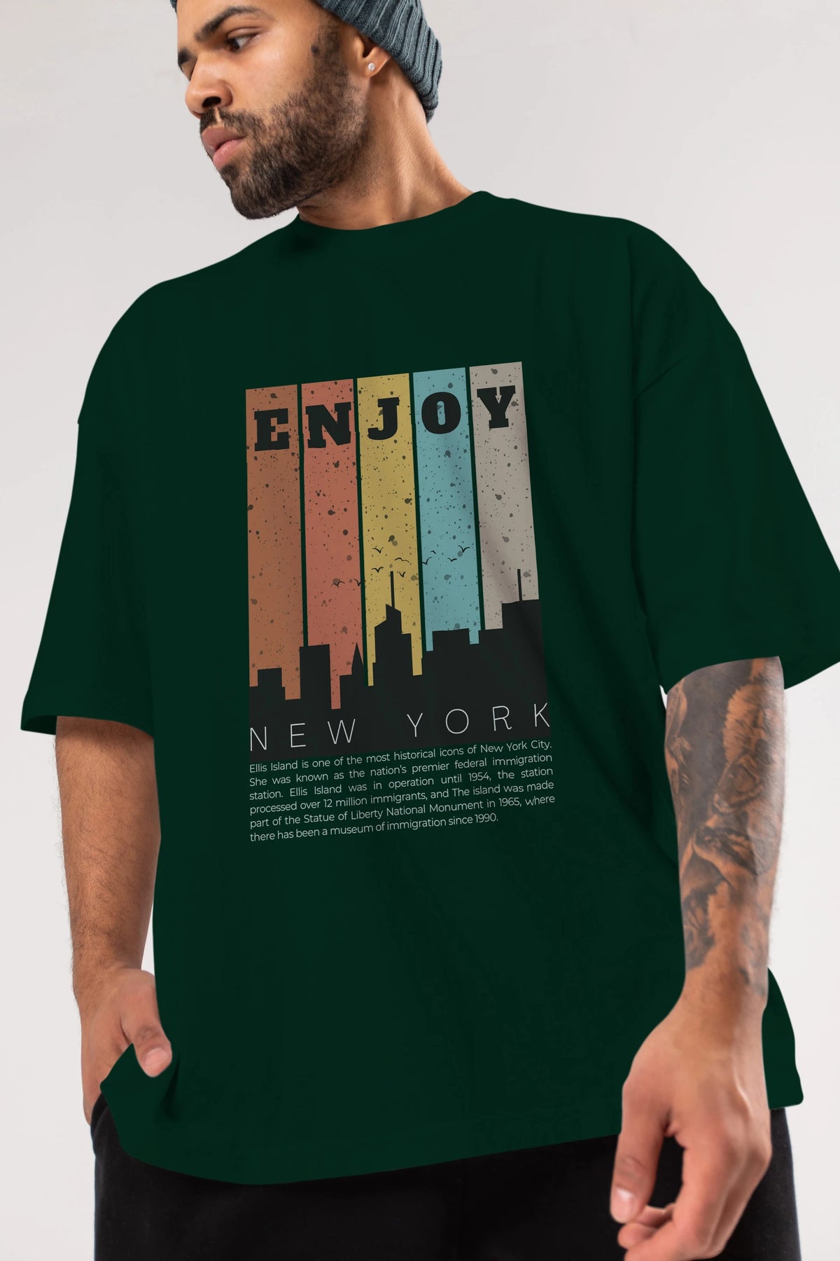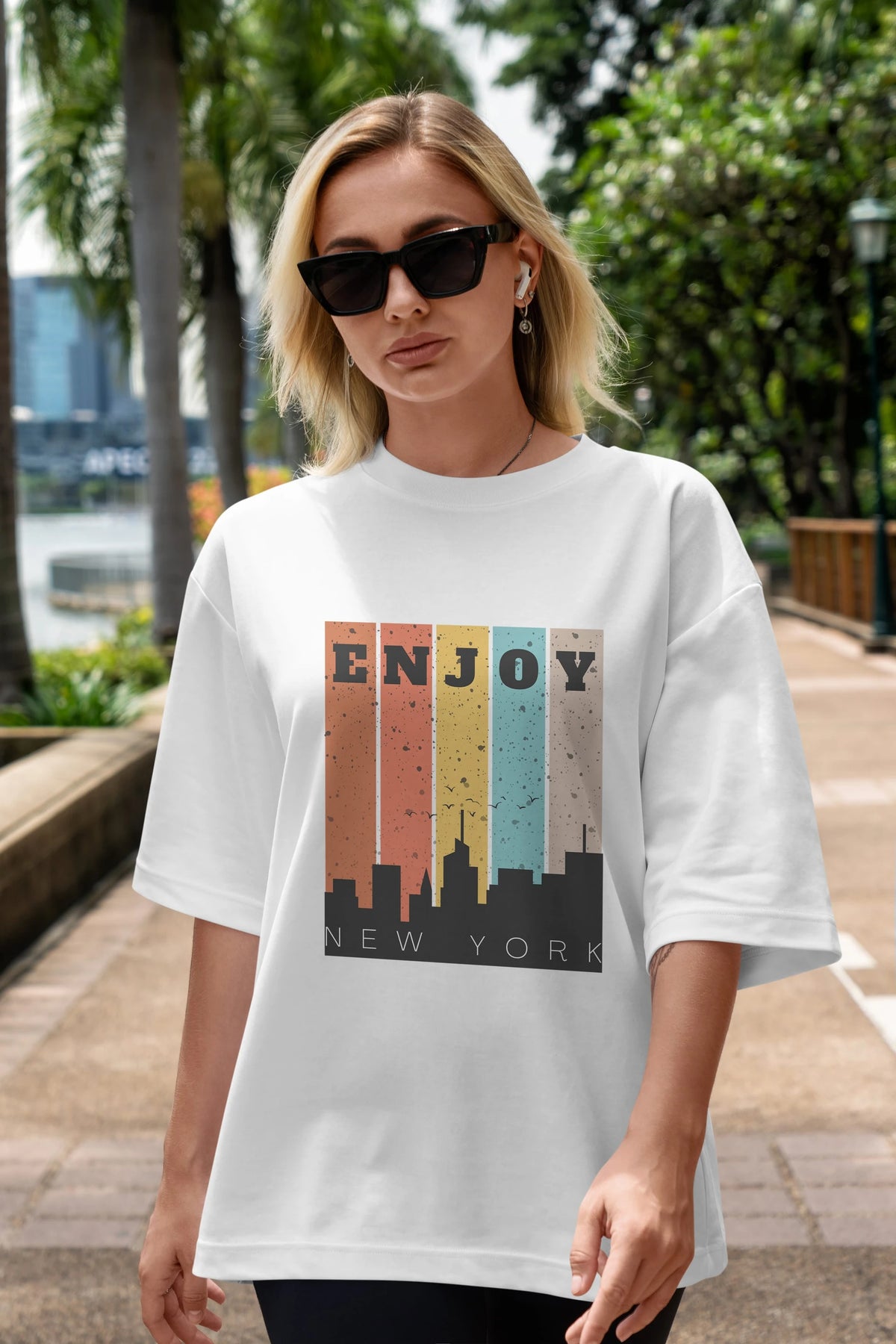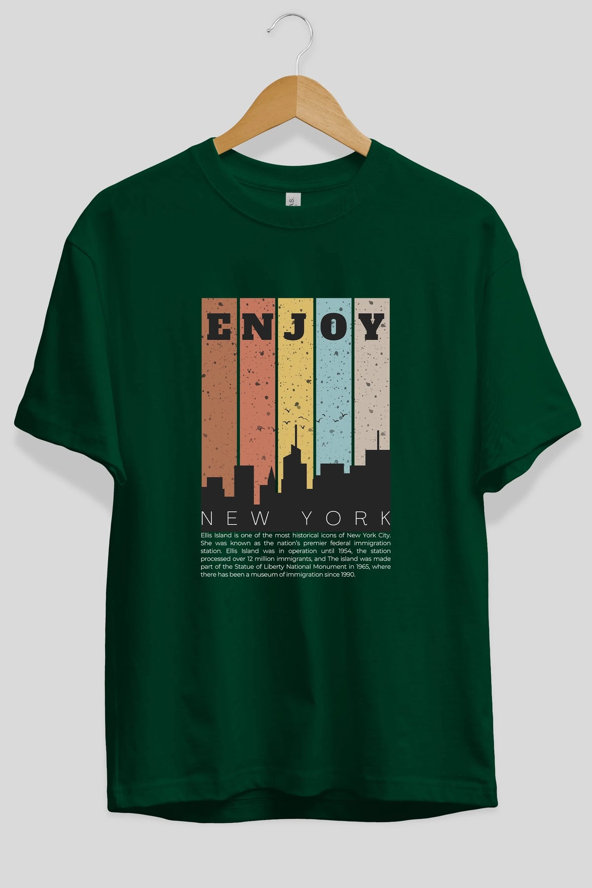 Enjoy New York Yazılı Ön Baskılı Oversize t-shirt Erkek Kadın Unisex