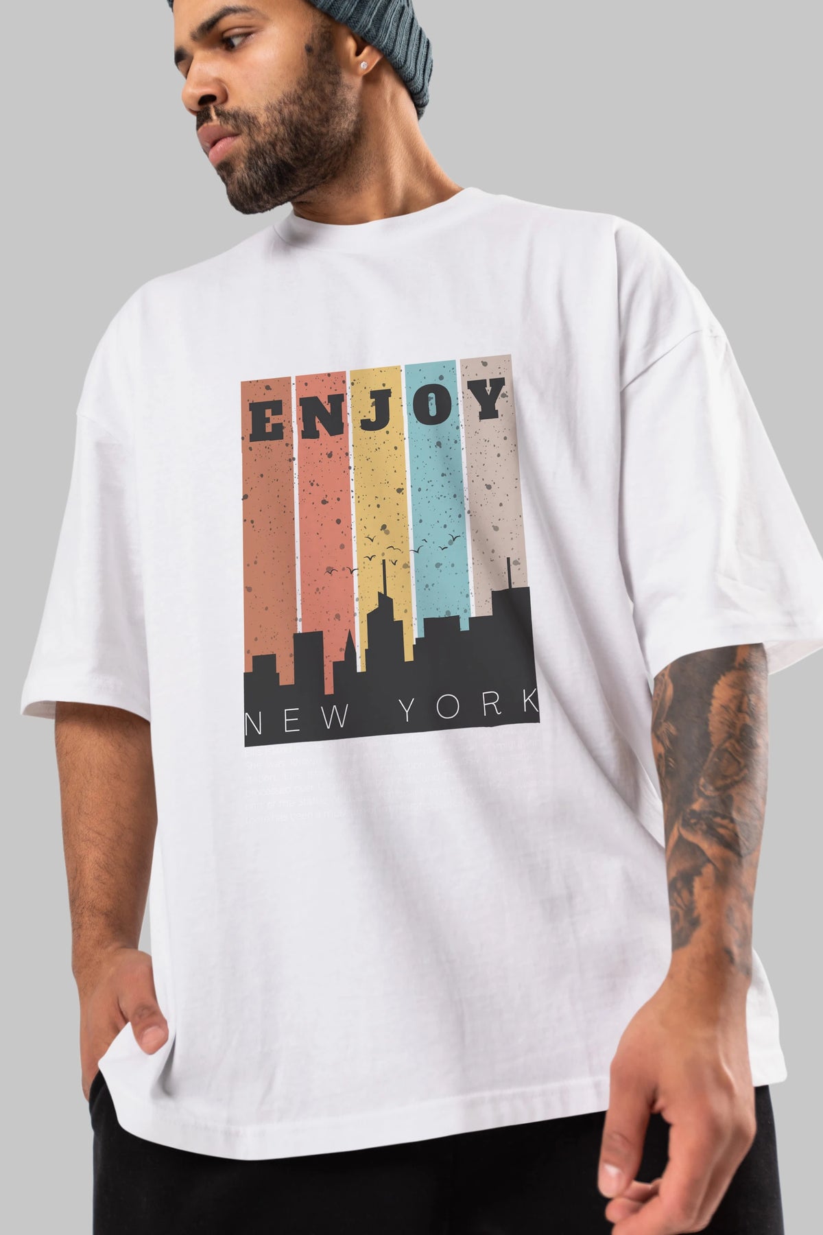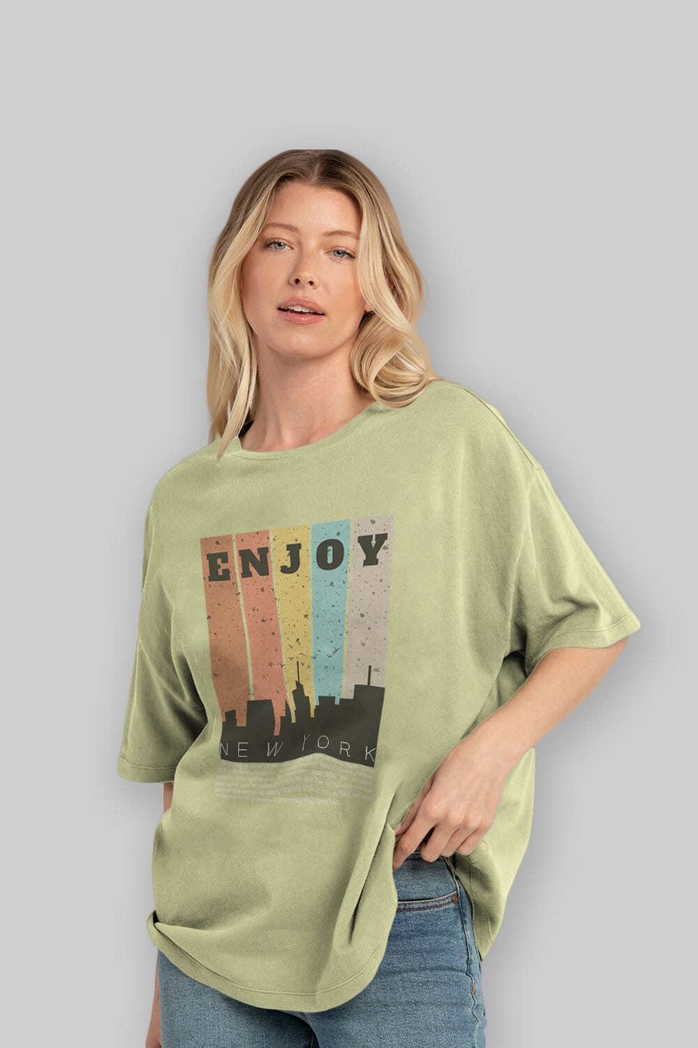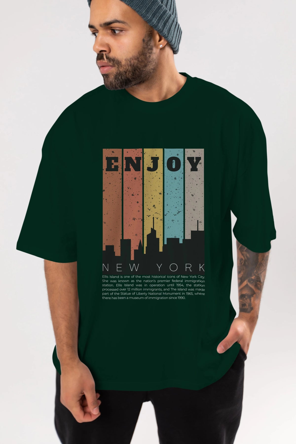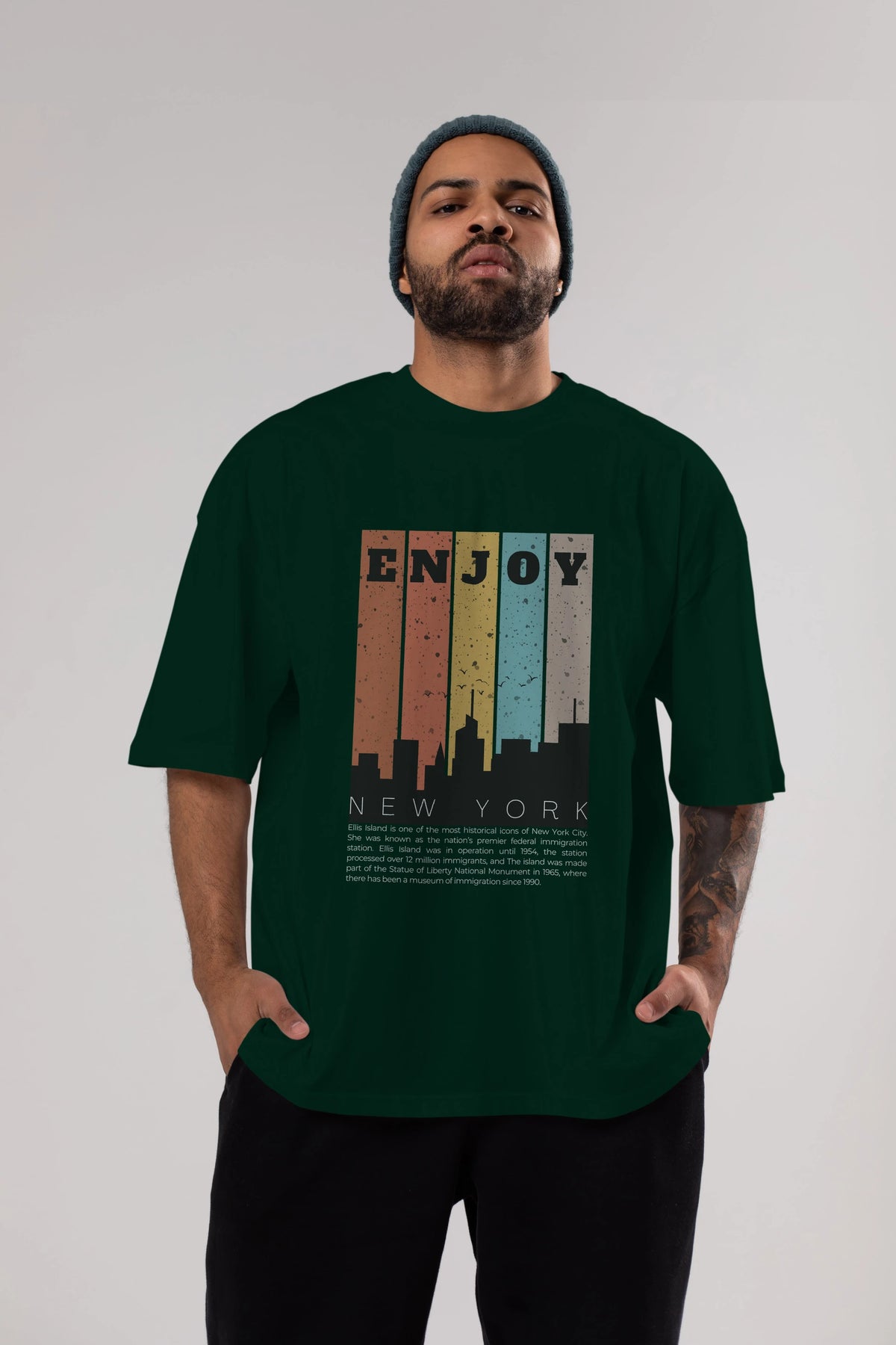 Enjoy New York Yazılı Ön Baskılı Oversize t-shirt Erkek Kadın Unisex