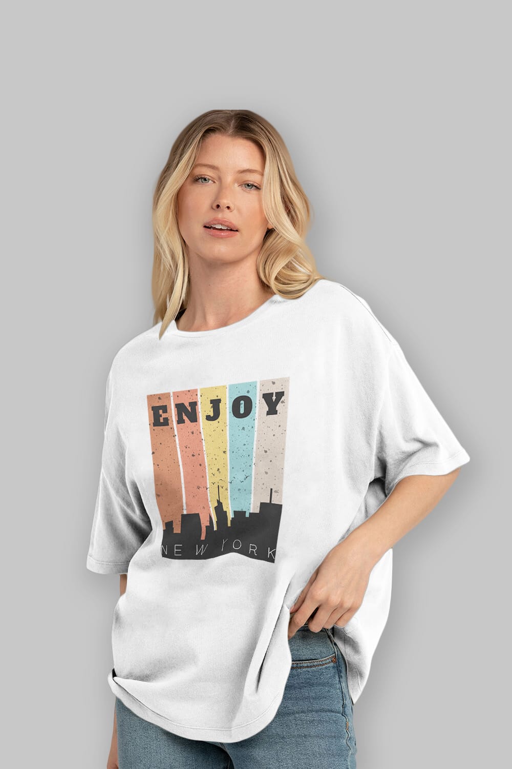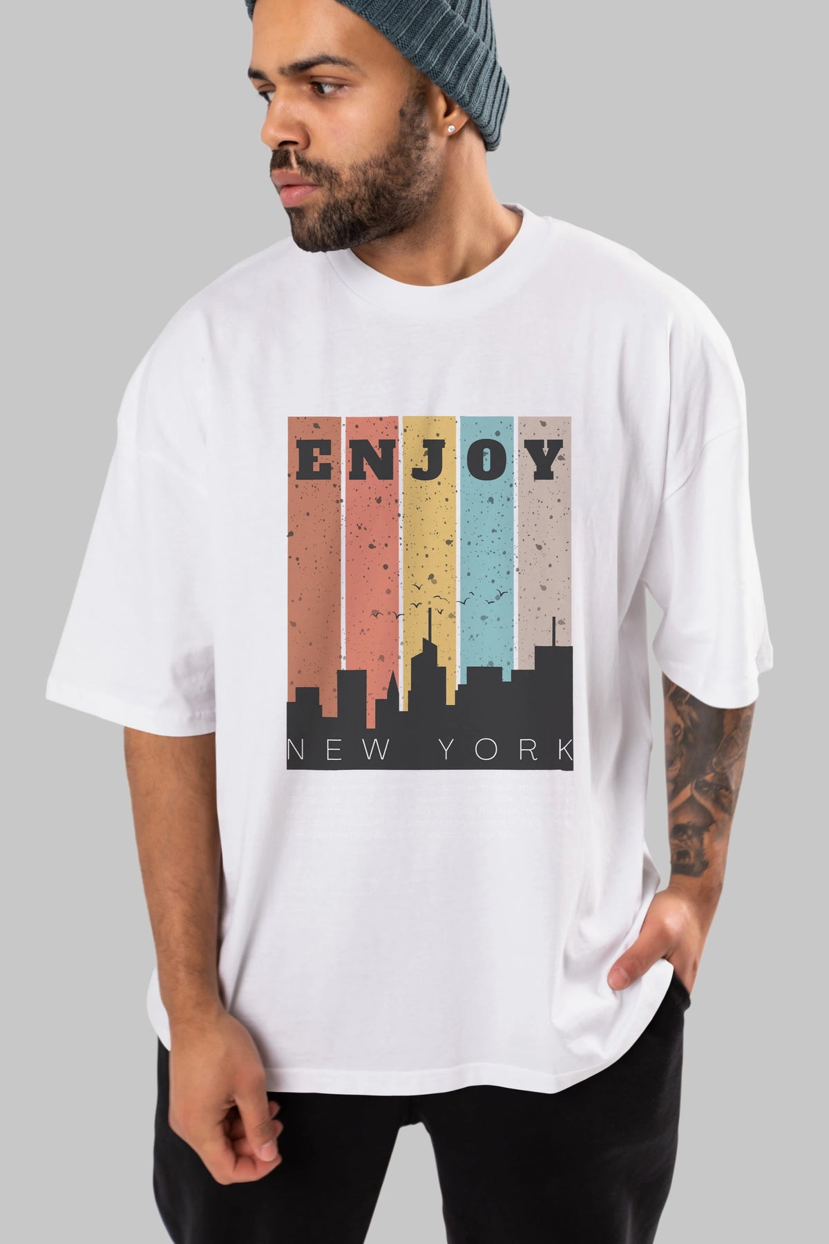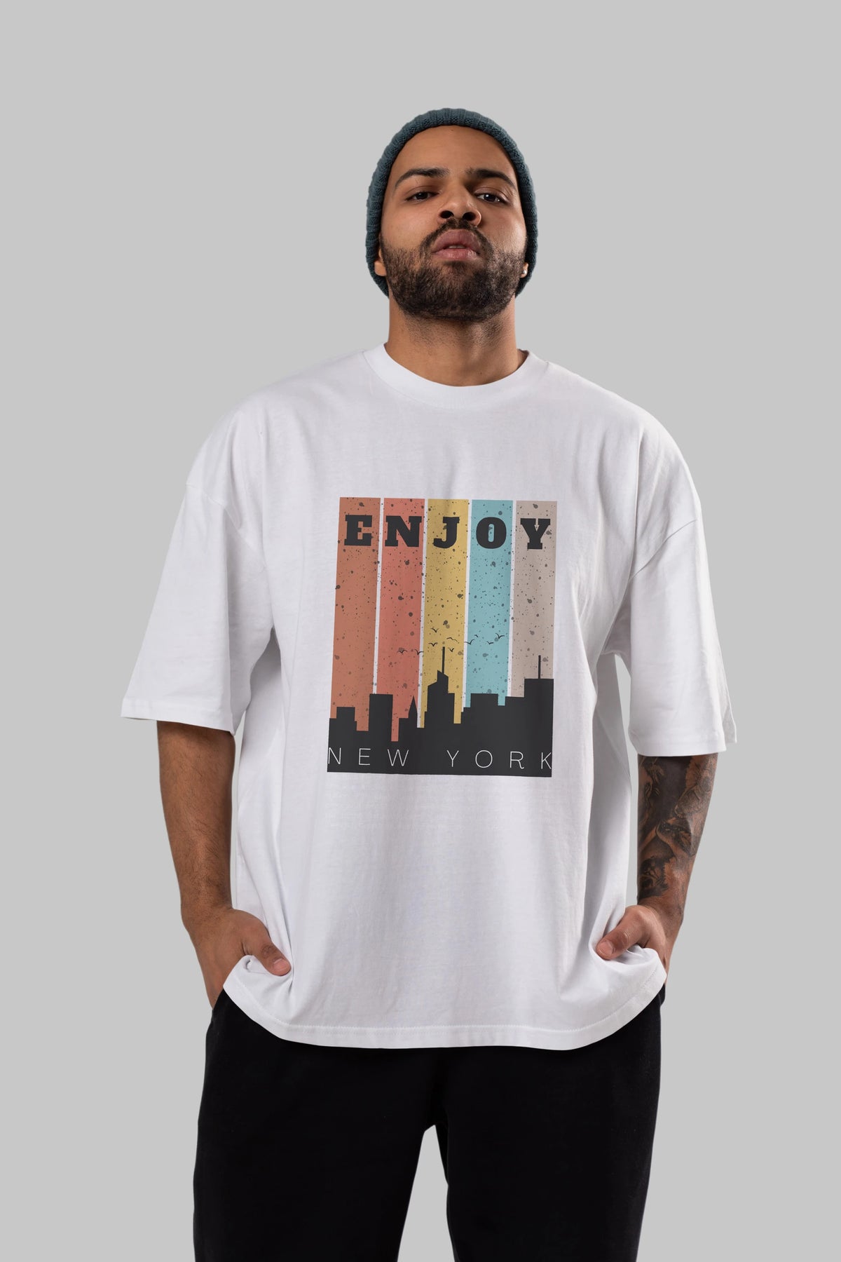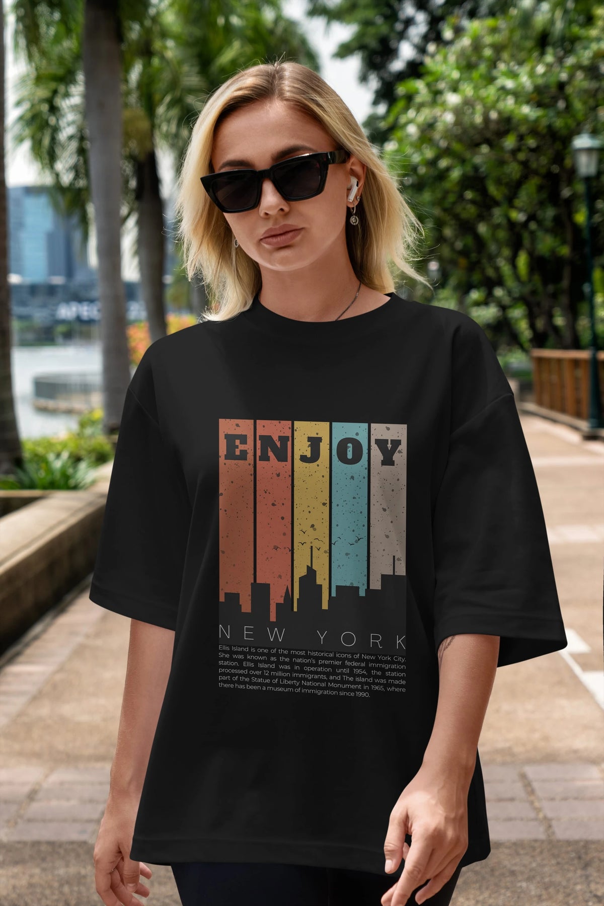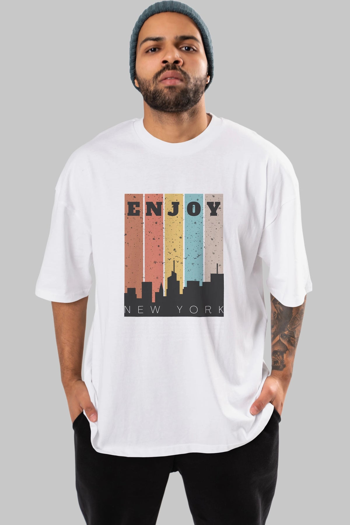 Enjoy New York Yazılı Ön Baskılı Oversize t-shirt Erkek Kadın Unisex