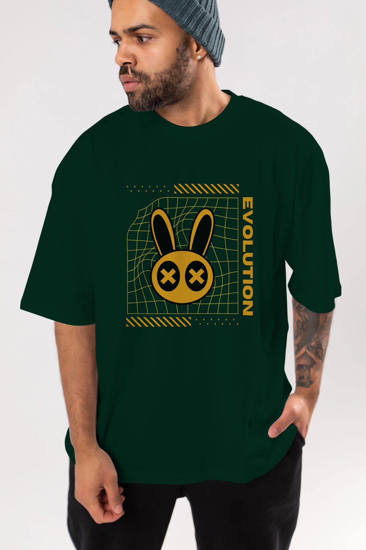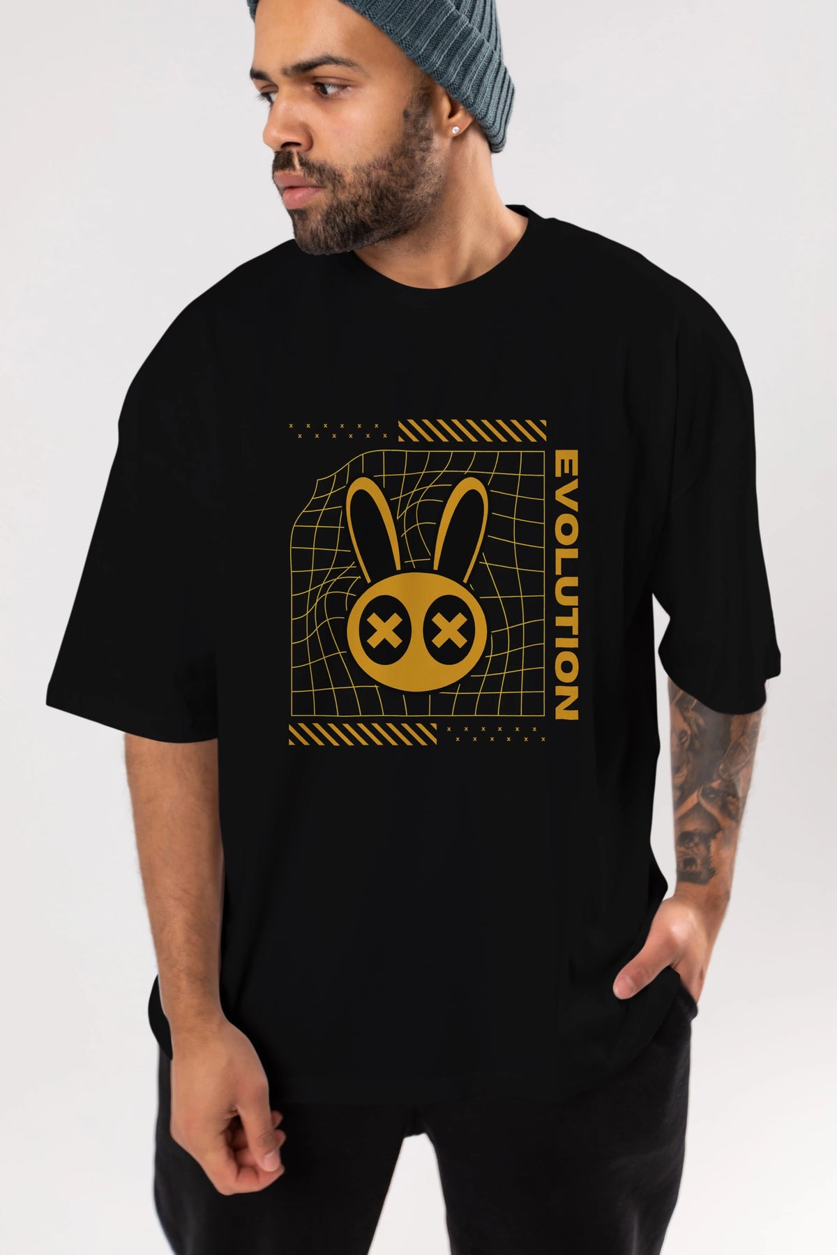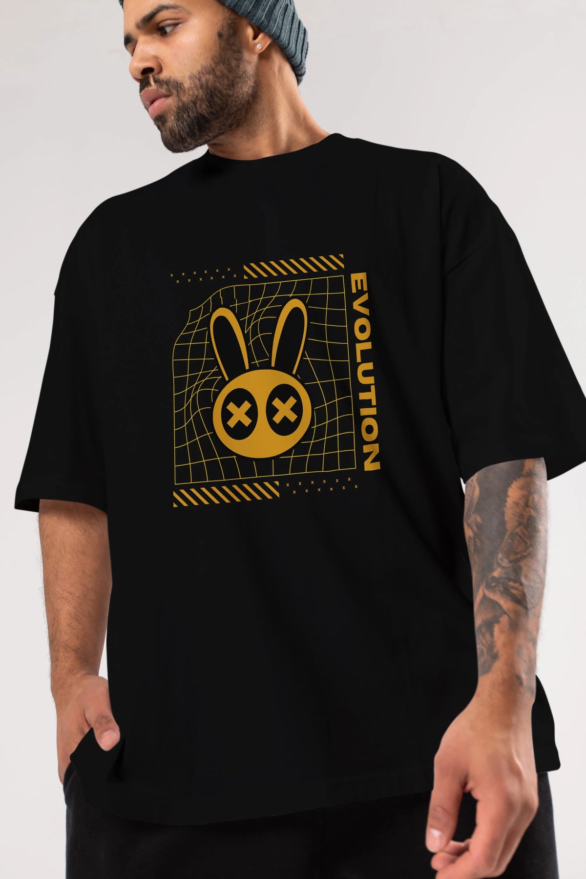 Evolution Yazılı Ön Baskılı Oversize t-shirt Erkek Kadın Unisex